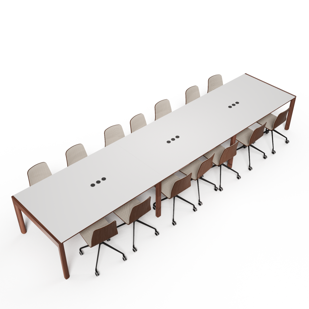 Designed for modern B2B environments, our tables can be adapted to any configuration. From round models promoting collaboration to imposing rectangular boardroom tables, each piece is designed to meet the demands of office life. The modularity of our collections and integrated cable management solutions transform every space into a connected, organized workplace conducive to productivity.