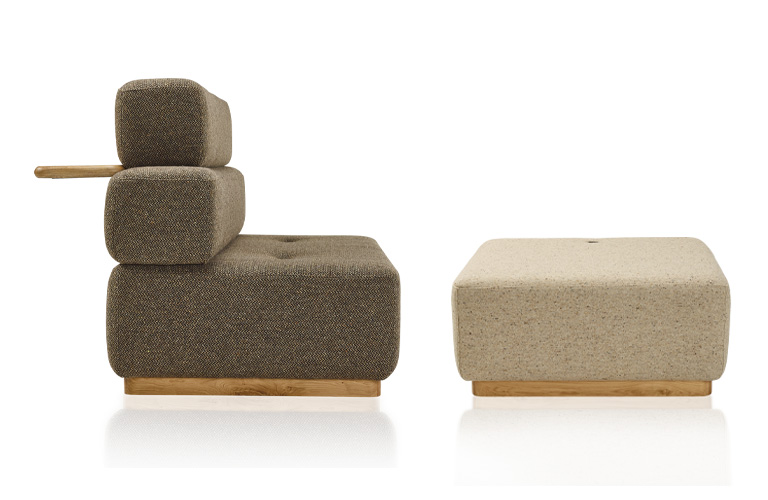 While the basic structure of Workspace of Workspace is a sofa, its variations (length, backrest height, armrests) and associated accessories (footstool, armchair, bench) create a fully configurable environment fully configurable and perfectly adaptable to any space.