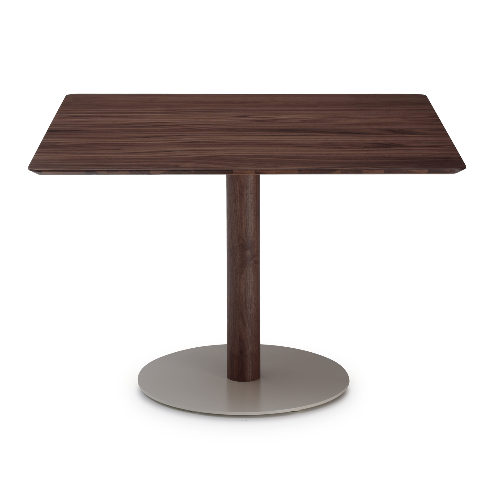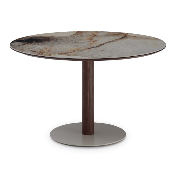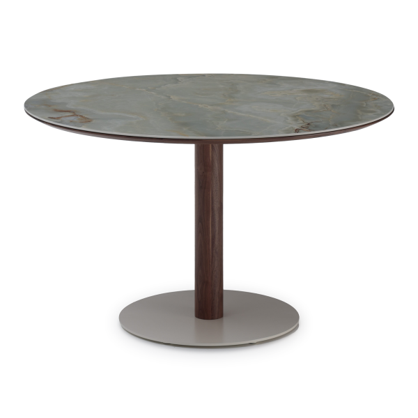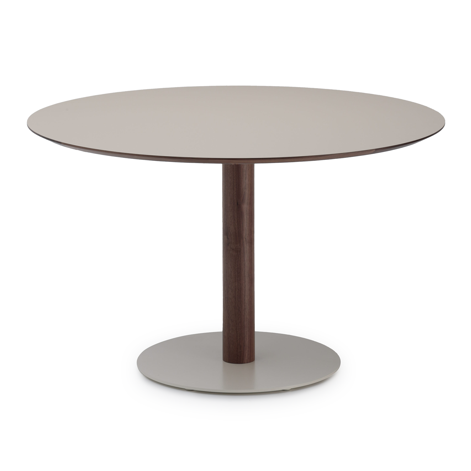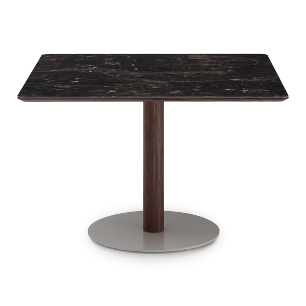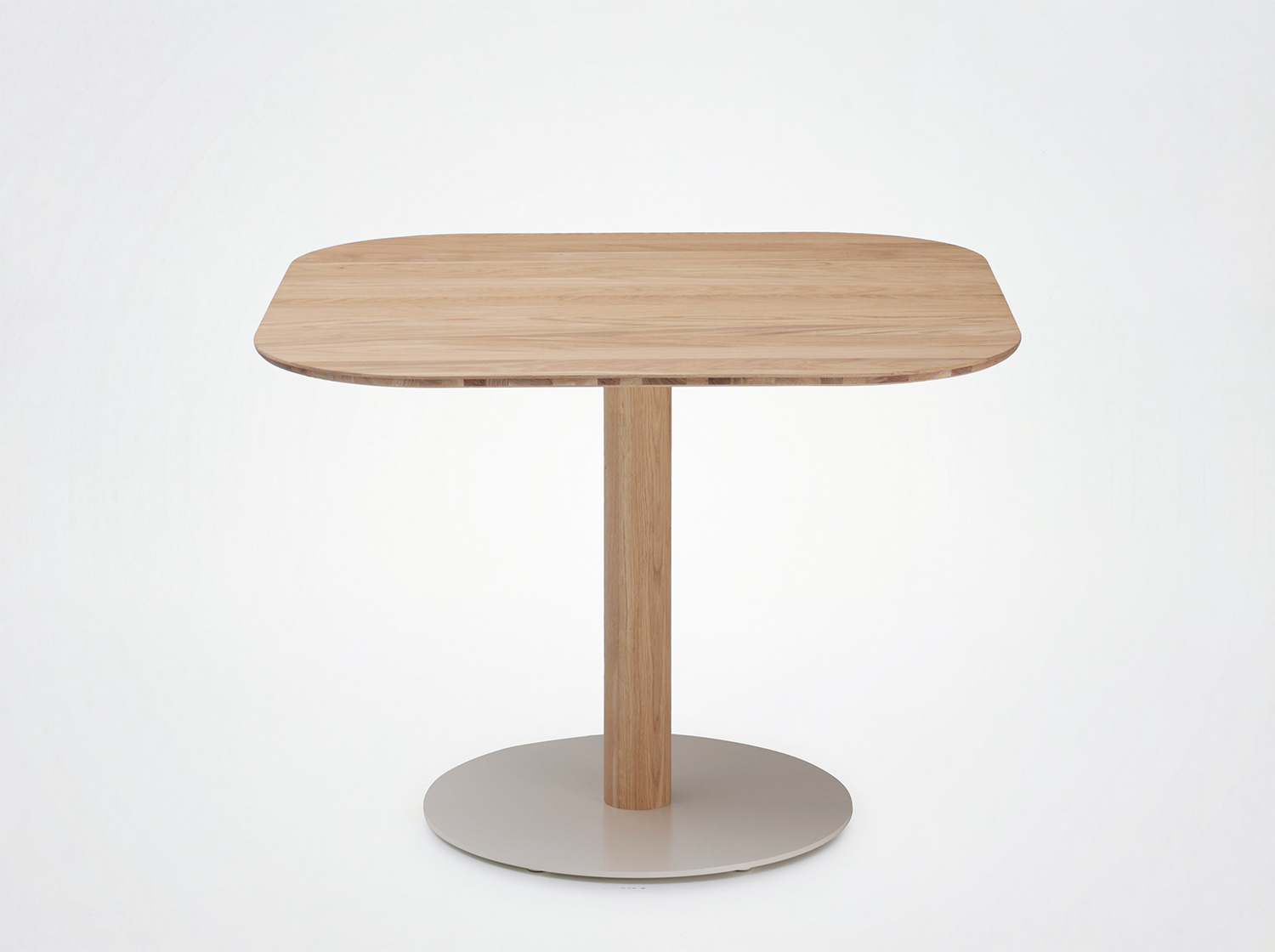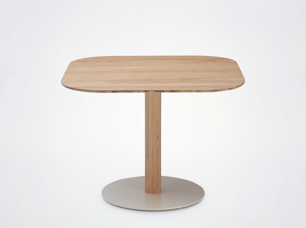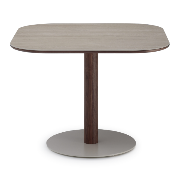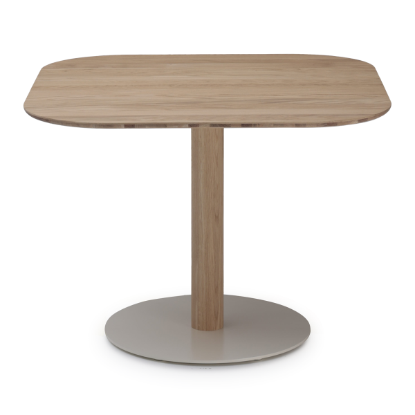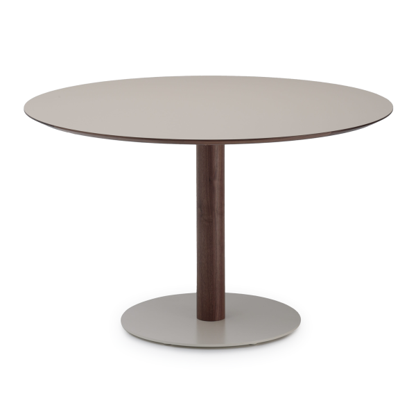 Base structure in thermolacquered steel in the RAL of your choice. Round column in solid wood.