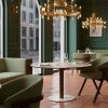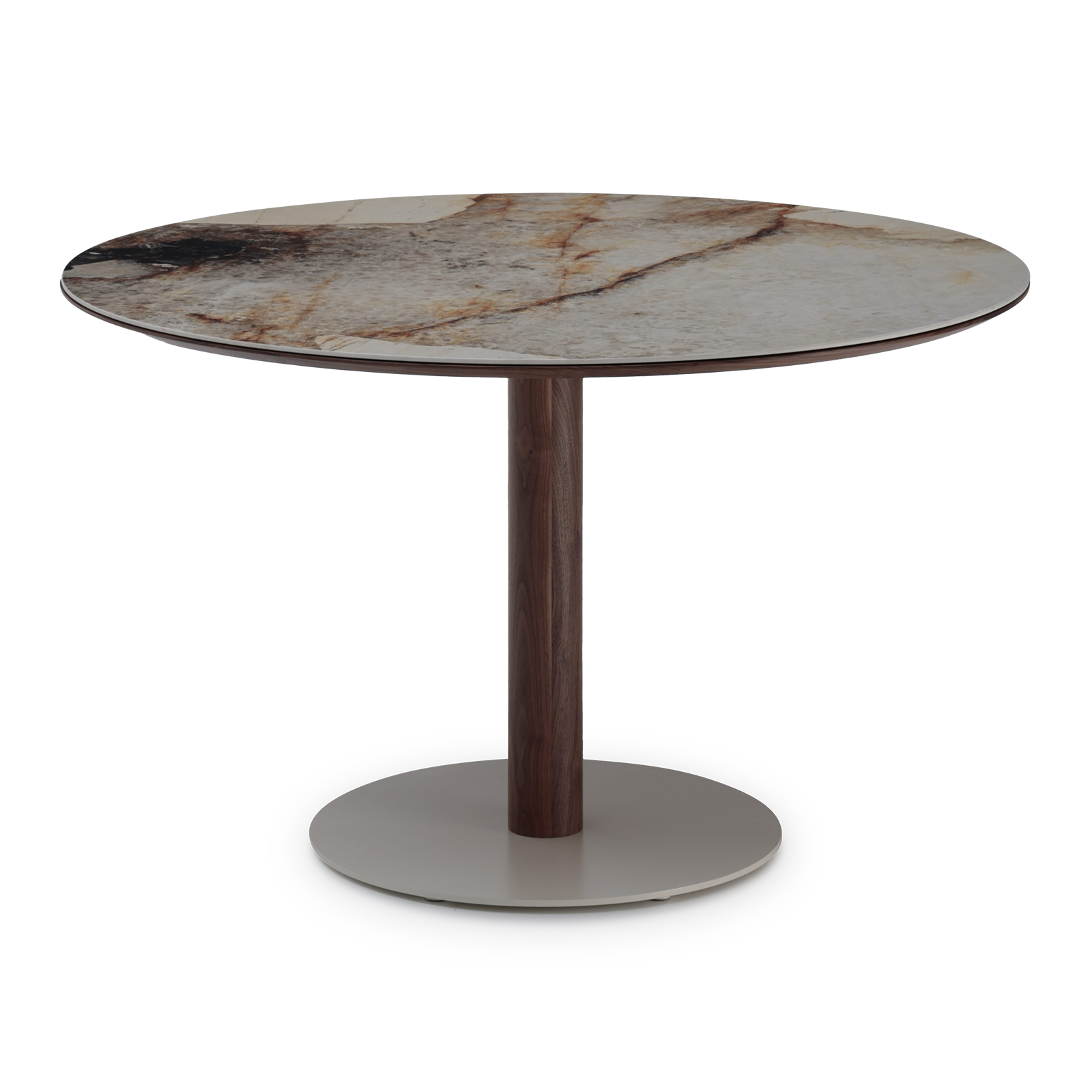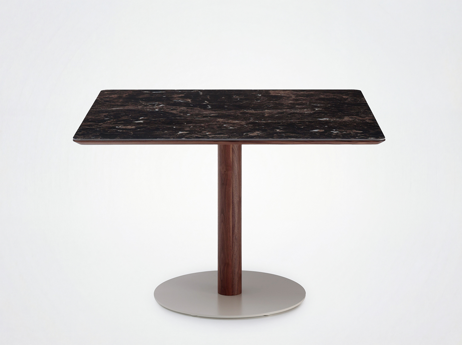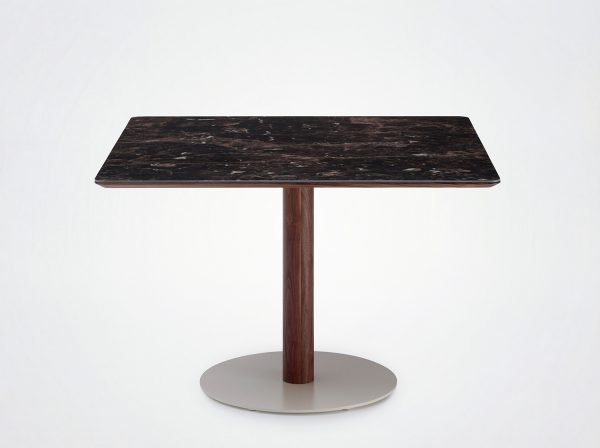 The Fût table is a design piece inspired by bistro tables. Its simple design and slender base create a harmonious whole, balancing traditional craftsmanship with modern design. This table offers the possibility of customizing its top by choosing from a variety of shapes, materials, moldings and shades to meet different needs and fit perfectly into its future space.
