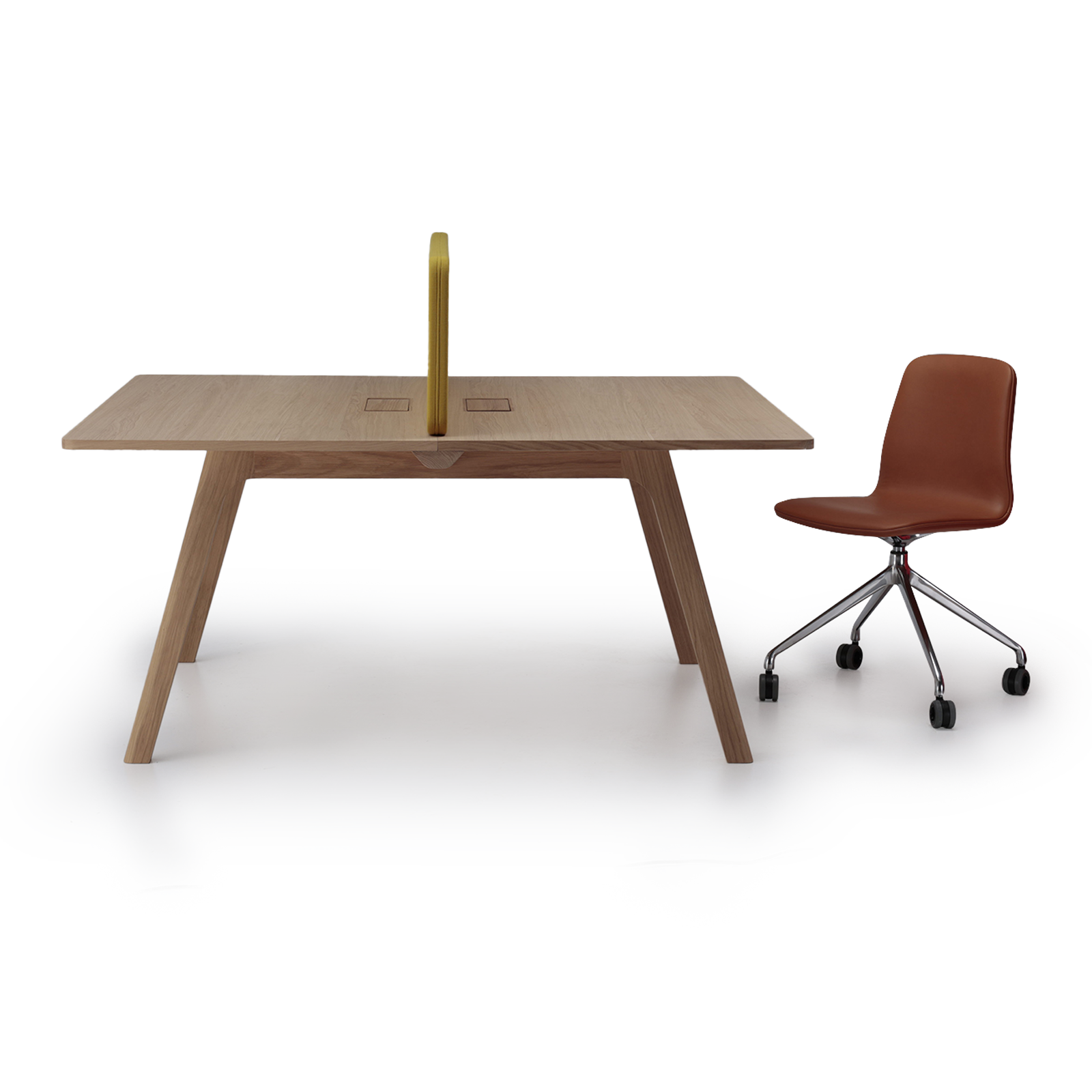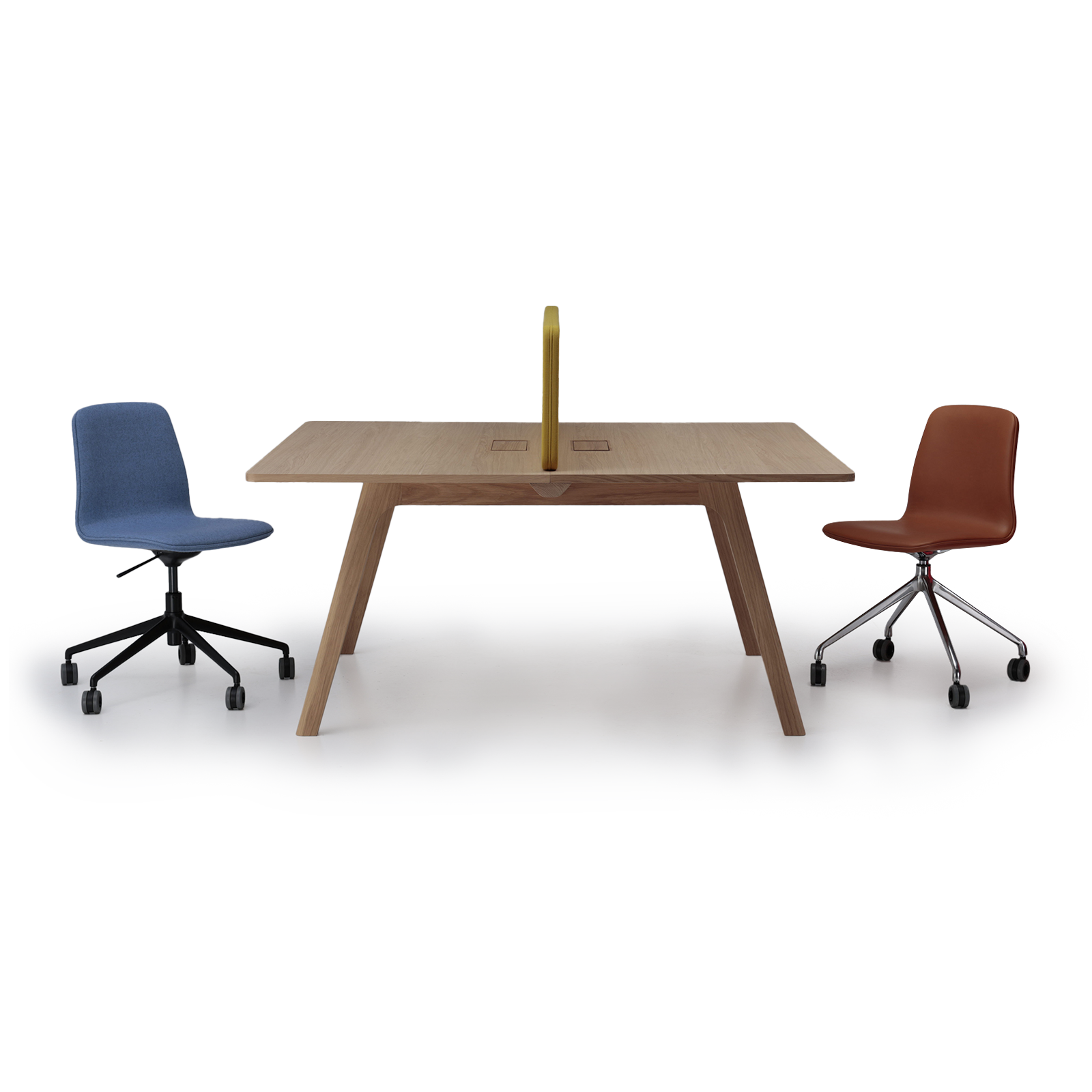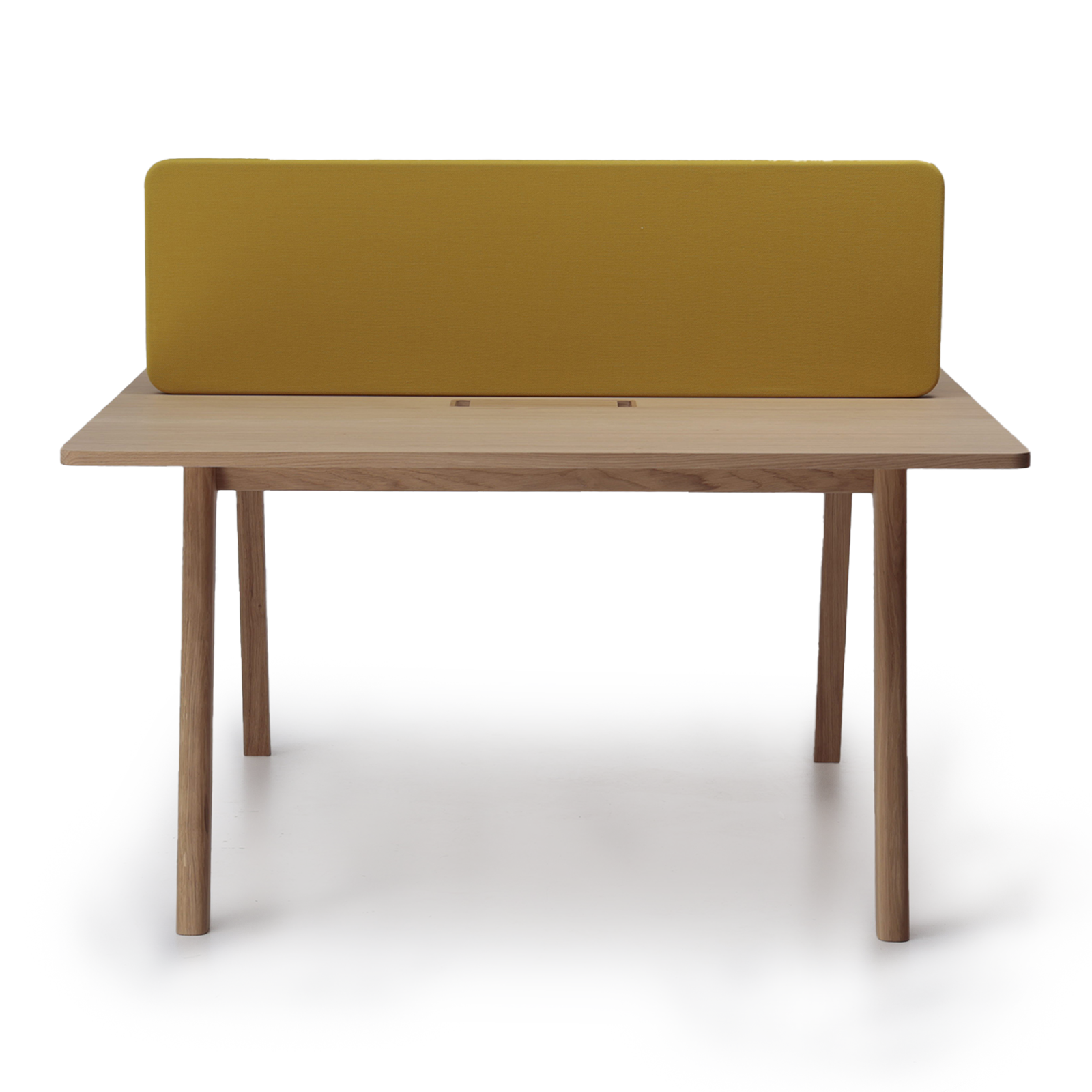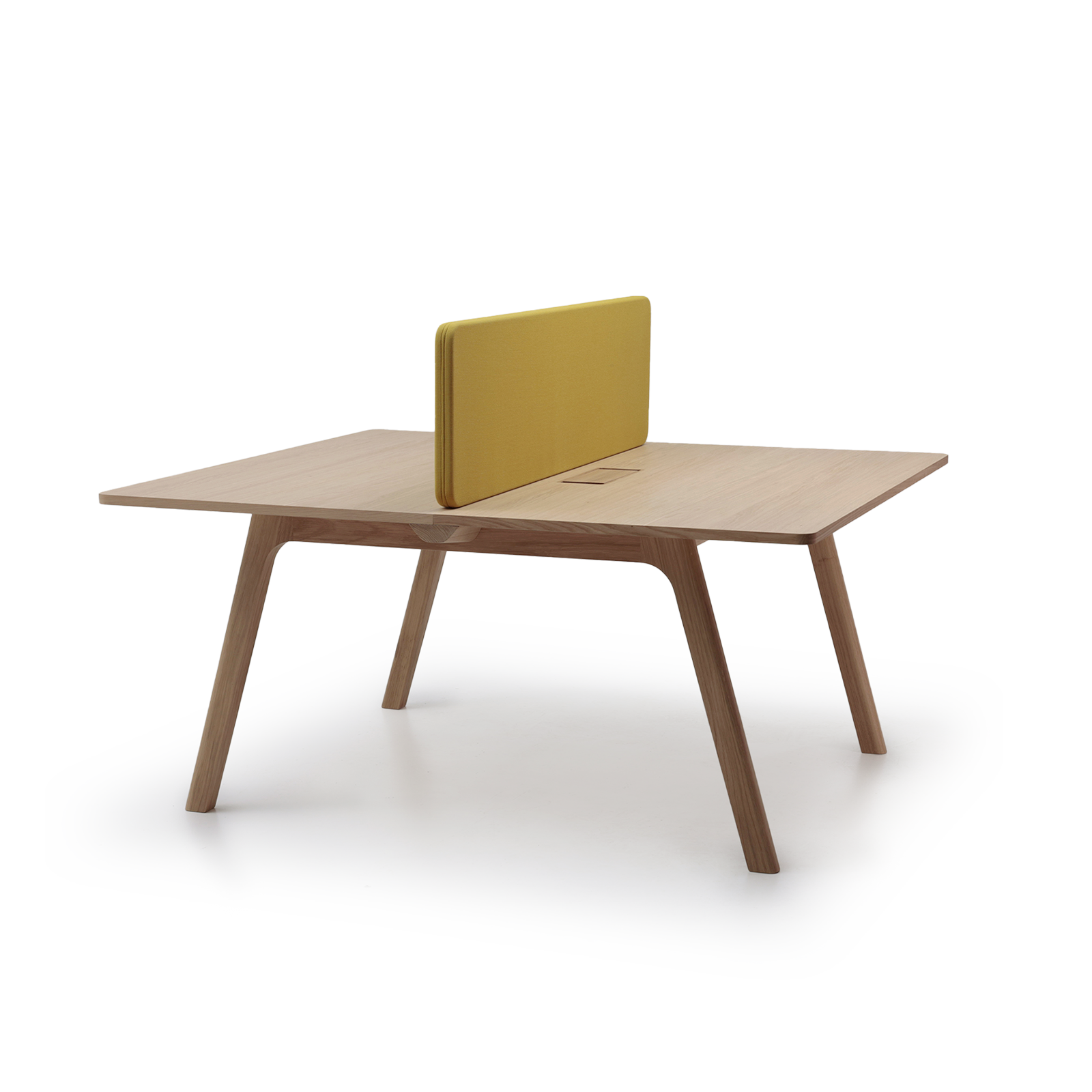 Solid wood top (20 mm in 3-ply solid wood), laminate (0.8 mm) or Fenix (1.2 mm): glued sheet on 22 mm mdf with solid wood underlay, white counterbalance.