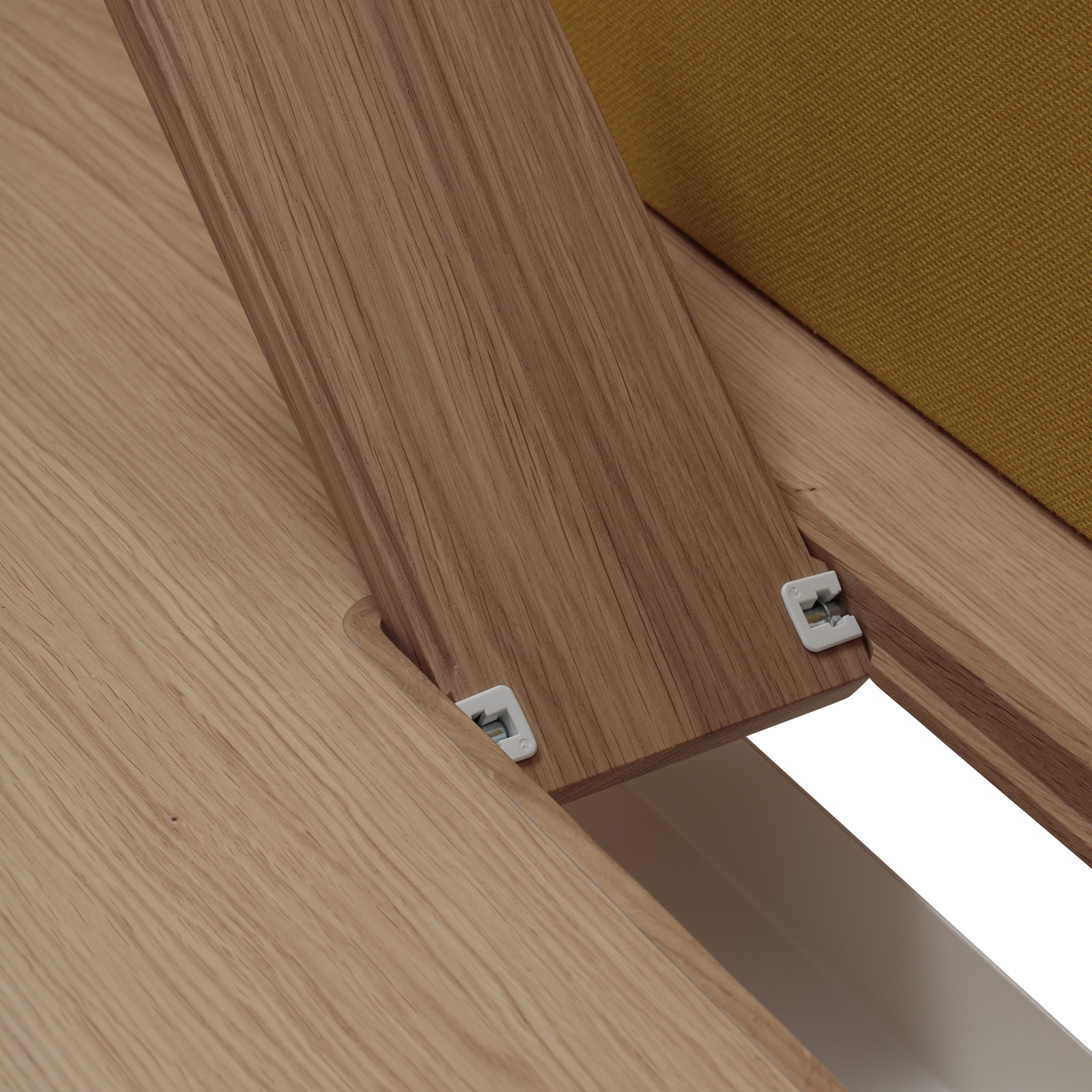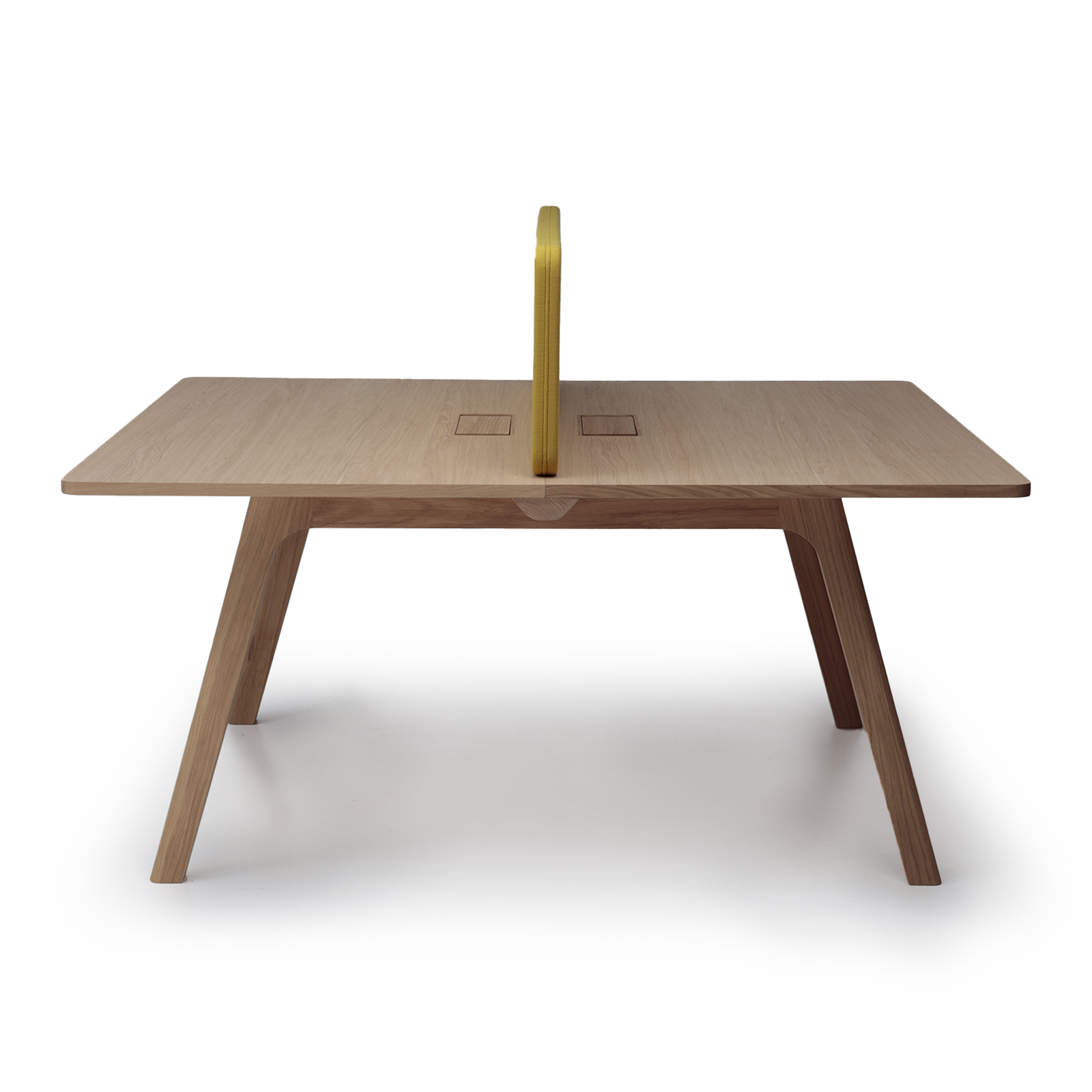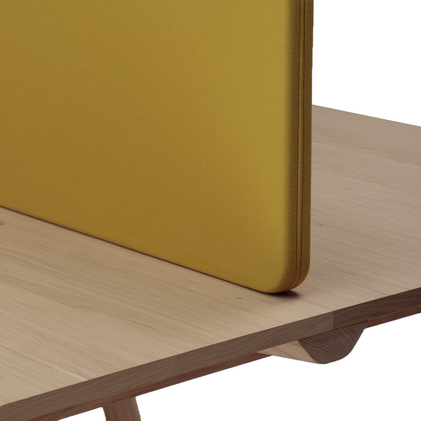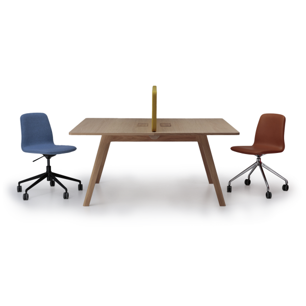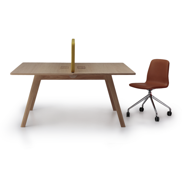 Solid wood top (20 mm in 3-ply solid wood), laminate (0.8 mm) or Fenix (1.2 mm): glued sheet on 22 mm mdf with solid wood underlay, white counterbalance.
