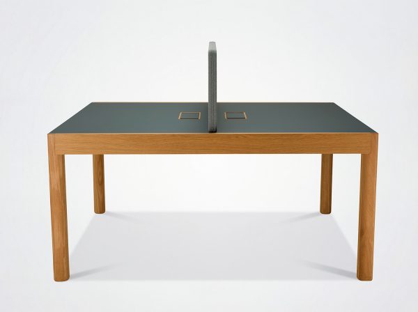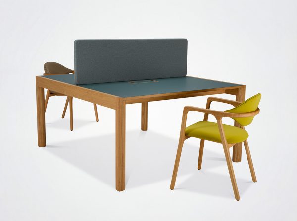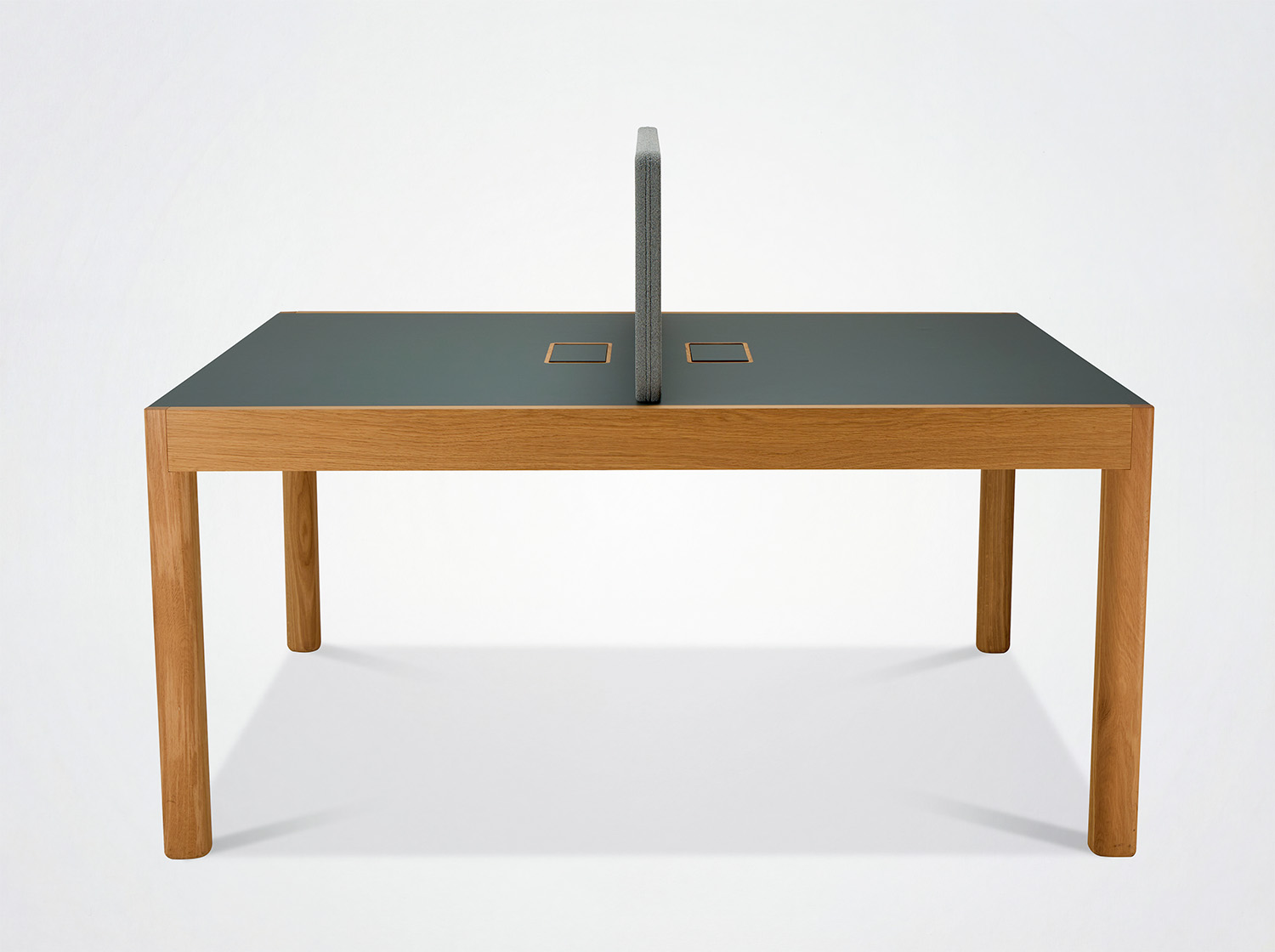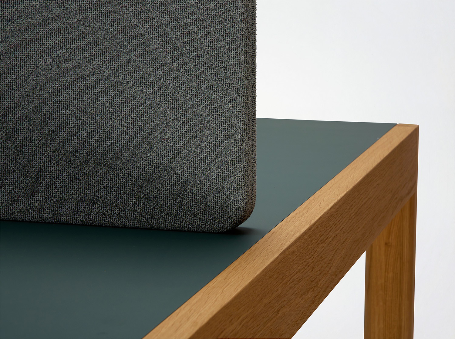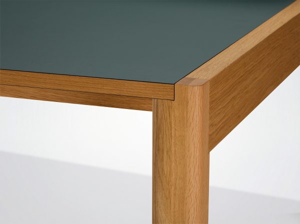Wooden top (20 mm 3-ply solid wood), laminate (0.8 mm) or Fenix (1.2 mm): Foil glued to 22 mm mdf with solid wood underlays, white counterbalance.