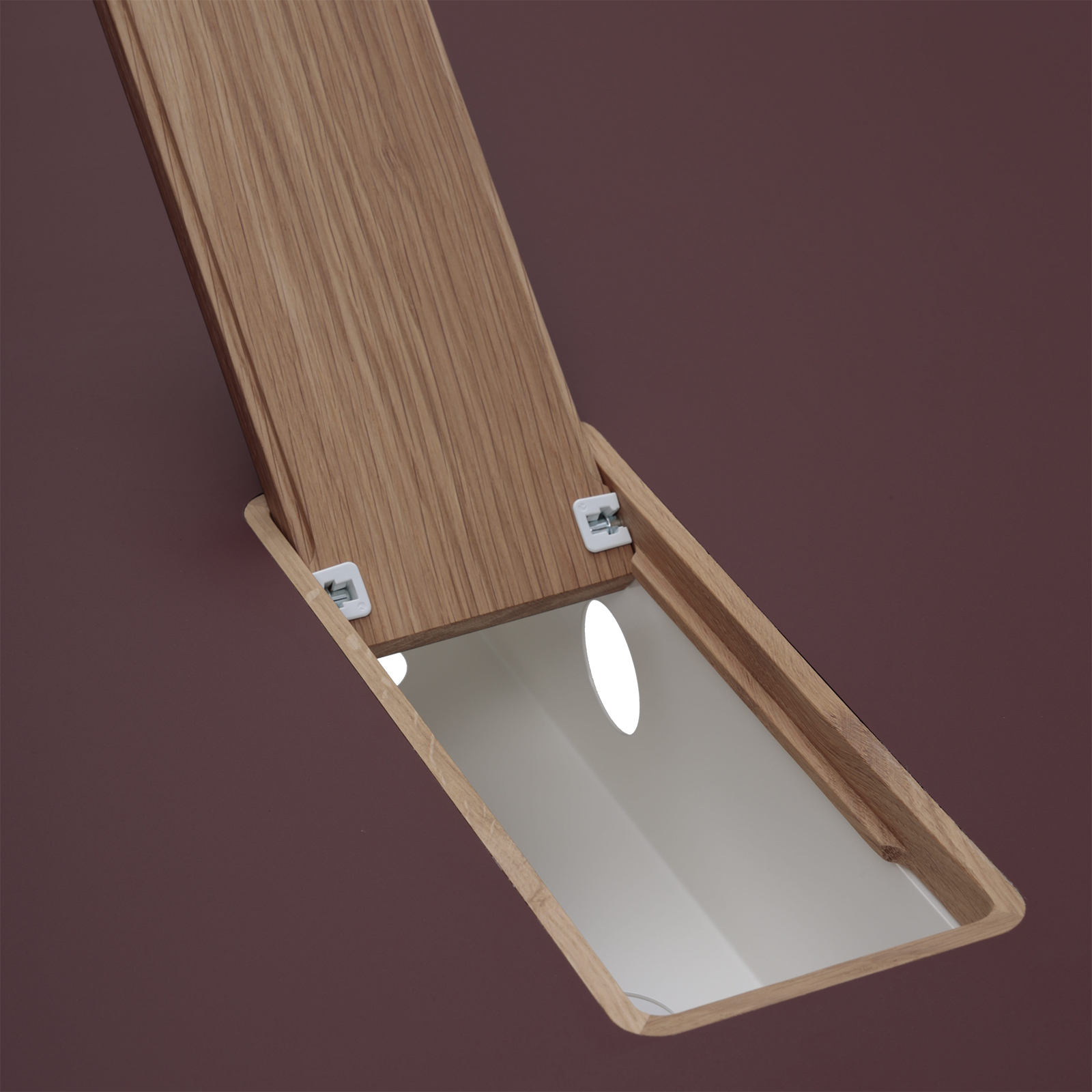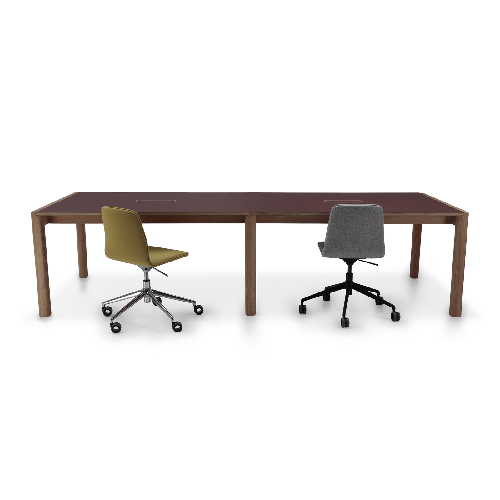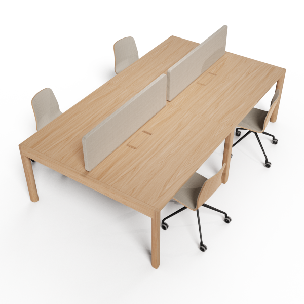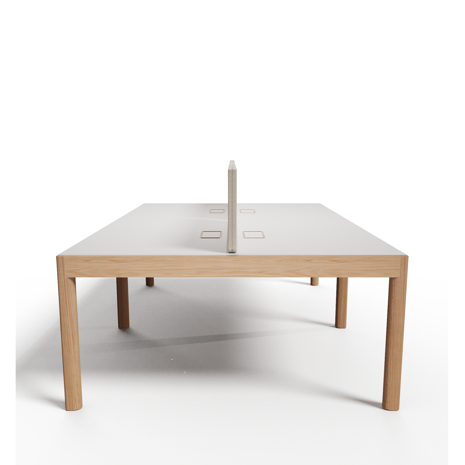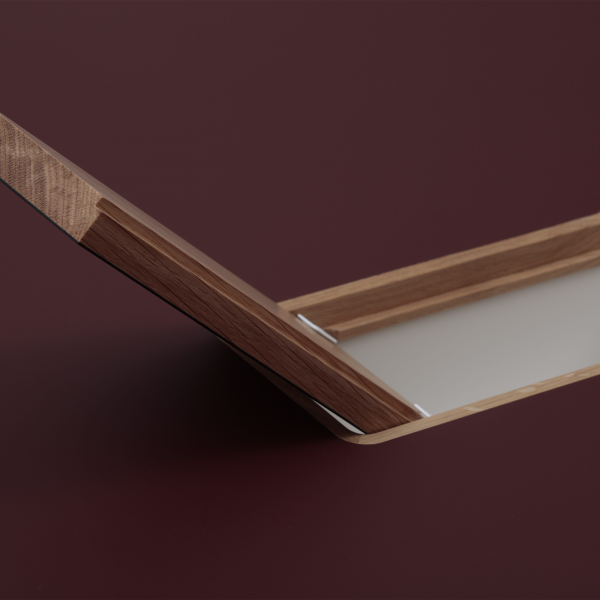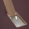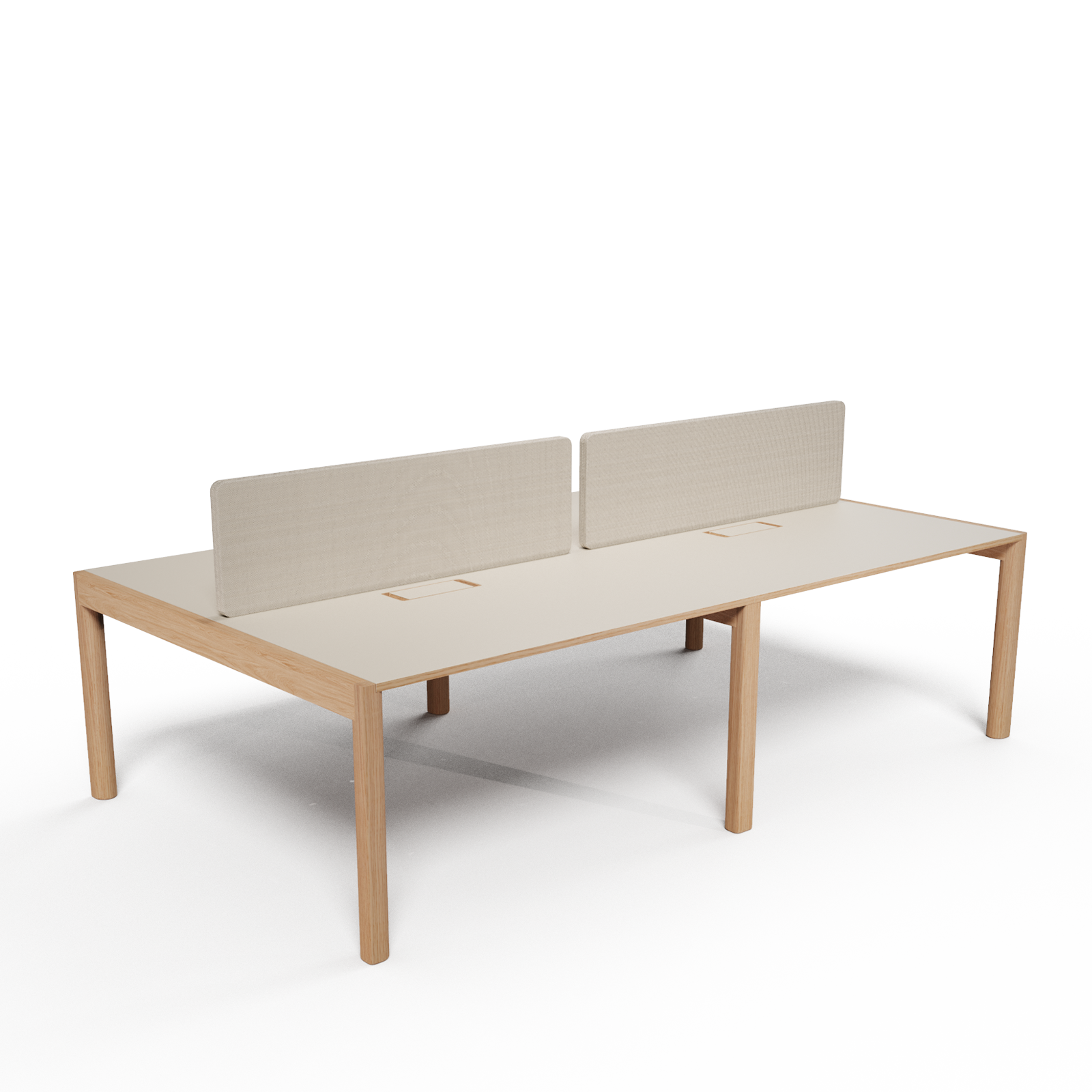 Wooden top (20 mm in 3-ply solid wood), laminate (0.8 mm) or Fenix (1.2 mm): Glued foil on 22 mm mdf with solid wood underlays, white counterbalance.