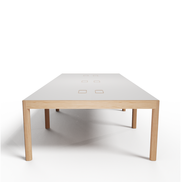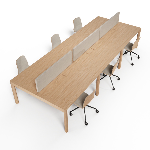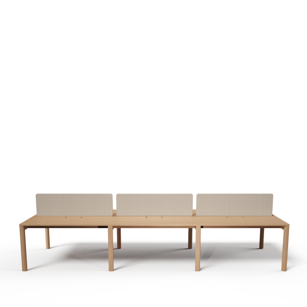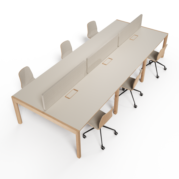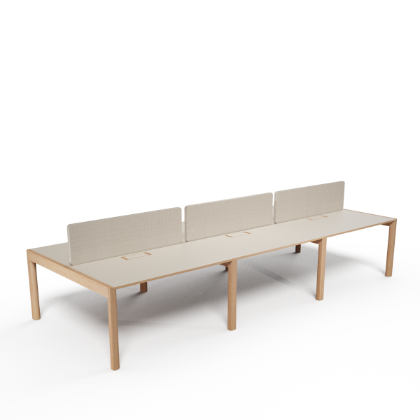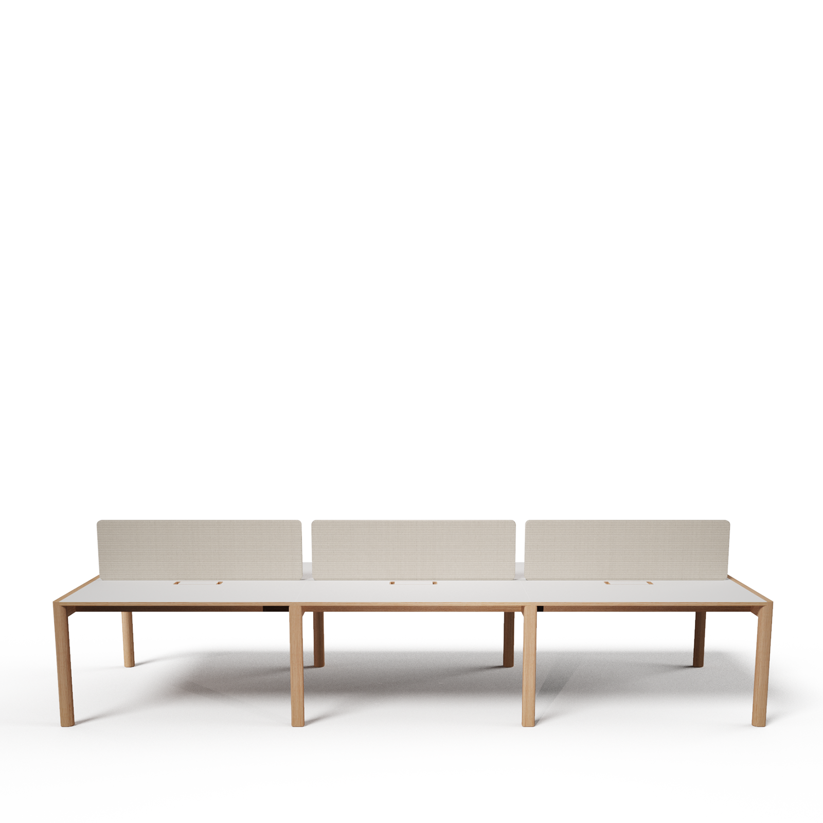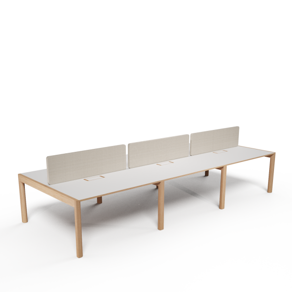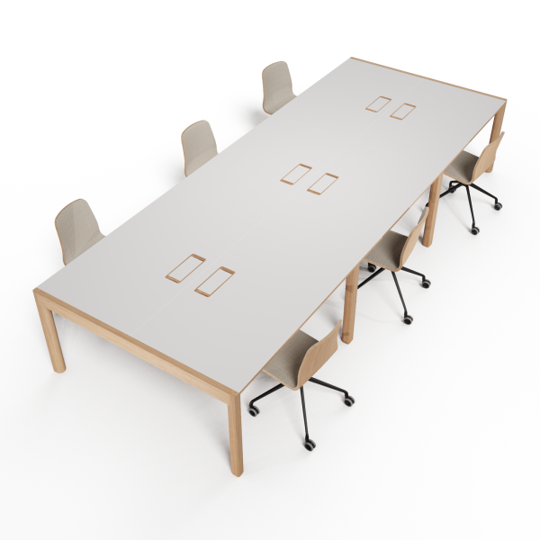 Wooden top (20 mm in 3-ply solid wood), laminate (0.8 mm) or Fenix (1.2 mm): Glued foil on 22 mm mdf with solid wood underlays, white counterbalance.