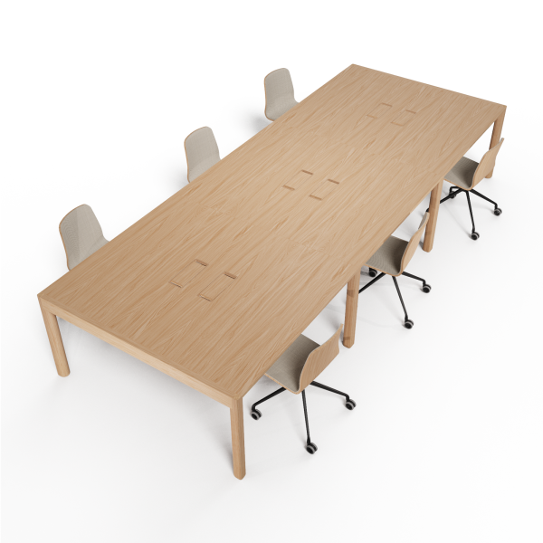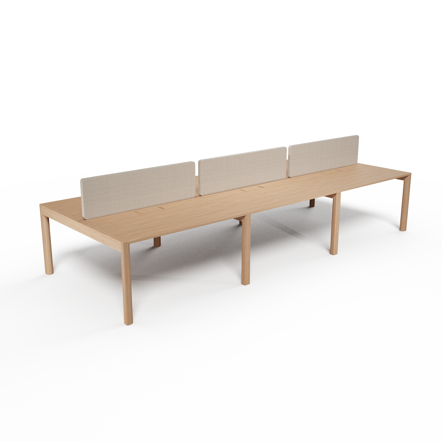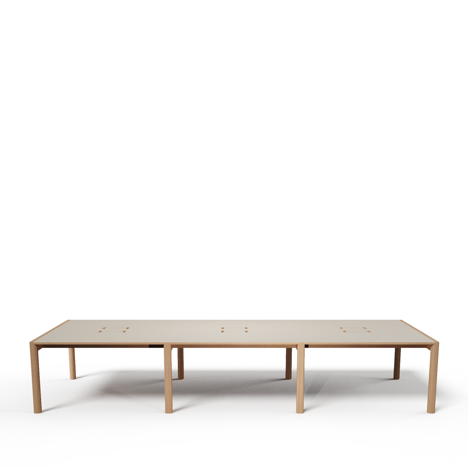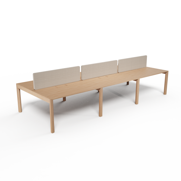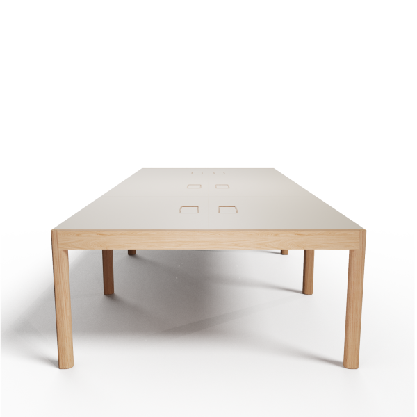 Wooden top (20 mm in 3-ply solid wood), laminate (0.8 mm) or Fenix (1.2 mm): Glued foil on 22 mm mdf with solid wood underlays, white counterbalance.