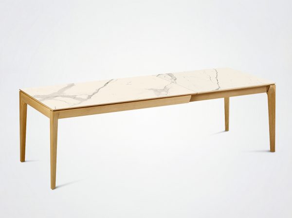 The Buzz extendable table is a versatile creation by designer Didier Versavel. Available in two types of wood, its top can be made of wood or ceramic. With its varied dimensions, this table can be used as both a dining table and a meeting table, to suit every need.