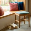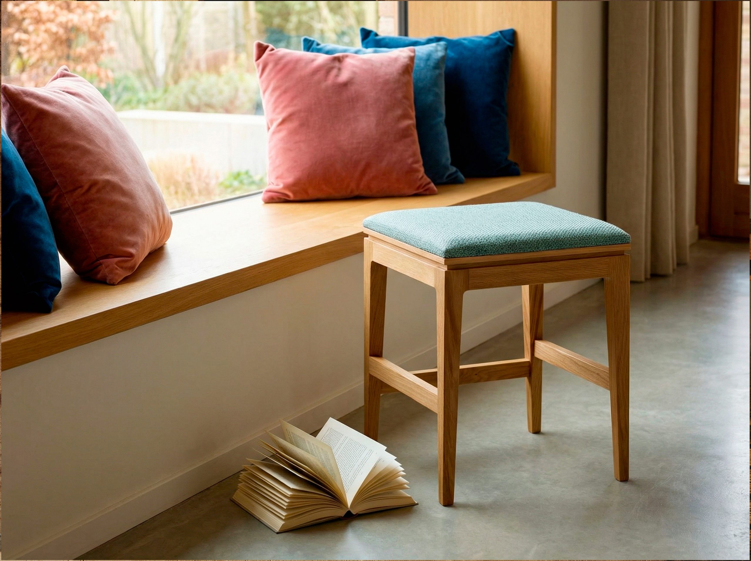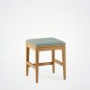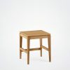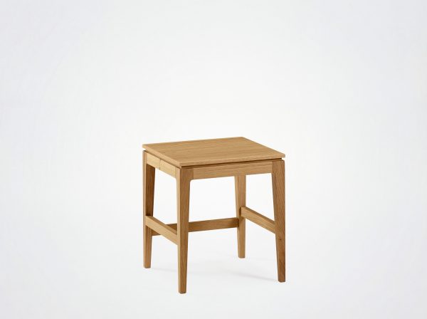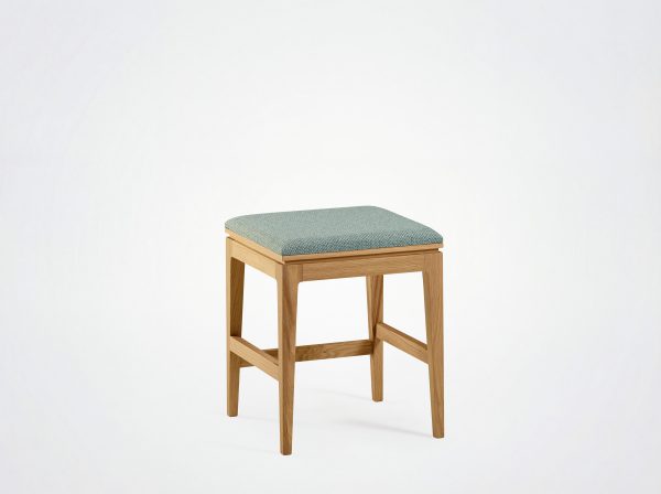 This 45 cm-high stool is available in two types of wood, with the option of wood or fabric seats.