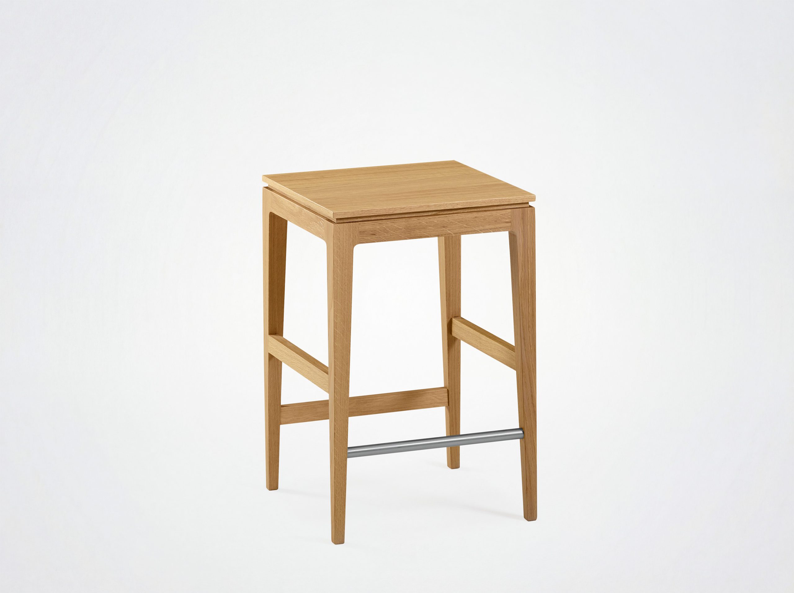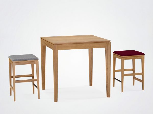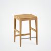 This 60 cm-high stool is available in two types of wood, with a choice of high-quality wood or fabric seats. It fits perfectly into a variety of spaces, whether around a bar, a kitchen island or as an occasional seat around a high table.