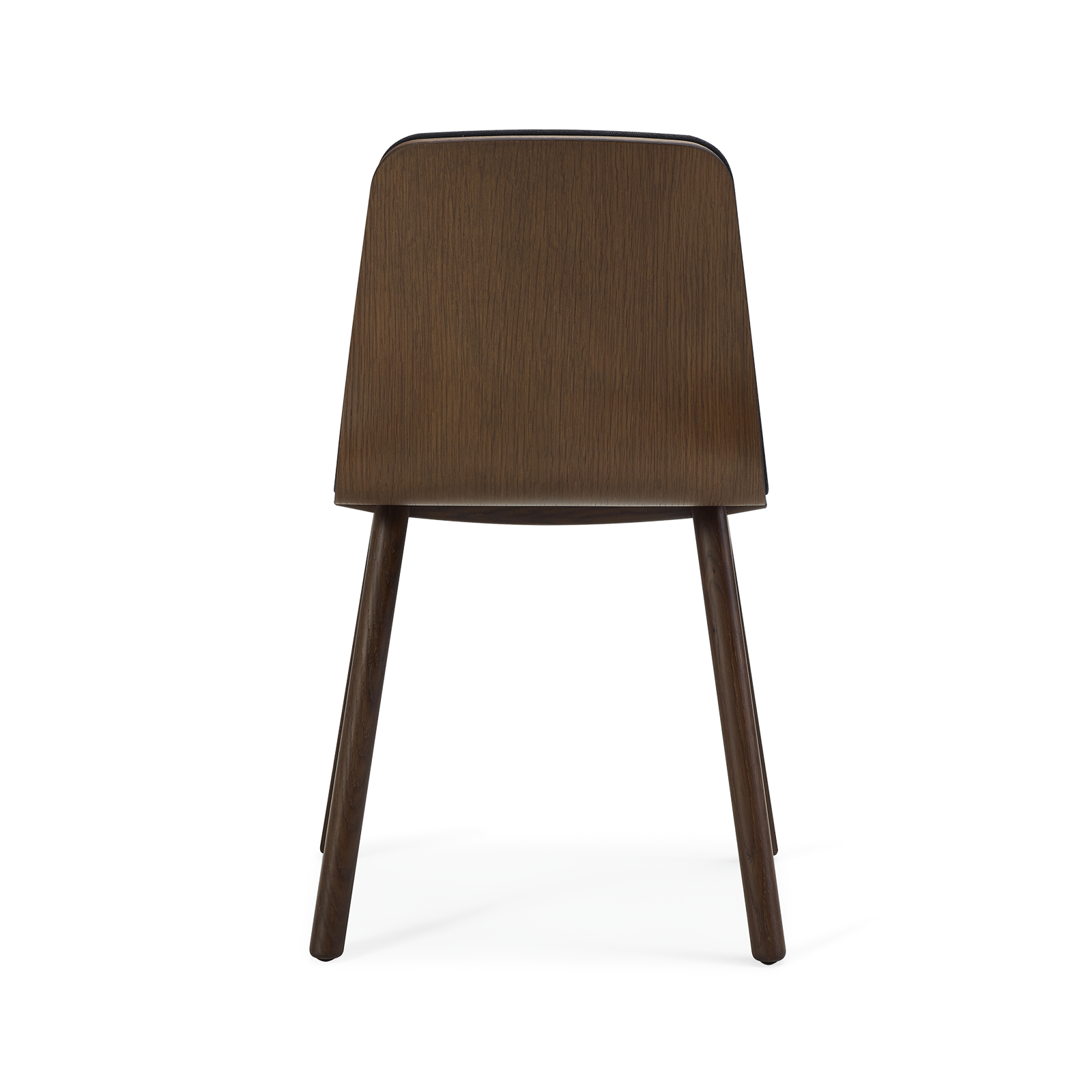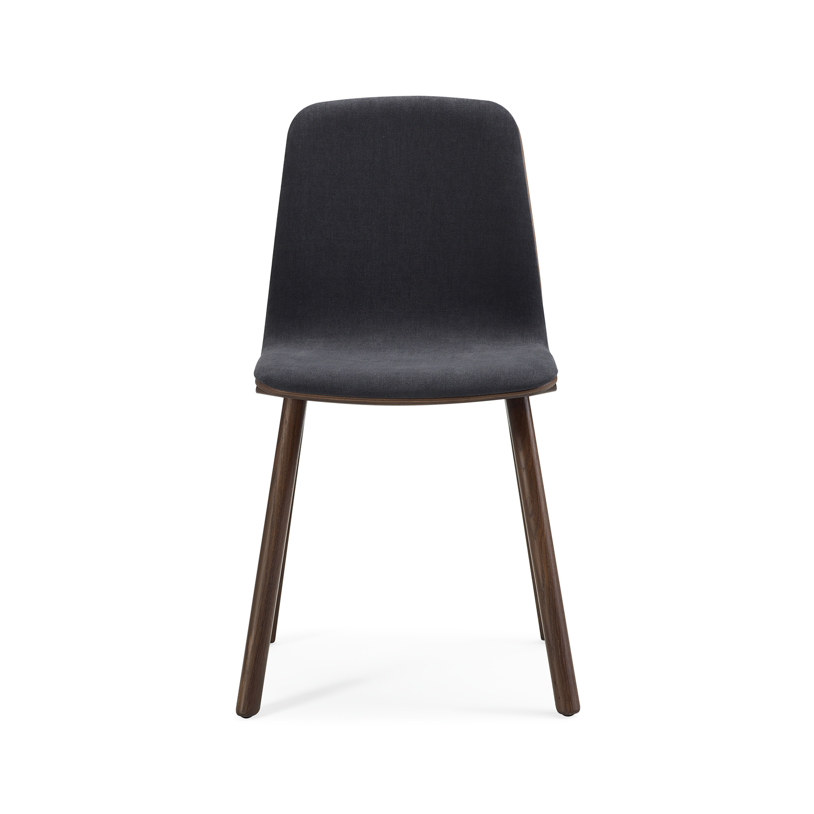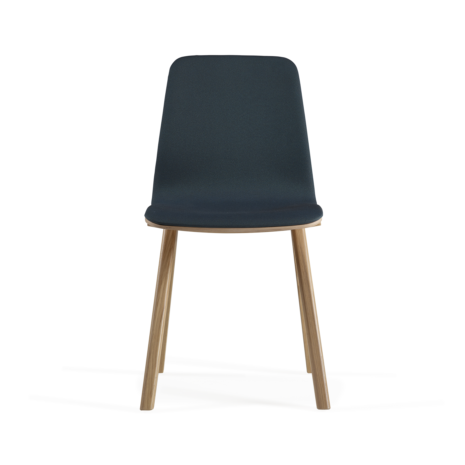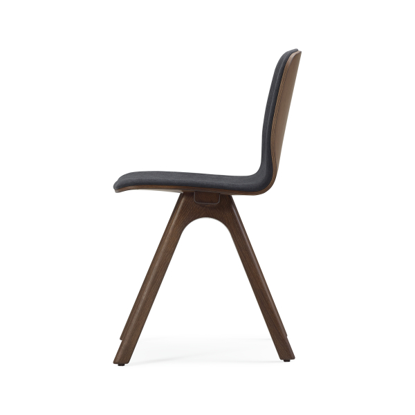 Moulded plywood shell with oak veneer on the back. Placet in 3 mm plywood covered with 20 mm MH40 foam, upholstered with the covering of your choice.