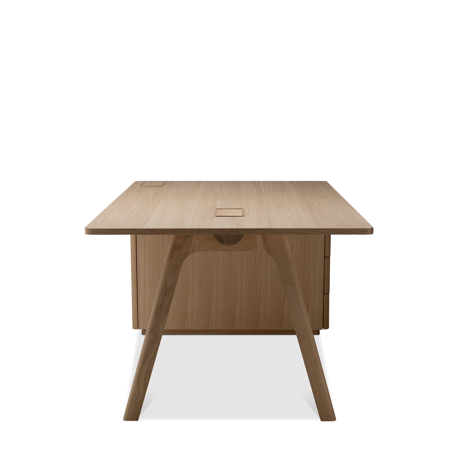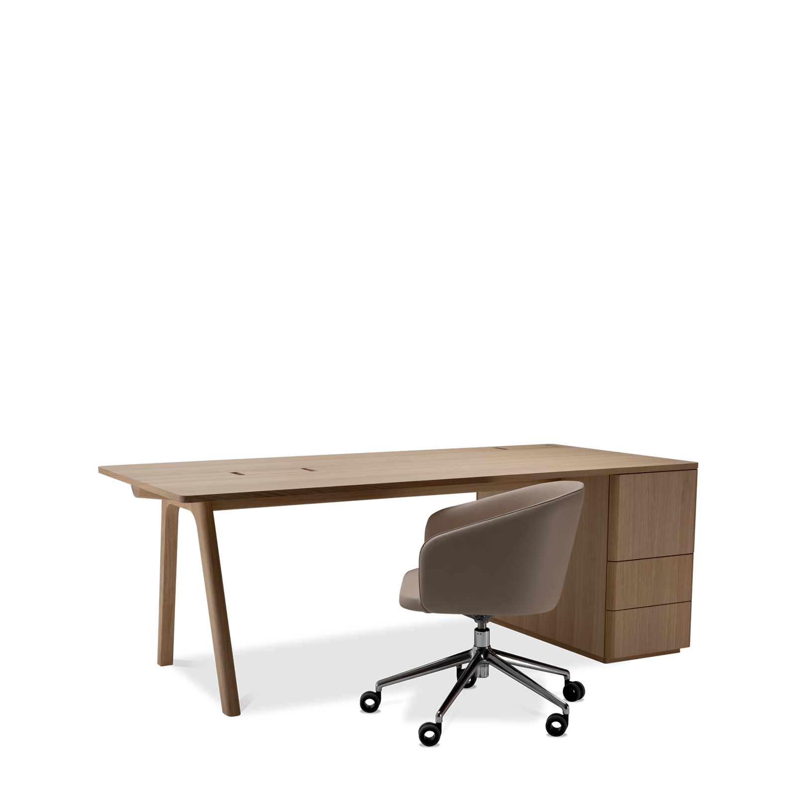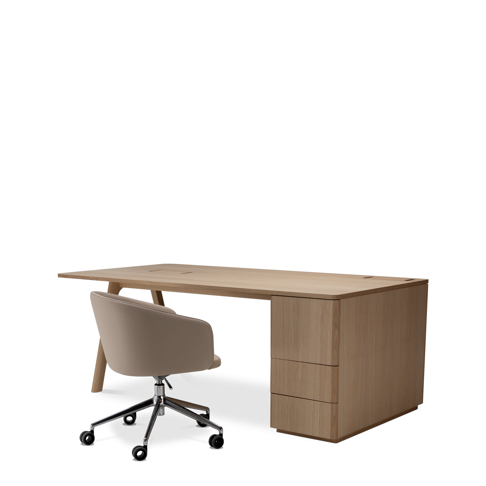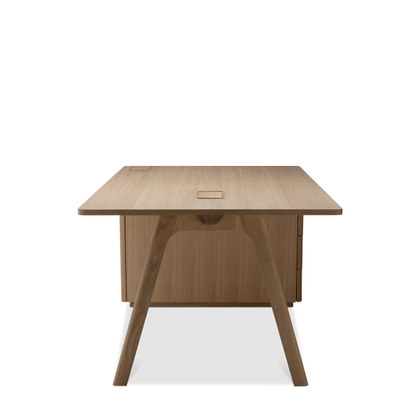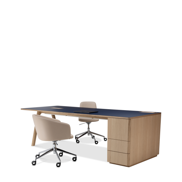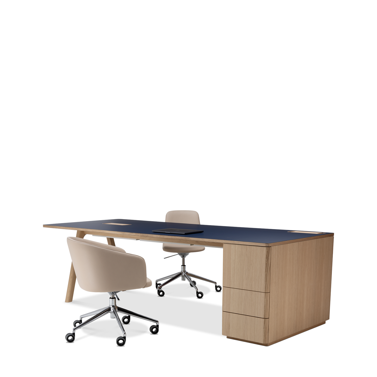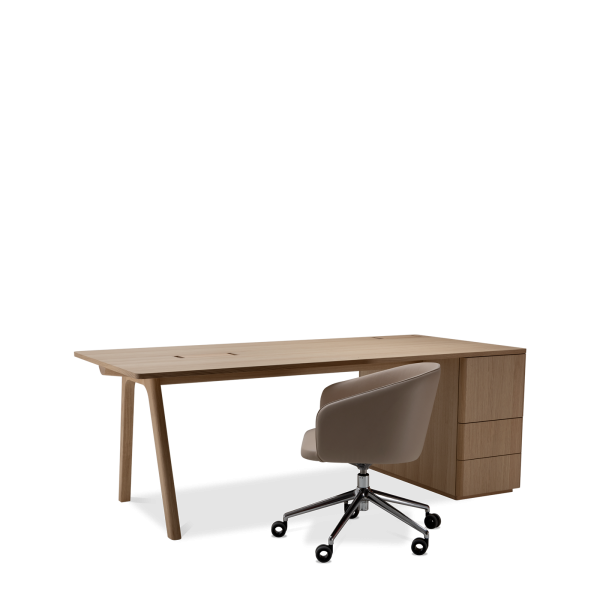 The Chevron executive desk, a creation by designer Guillaume Delvigne, embodies simplicity and essentials in its design. Inspired by the elements of carpentry, notably the legs evoking beams, this large desk combines practicality and aesthetics to fit into any space.