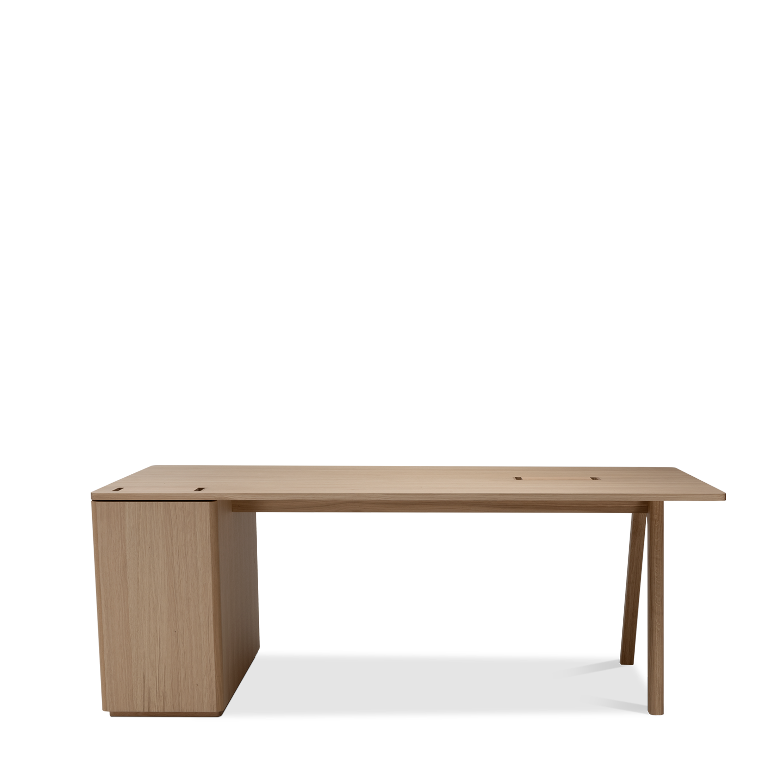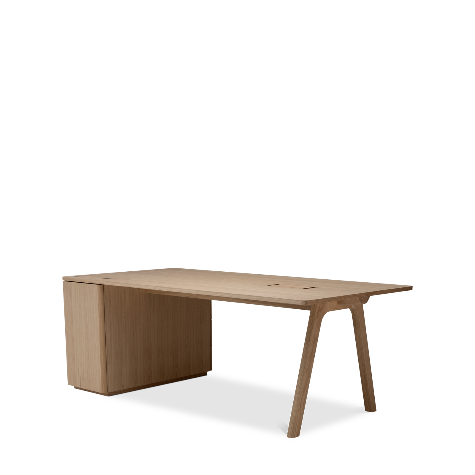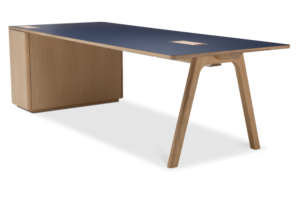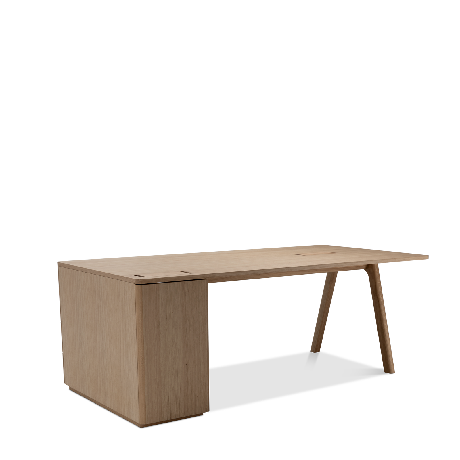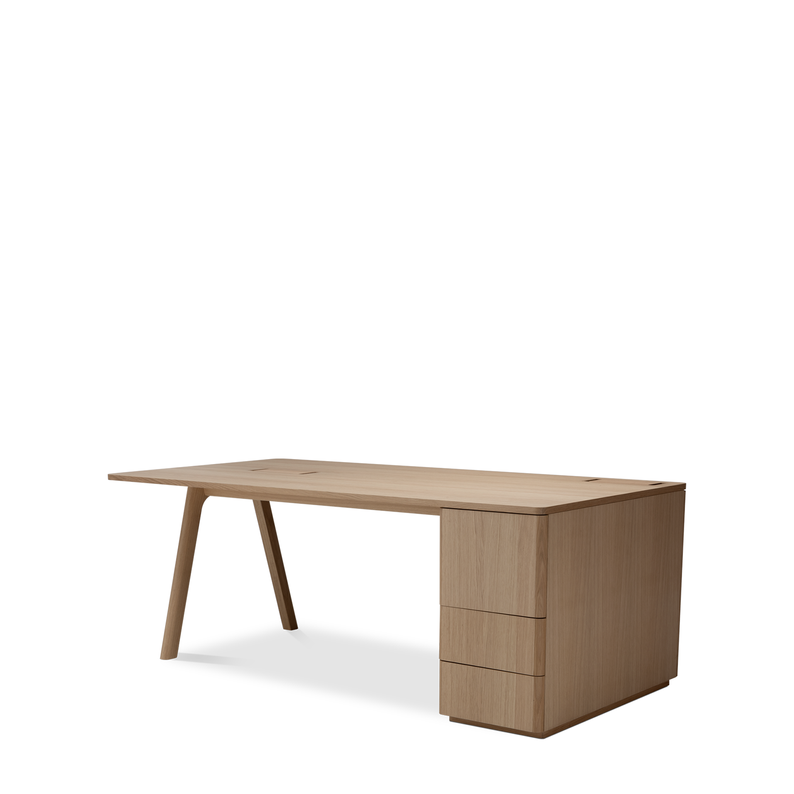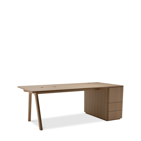 The Chevron executive desk, a creation by designer Guillaume Delvigne, embodies simplicity and essentials in its design. Inspired by the elements of carpentry, notably the legs evoking beams, this large desk combines practicality and aesthetics to fit into any space.