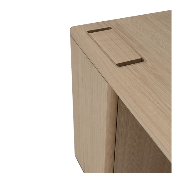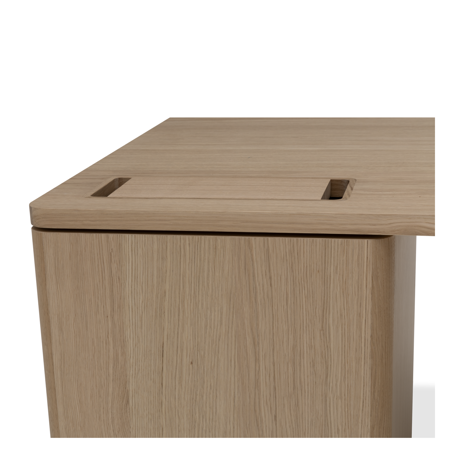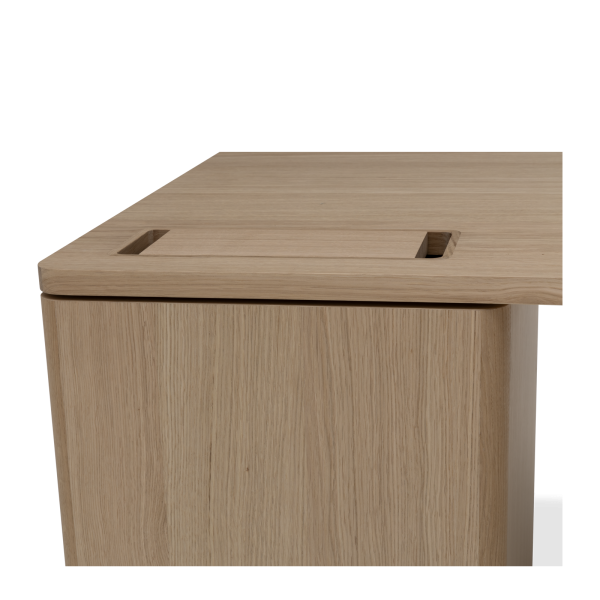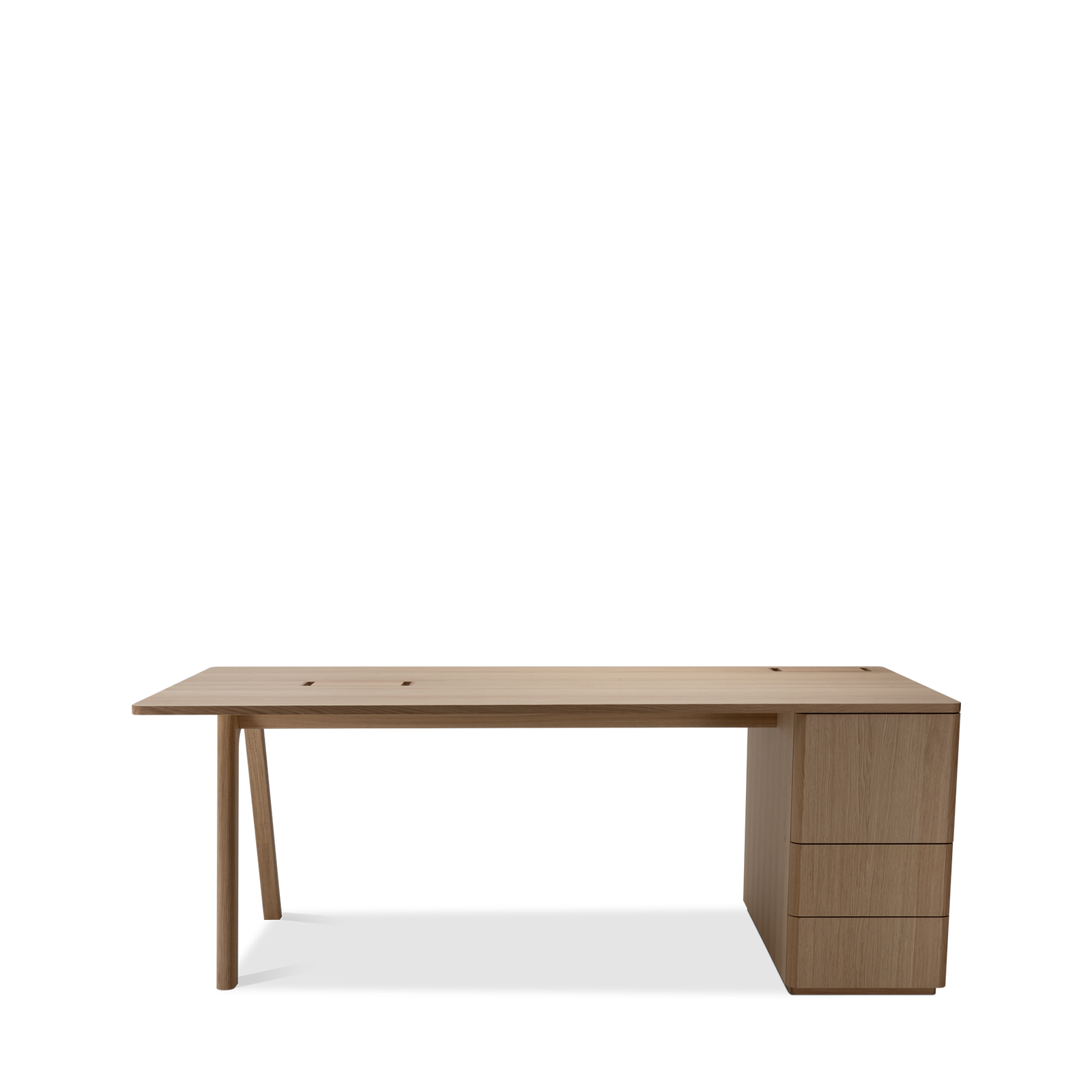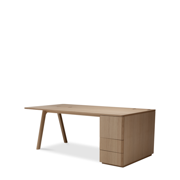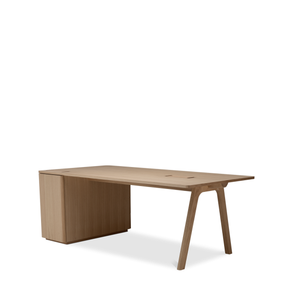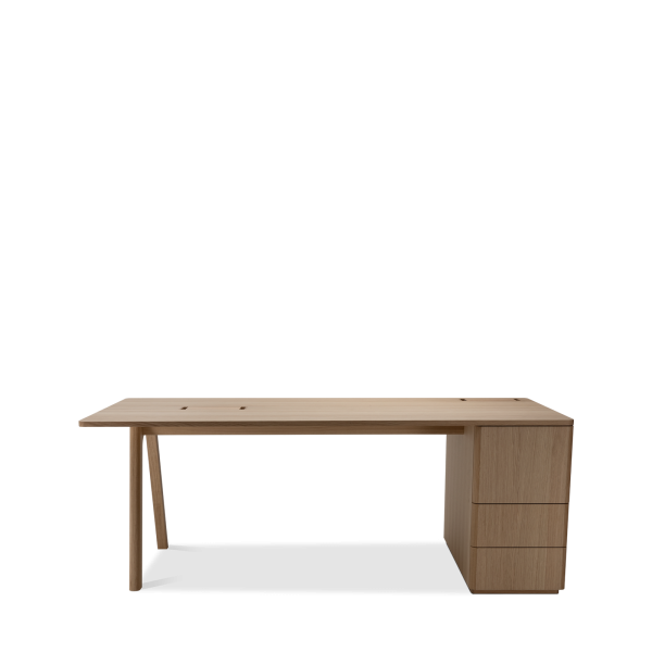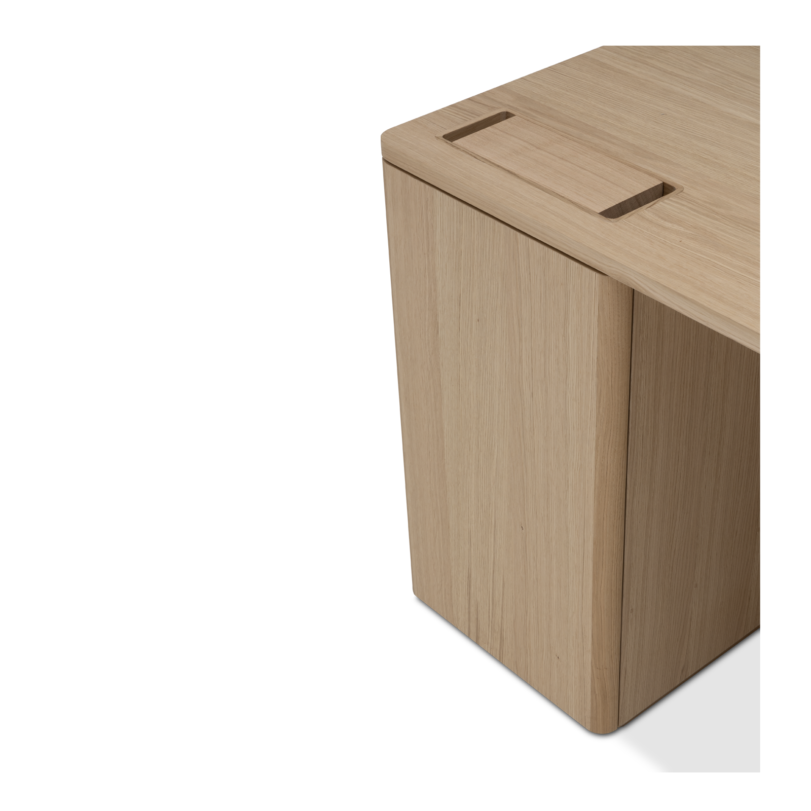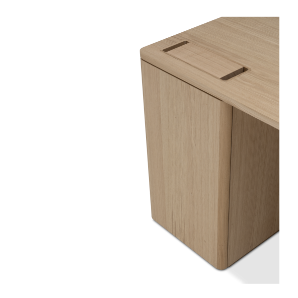 The Chevron executive desk, a creation by designer Guillaume Delvigne, embodies simplicity and essentials in its design. Inspired by the elements of carpentry, notably the legs evoking beams, this large desk combines practicality and aesthetics to fit into any space.