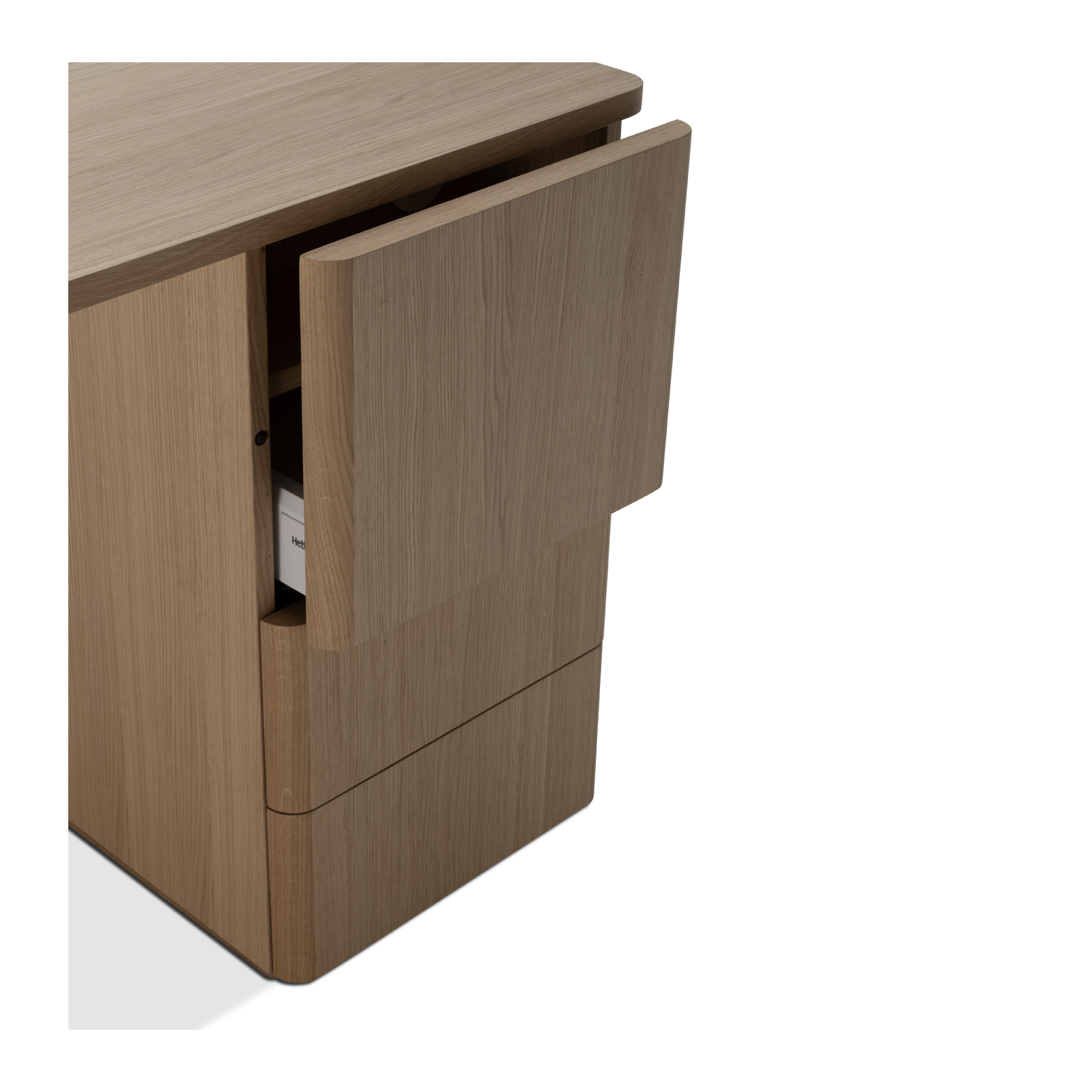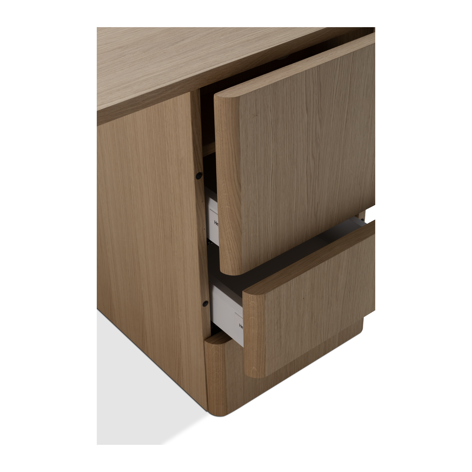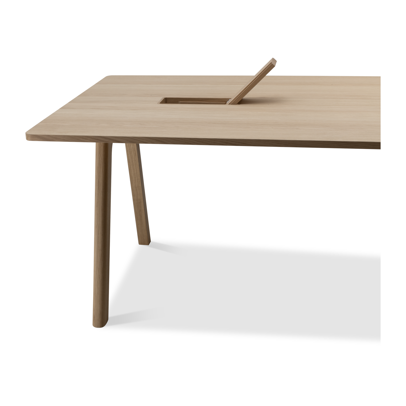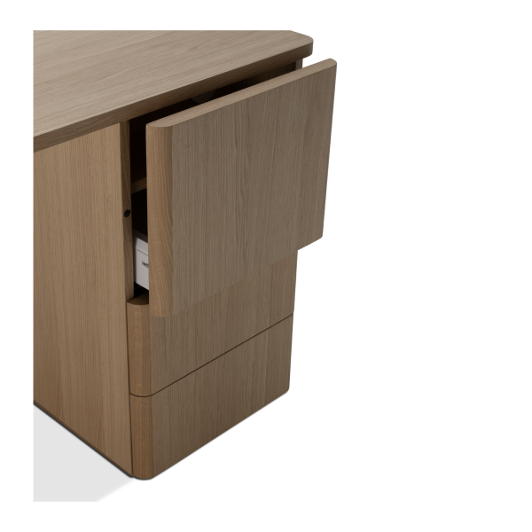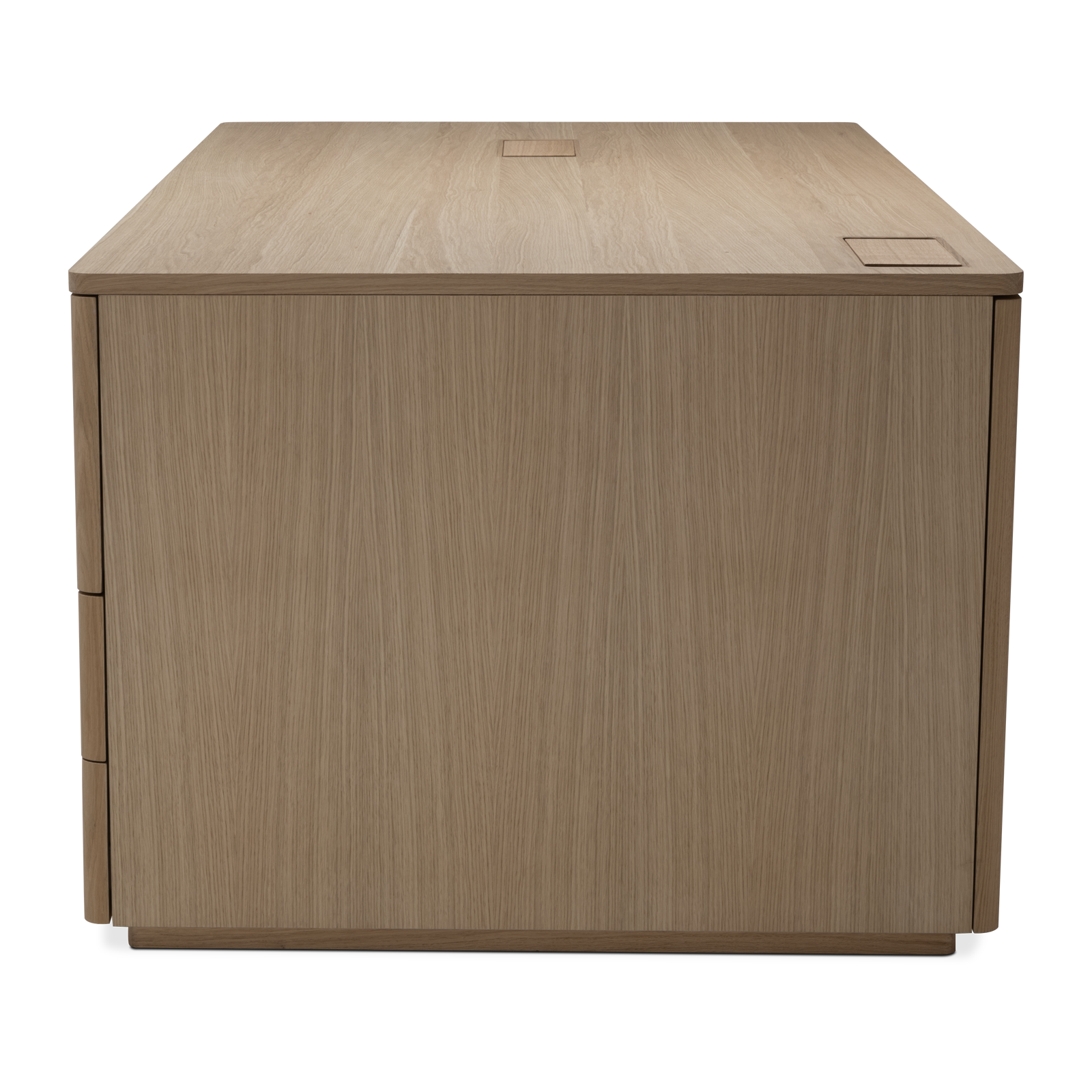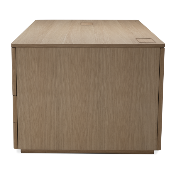 The Chevron executive desk, a creation by designer Guillaume Delvigne, embodies simplicity and essentials in its design. Inspired by the elements of carpentry, notably the legs evoking beams, this large desk combines practicality and aesthetics to fit into any space.