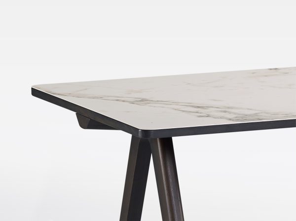 Ceramic top: 6 mm ceramic plate glued to 19 mm mdf with solid wood supports.