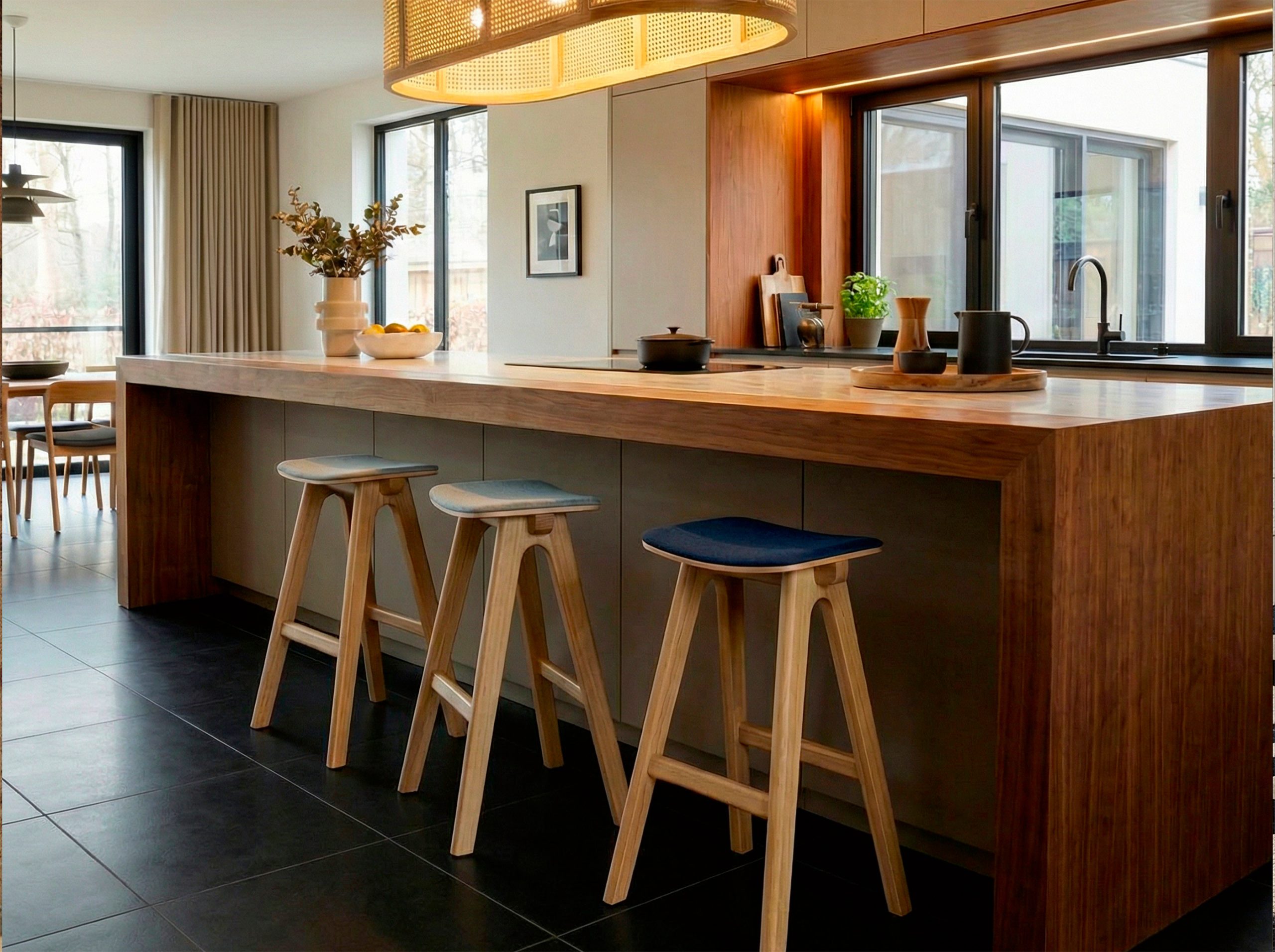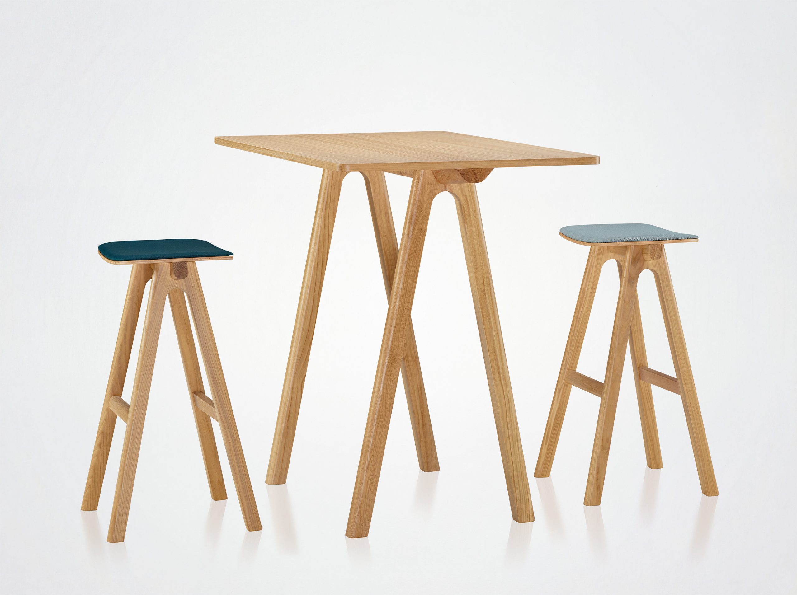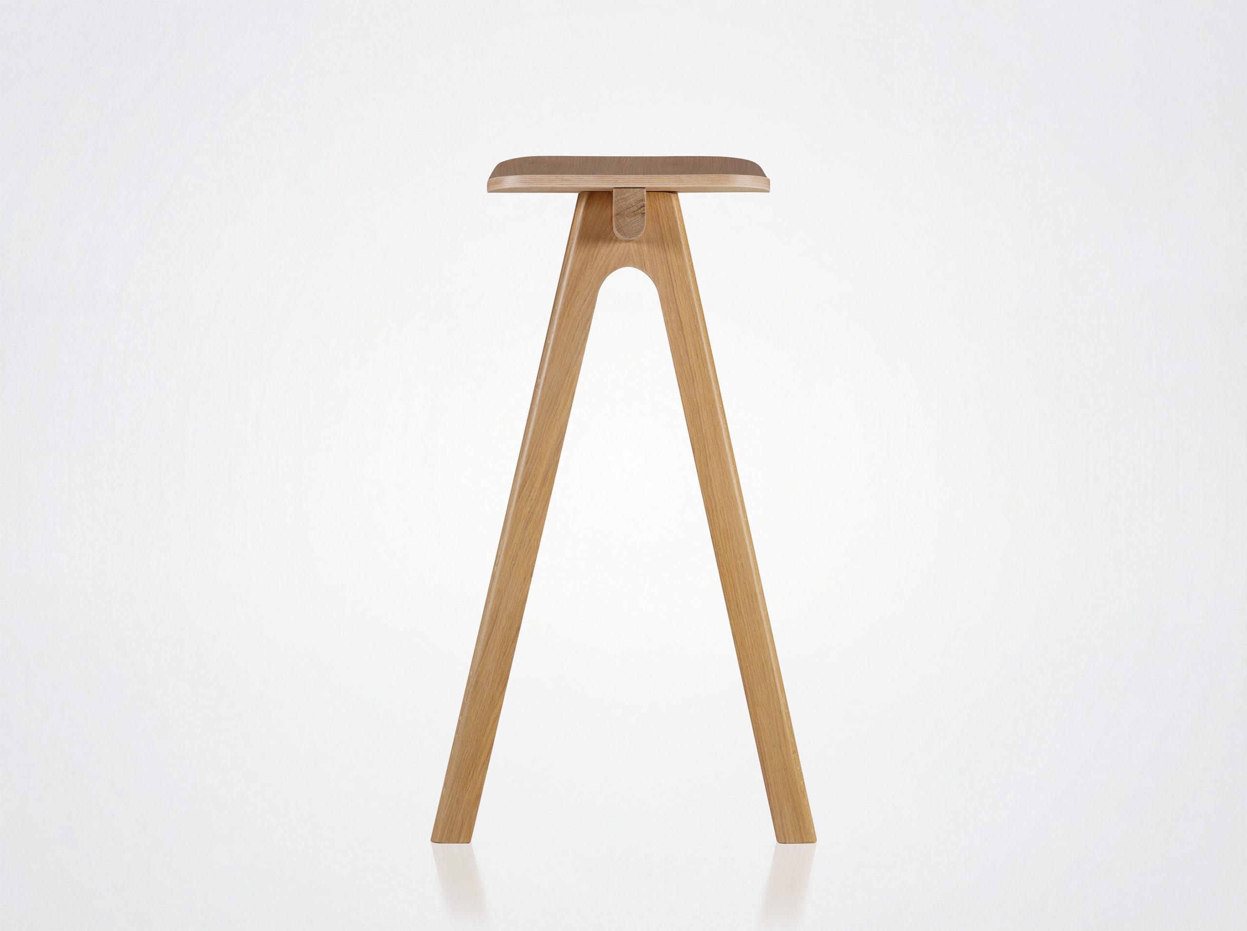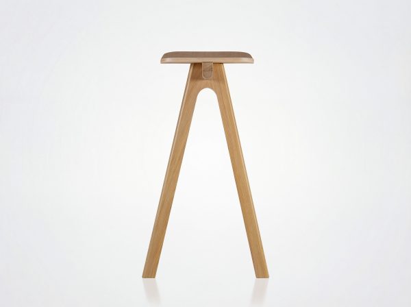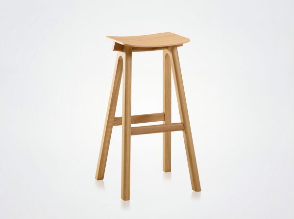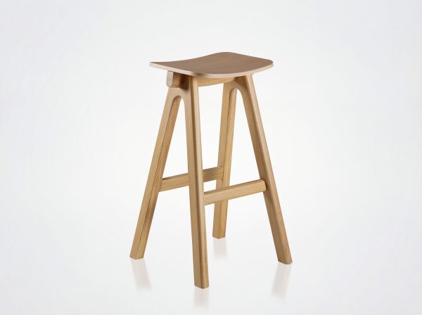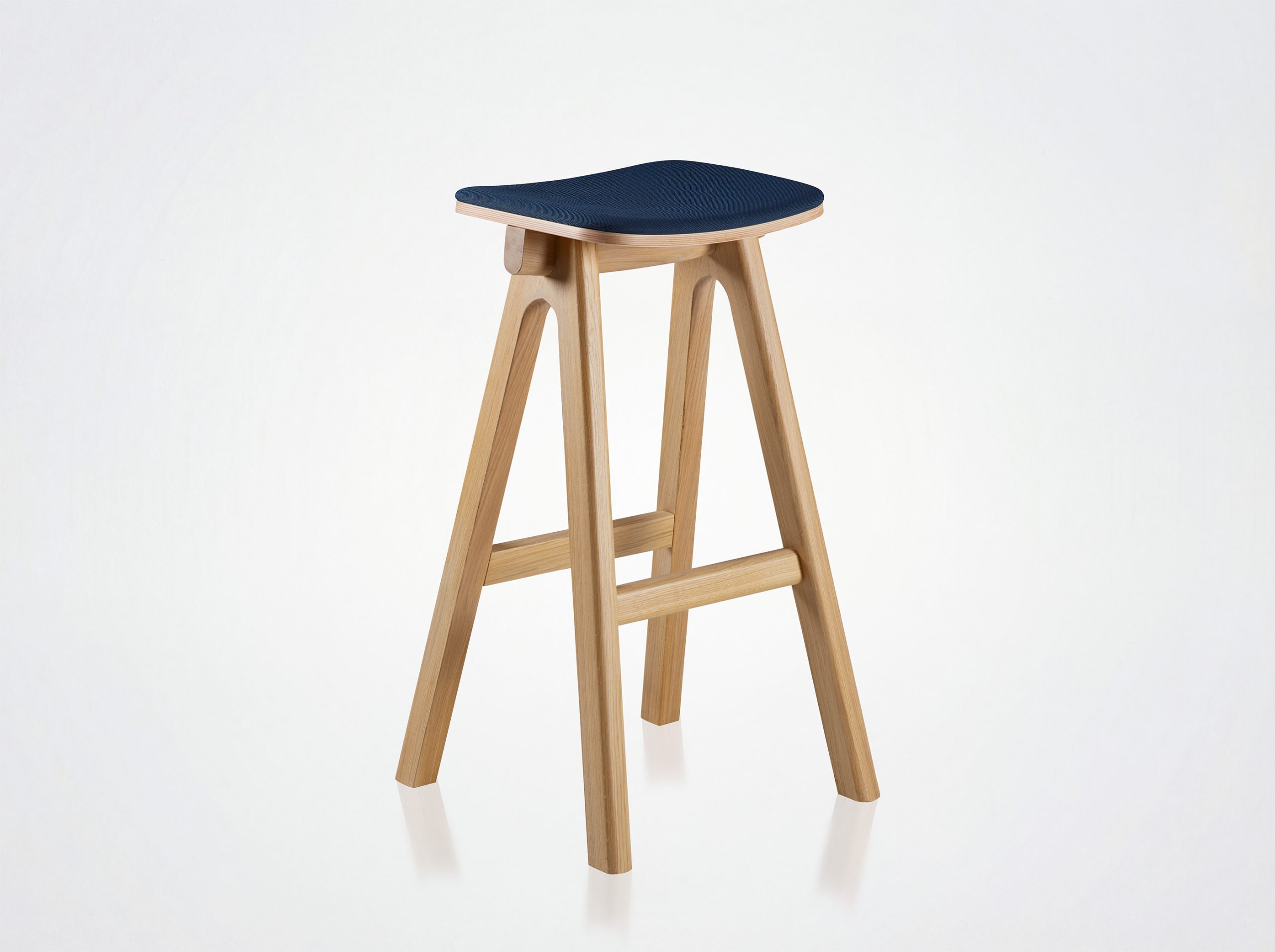 Discover the sleek Chevron bar stool, which draws its inspiration from carpentry with its beam-like legs. Customizable with a wood or fabric seat, this stool stands out for its 80 cm height, specially designed to accompany a higher counter or bar.