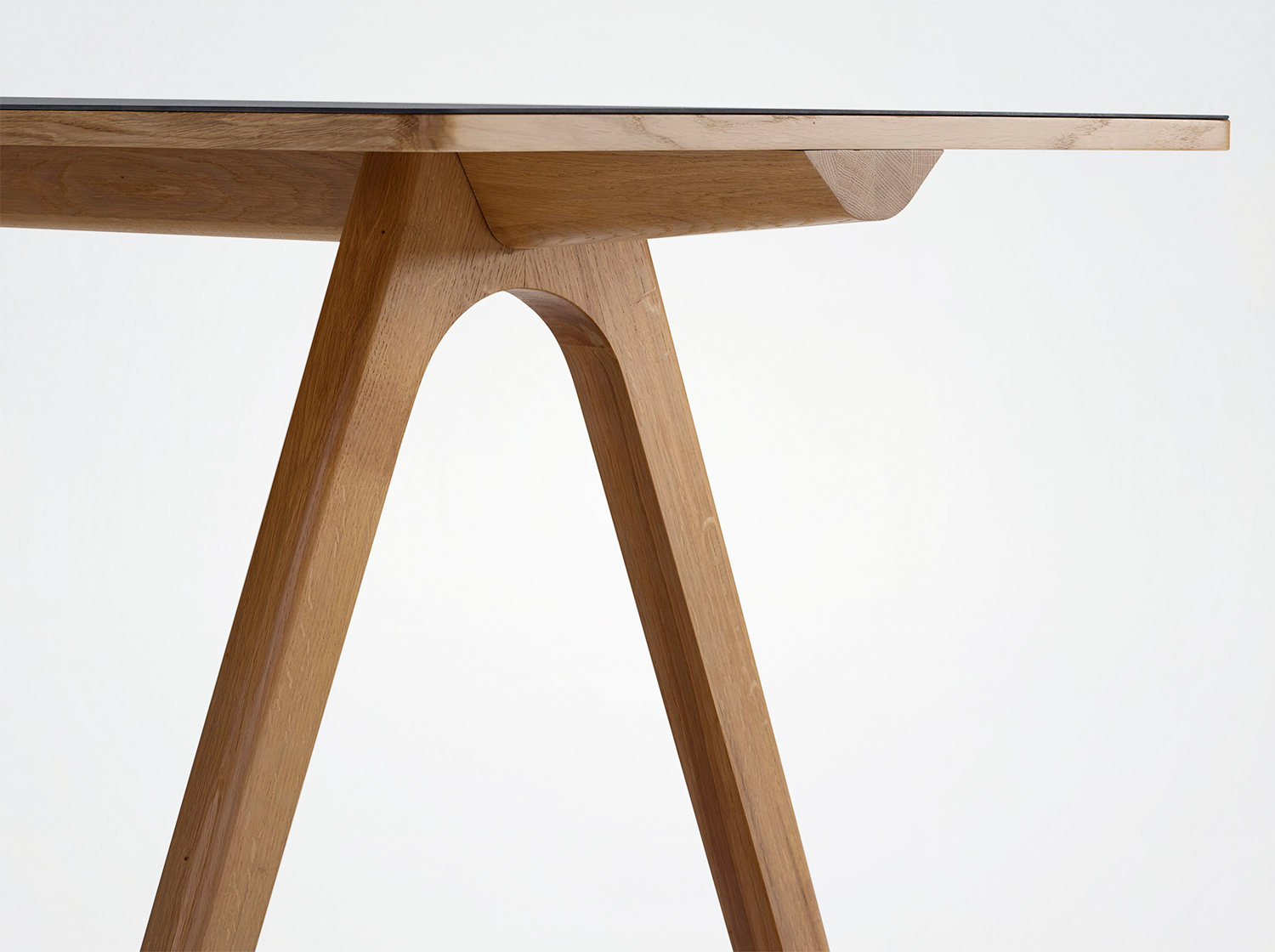 Ceramic top: 6 mm ceramic slab glued to 24 mm mdf with solid wood supports. Veneered service sponges.