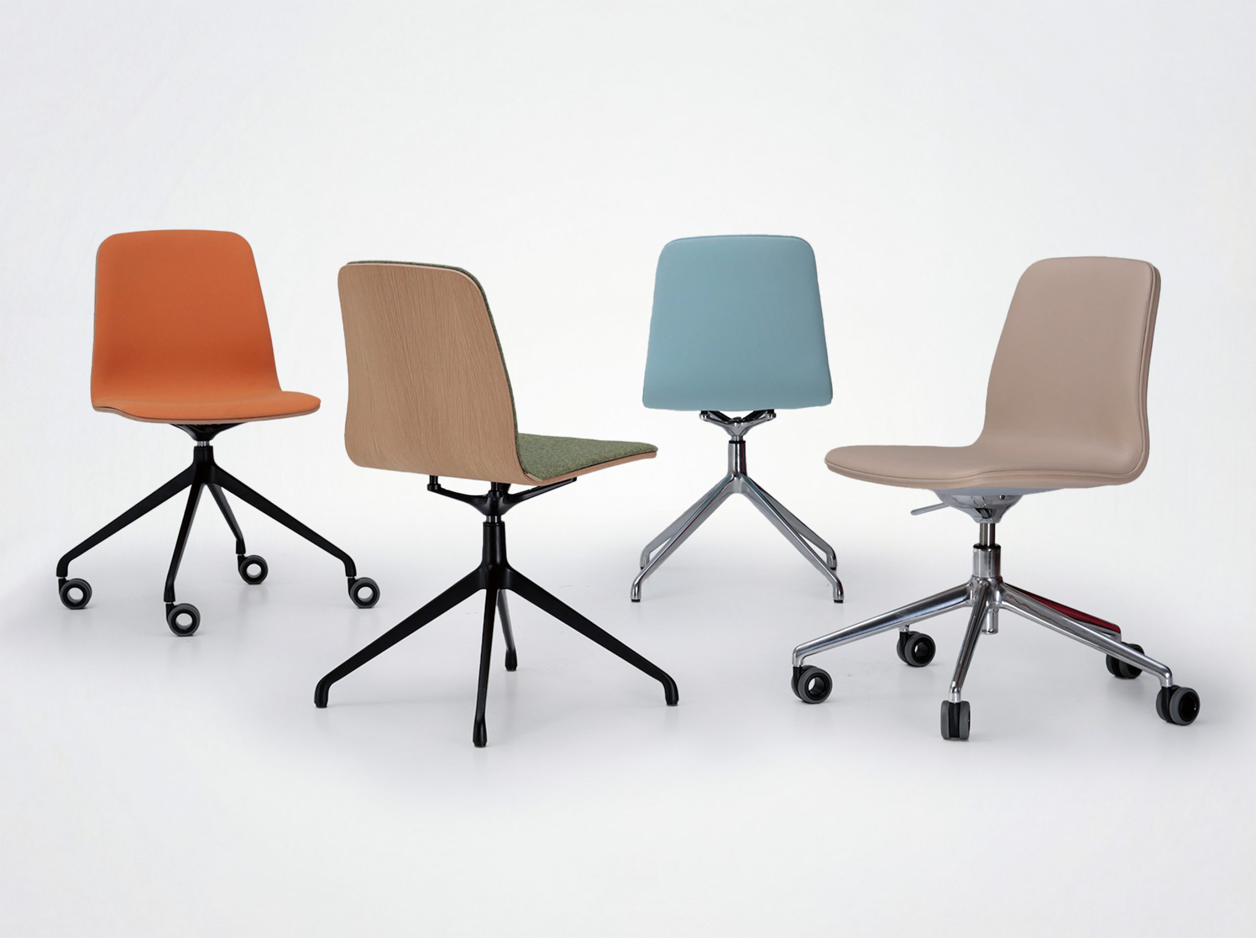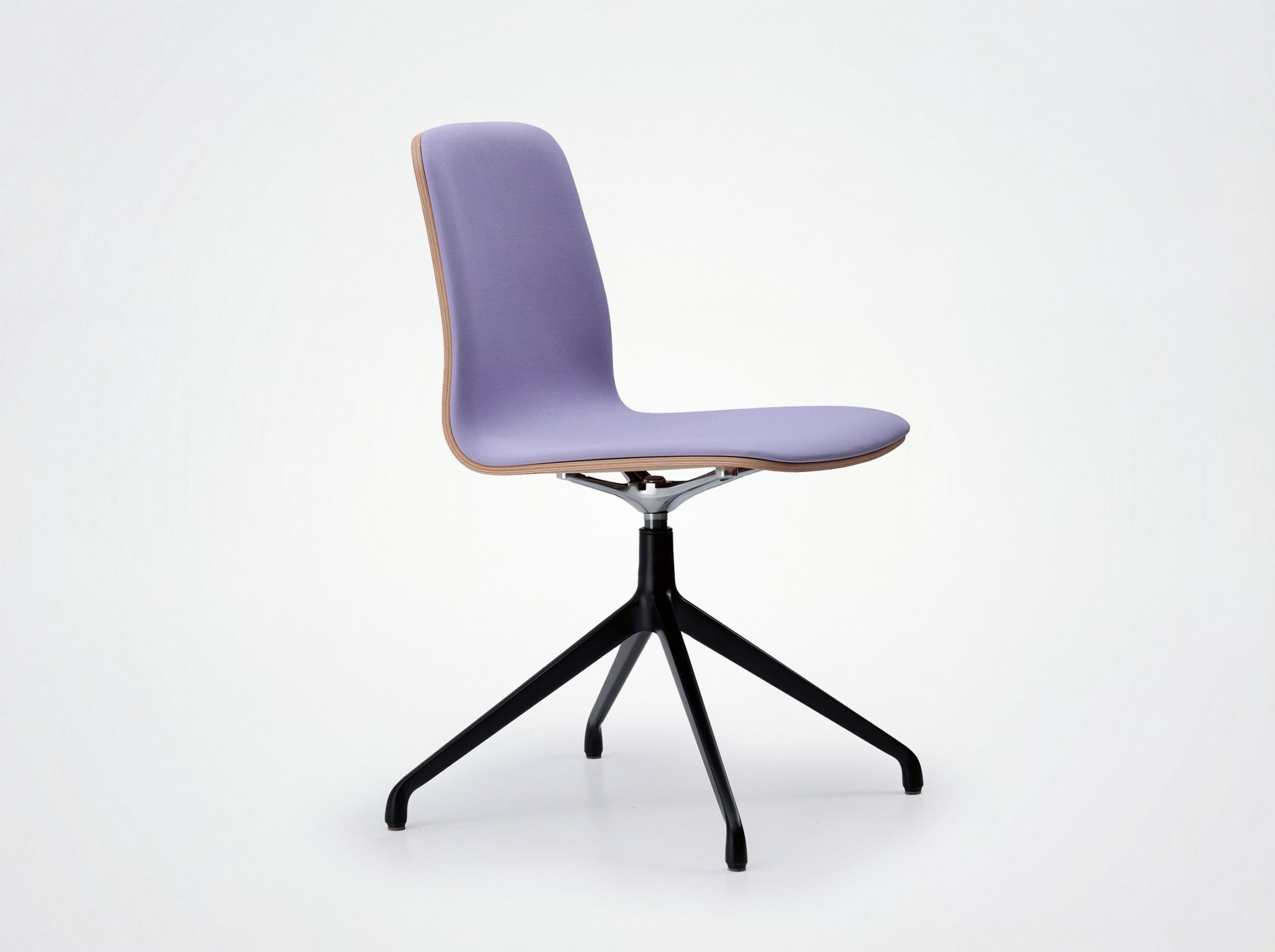 With oak backrest and upholstered seat comprising a molded plywood shell with oak veneer on the back, 1 plywood seat 3 mm covered with 20 mm MH40 foam upholstered with a covering of your choice.