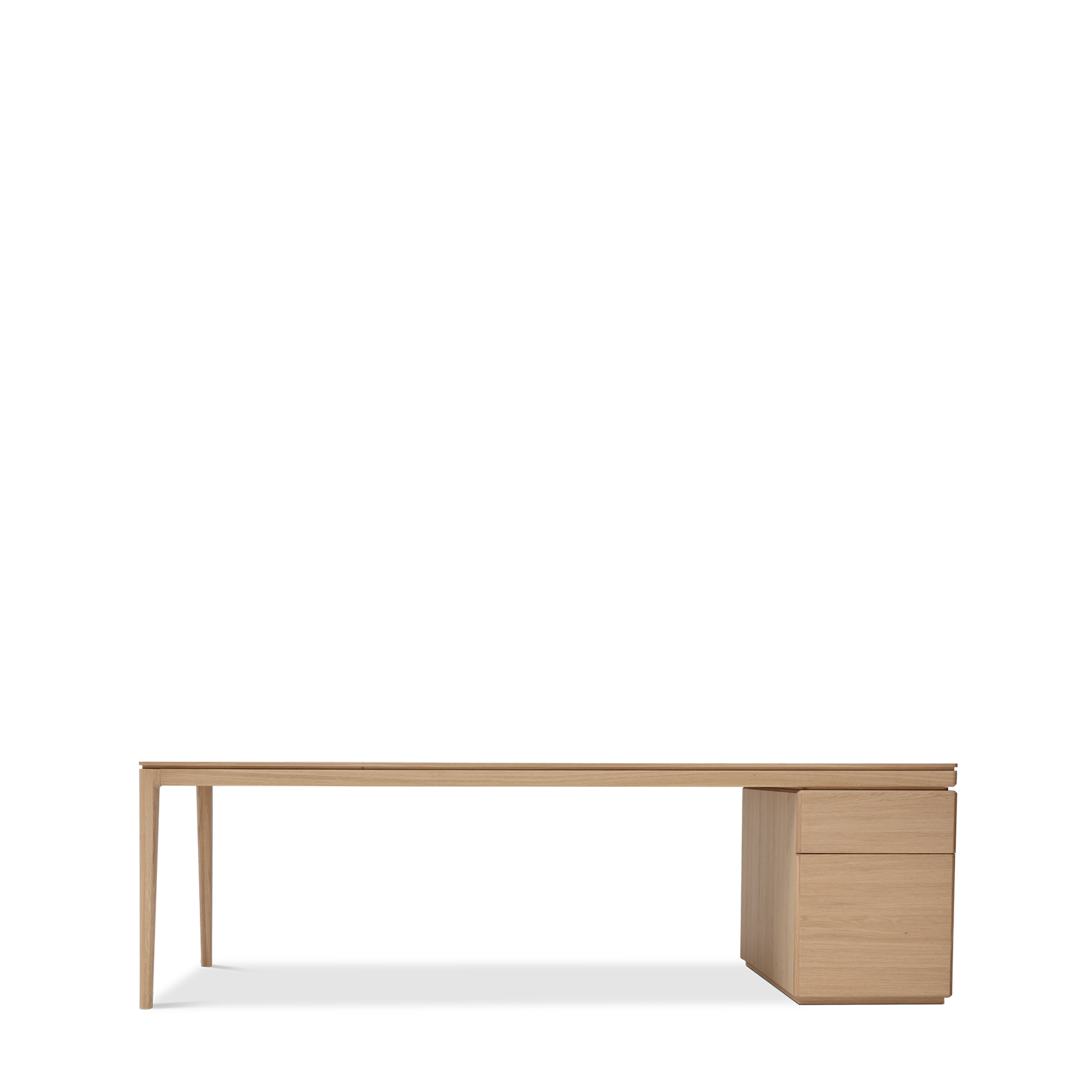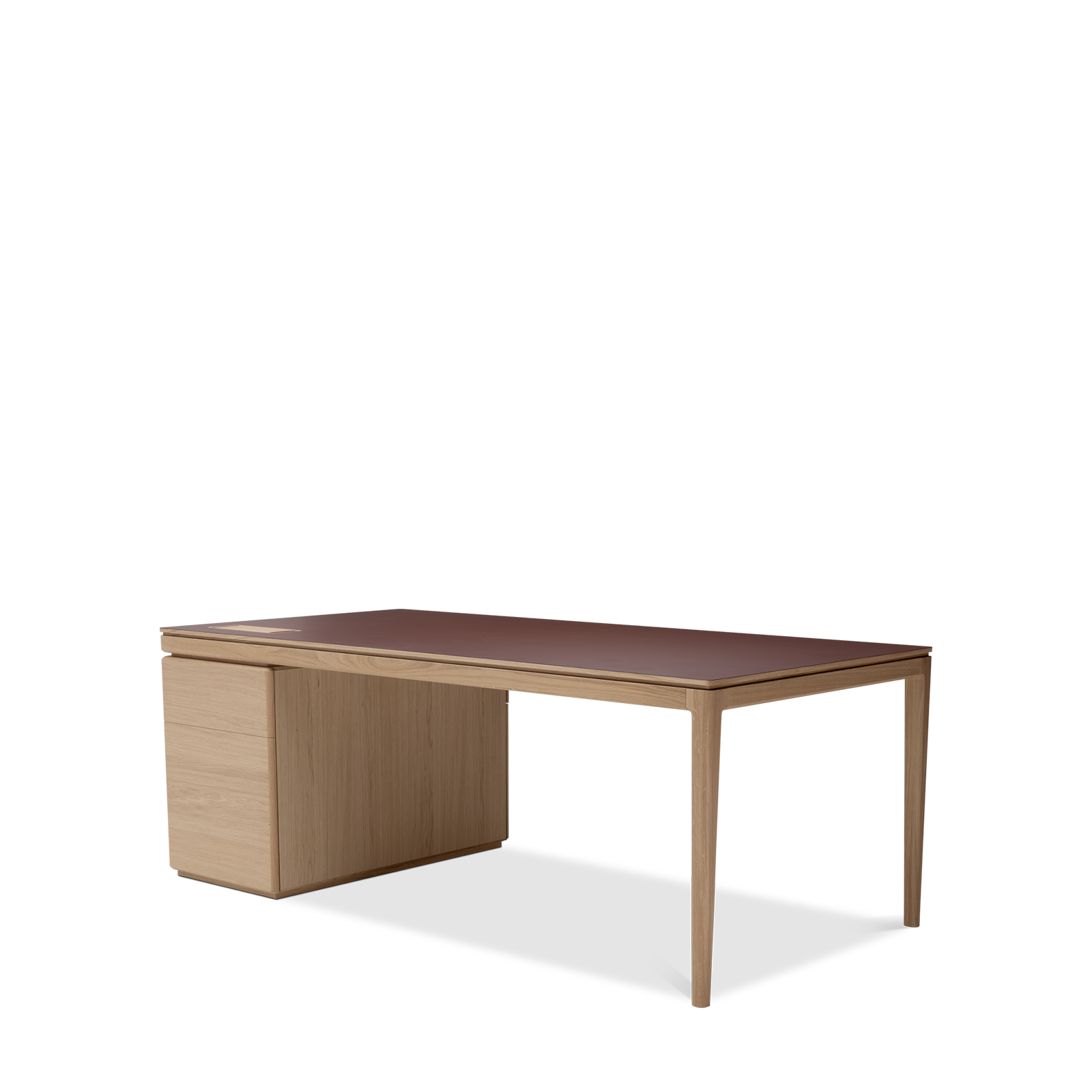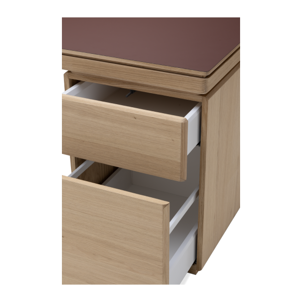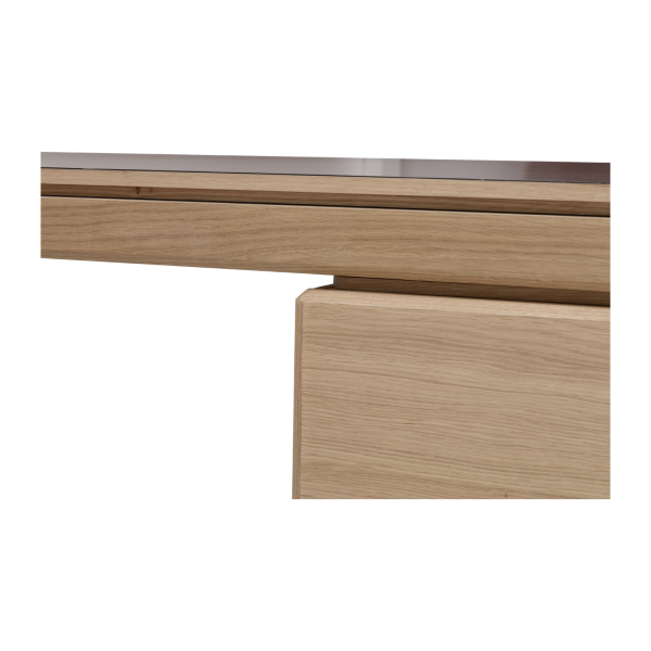 The Albâtre executive desk is a creation by Dasras Edition. Available in oak and walnut, with a top in wood, laminate or Fenix, this large, sleek desk features a two-drawer pedestal and optimized workspace.