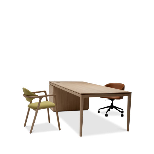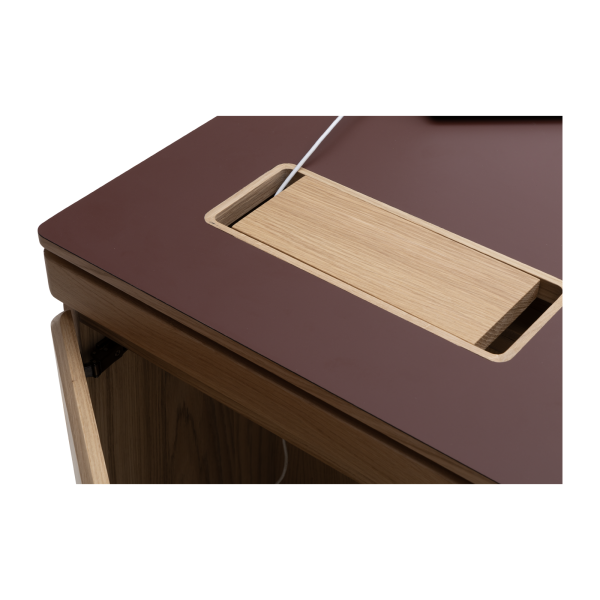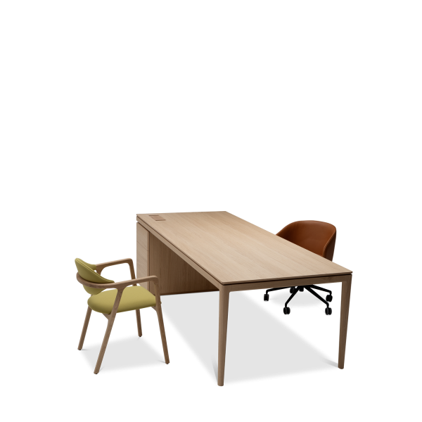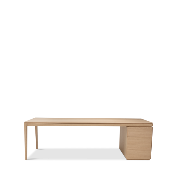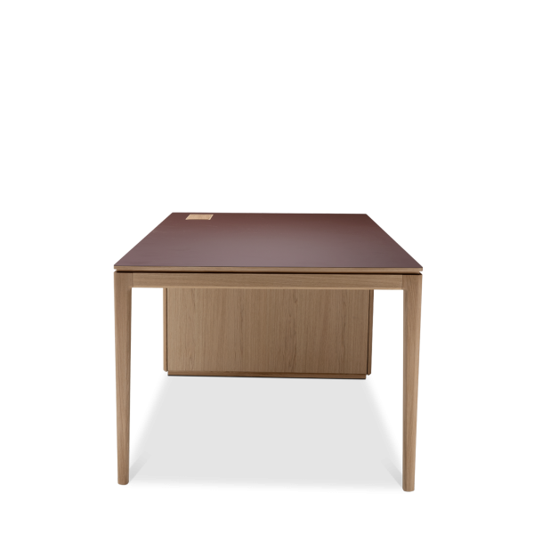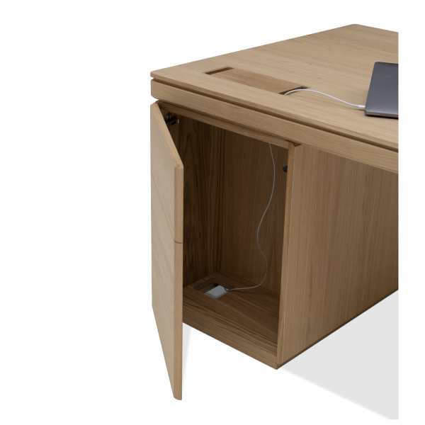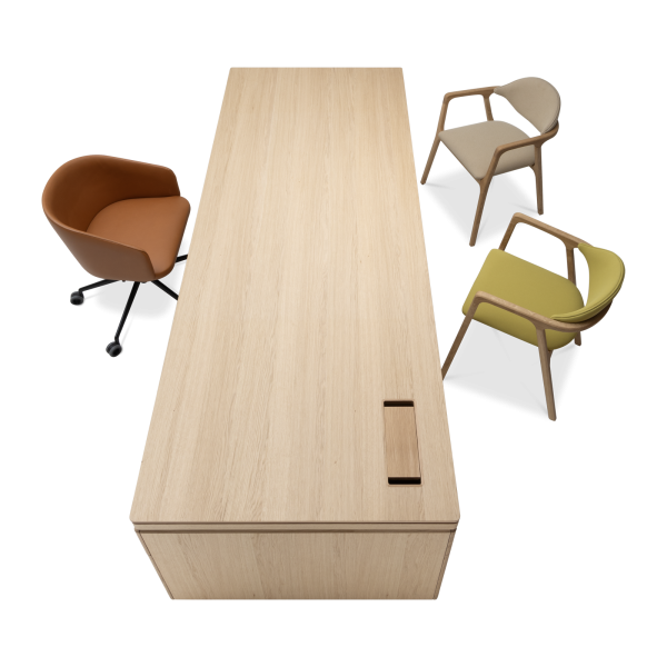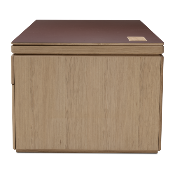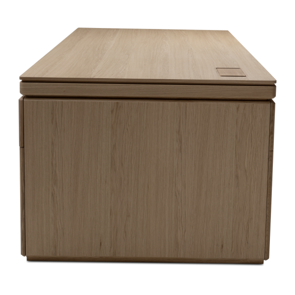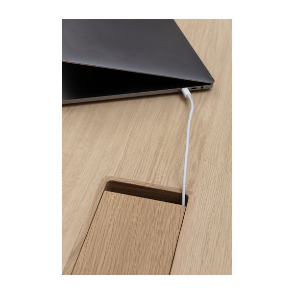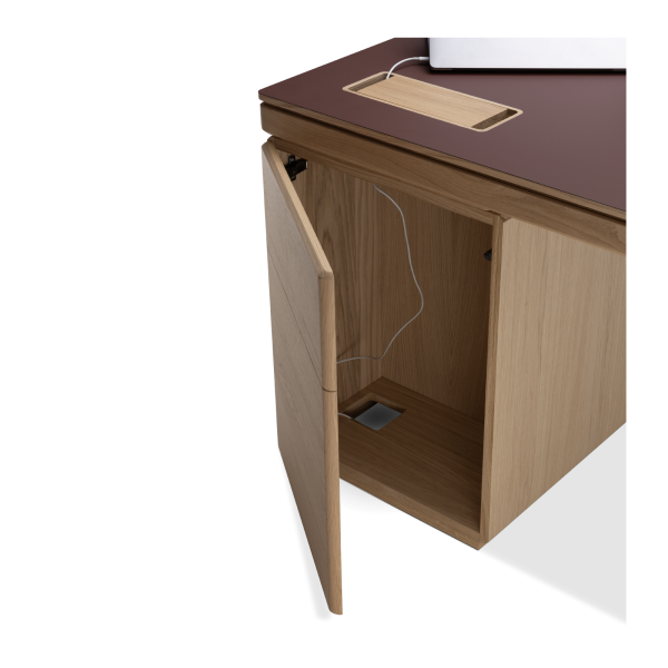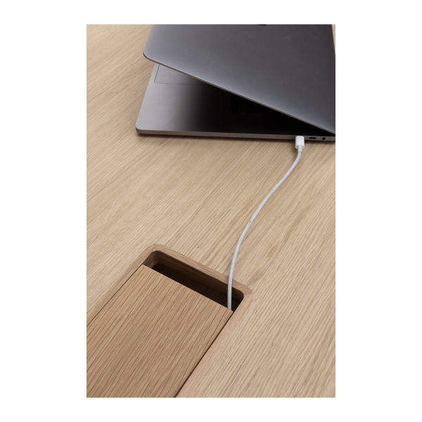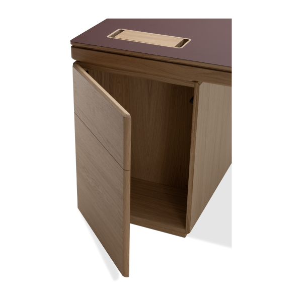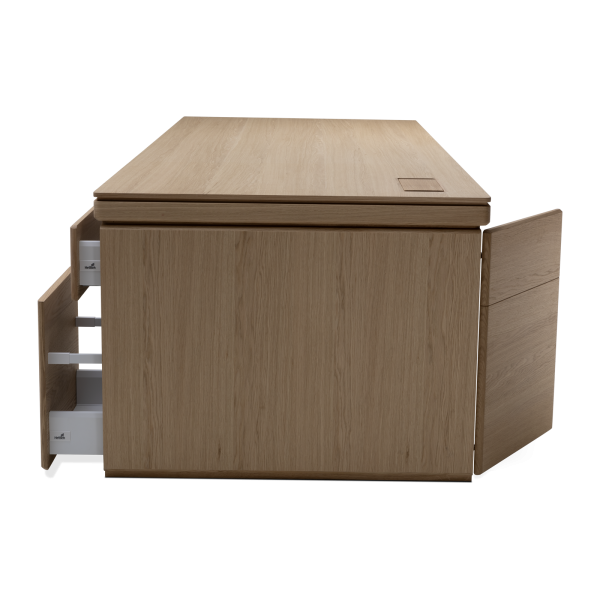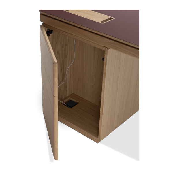 Available in oak and walnut us. Solid wood structure. Solid wood, laminate or Fenix tops Veneered pedestals and drawer fronts. Includes: 1 white lacquered metal trunking and 1 top access per station. Optionally available: additional LEGRAND top access and socket strips.