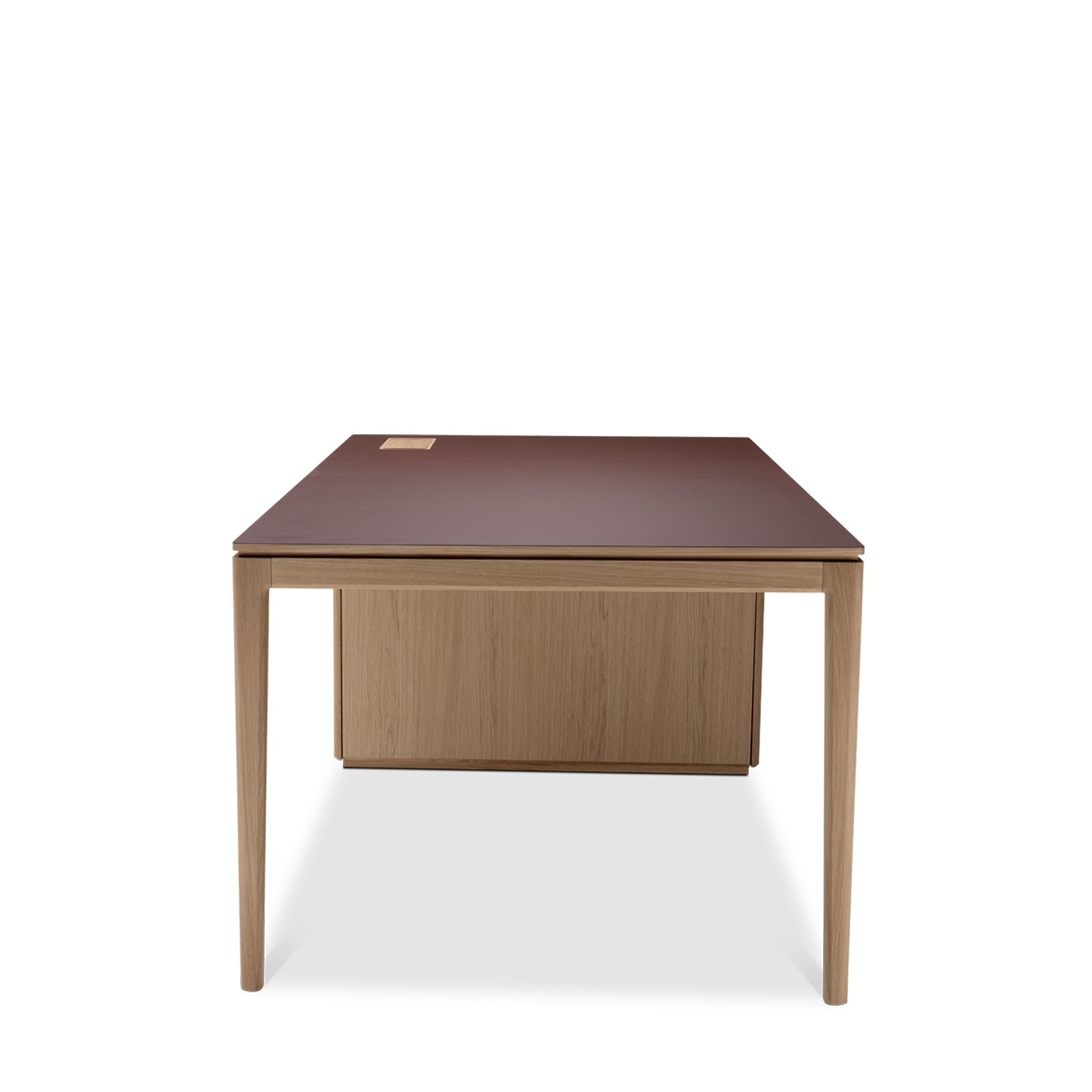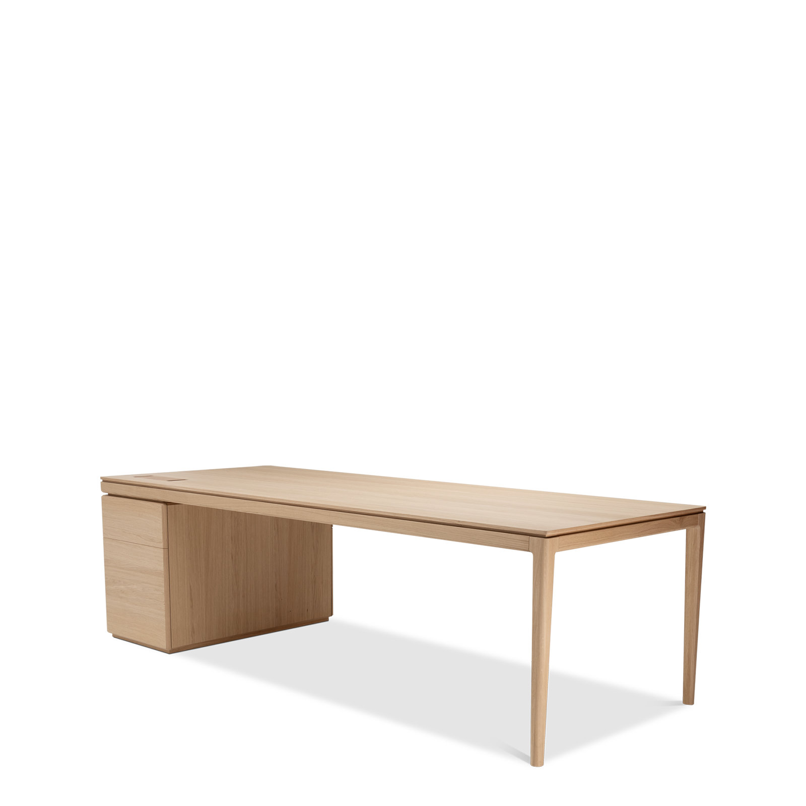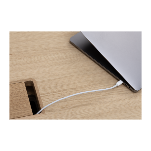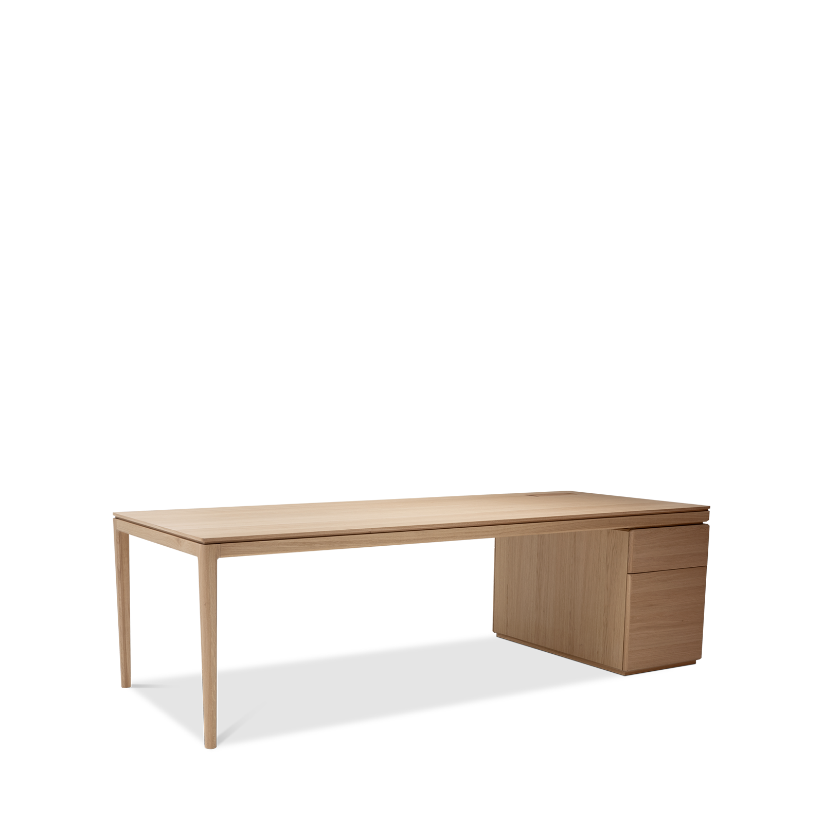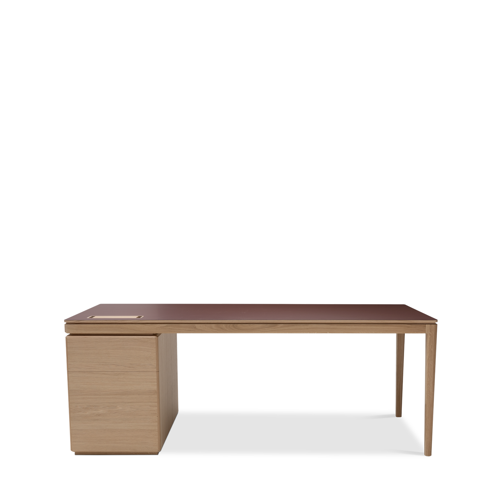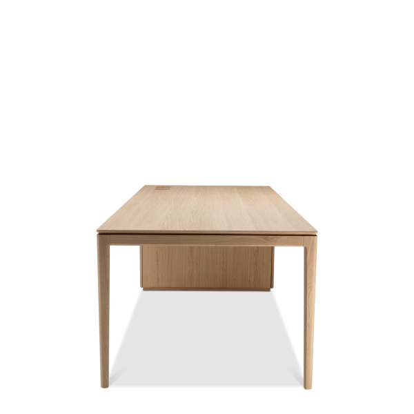 Available in oak and walnut us. Solid wood structure. Solid wood, laminate or Fenix tops Veneered pedestals and drawer fronts. Includes: 1 white lacquered metal trunking and 1 top access per station. Optionally available: additional LEGRAND top access and socket strips.