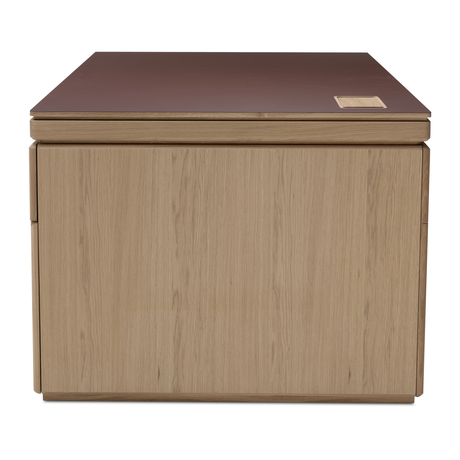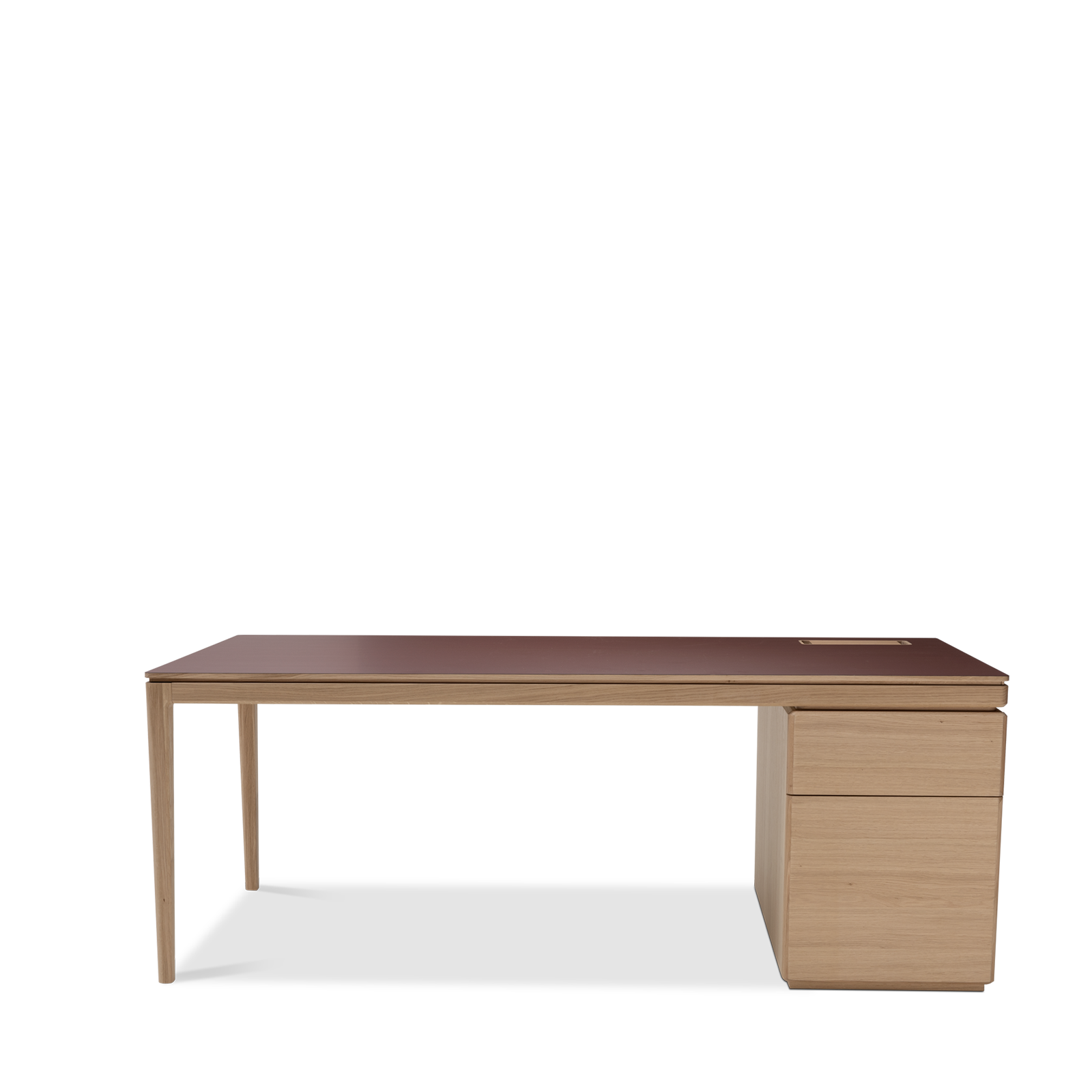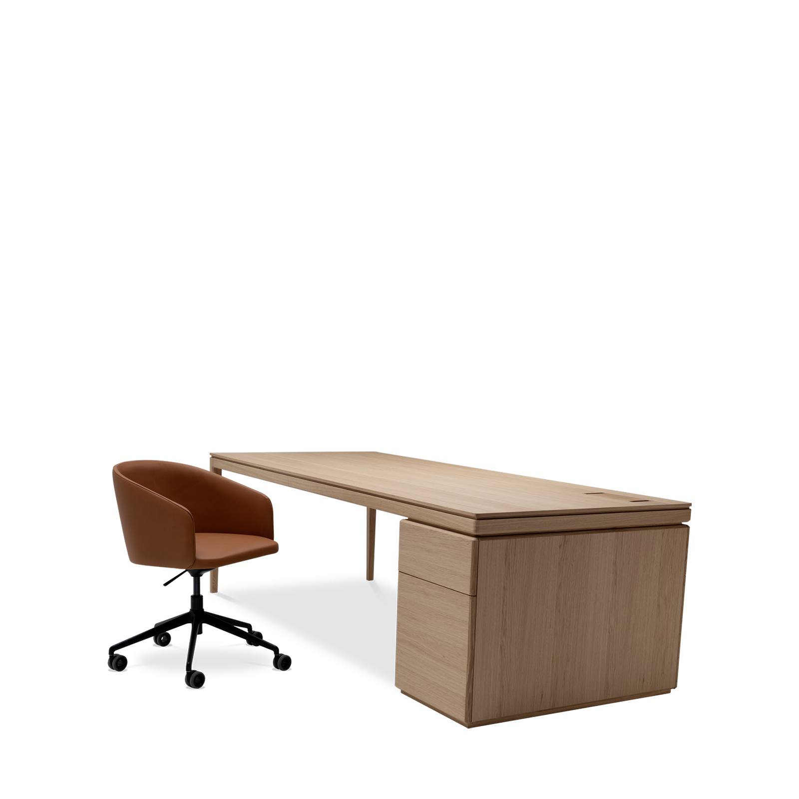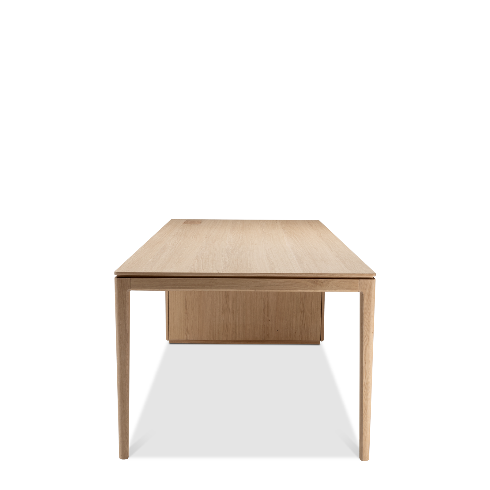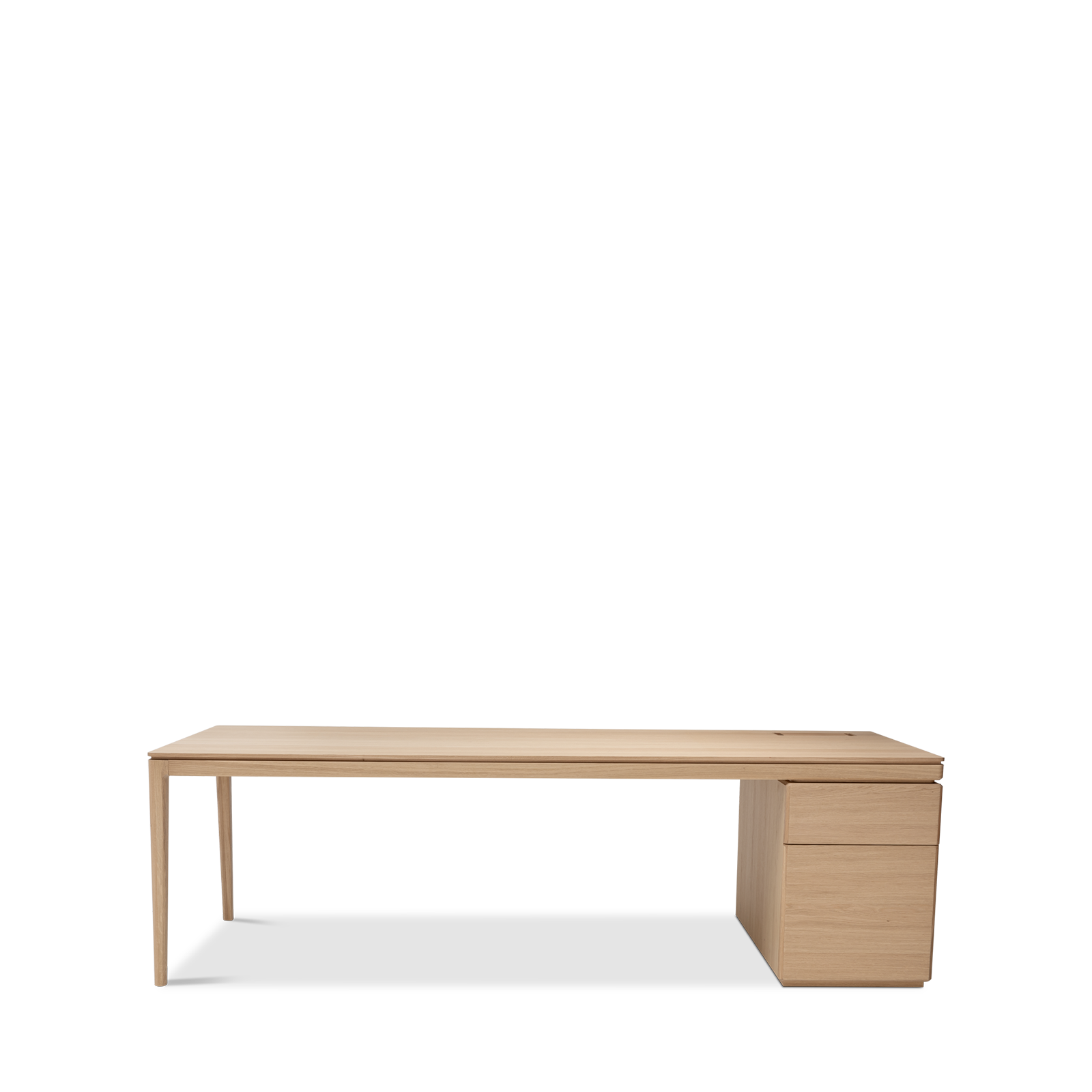 Available in oak and walnut us. Solid wood structure. Solid wood, laminate or Fenix tops Veneered pedestals and drawer fronts. Includes: 1 white lacquered metal trunking and 1 top access per station. Optionally available: additional LEGRAND top access and socket strips.