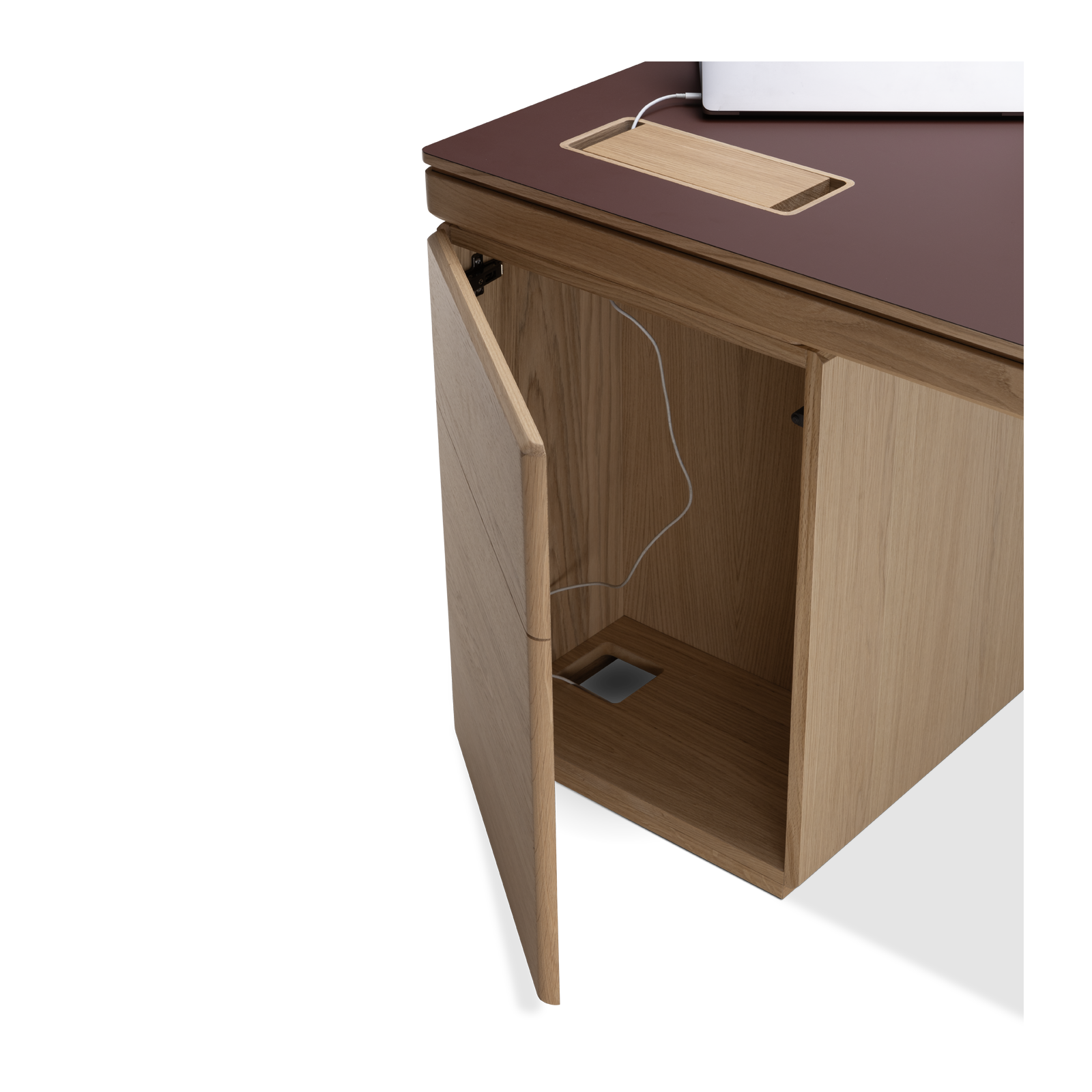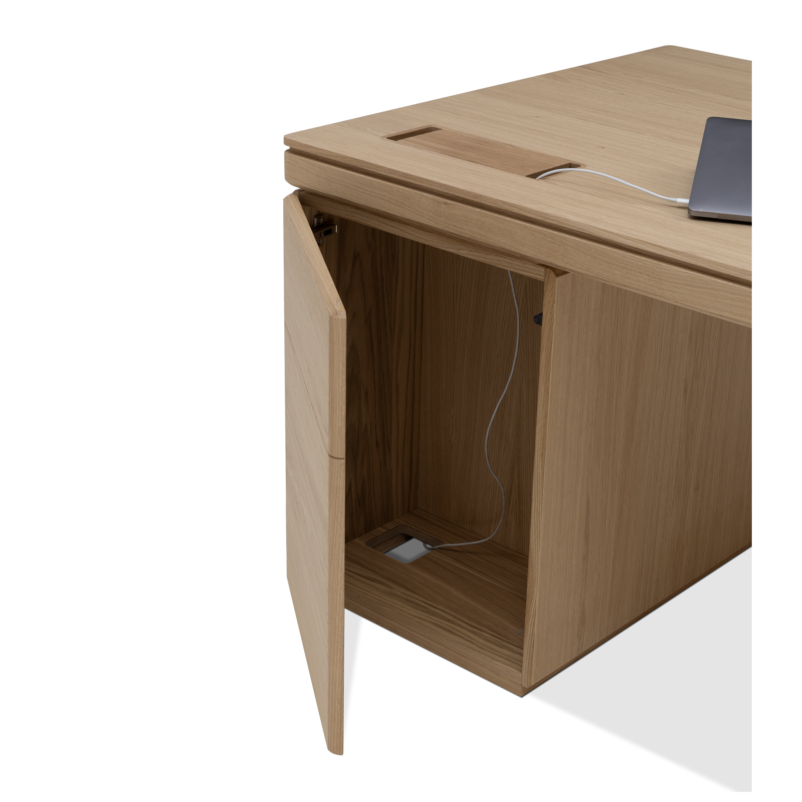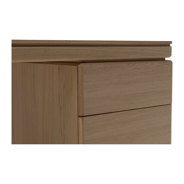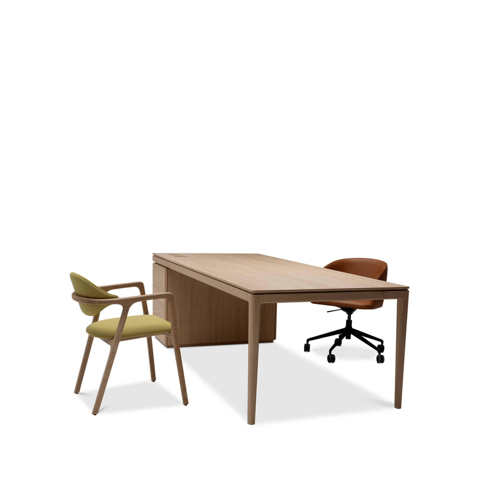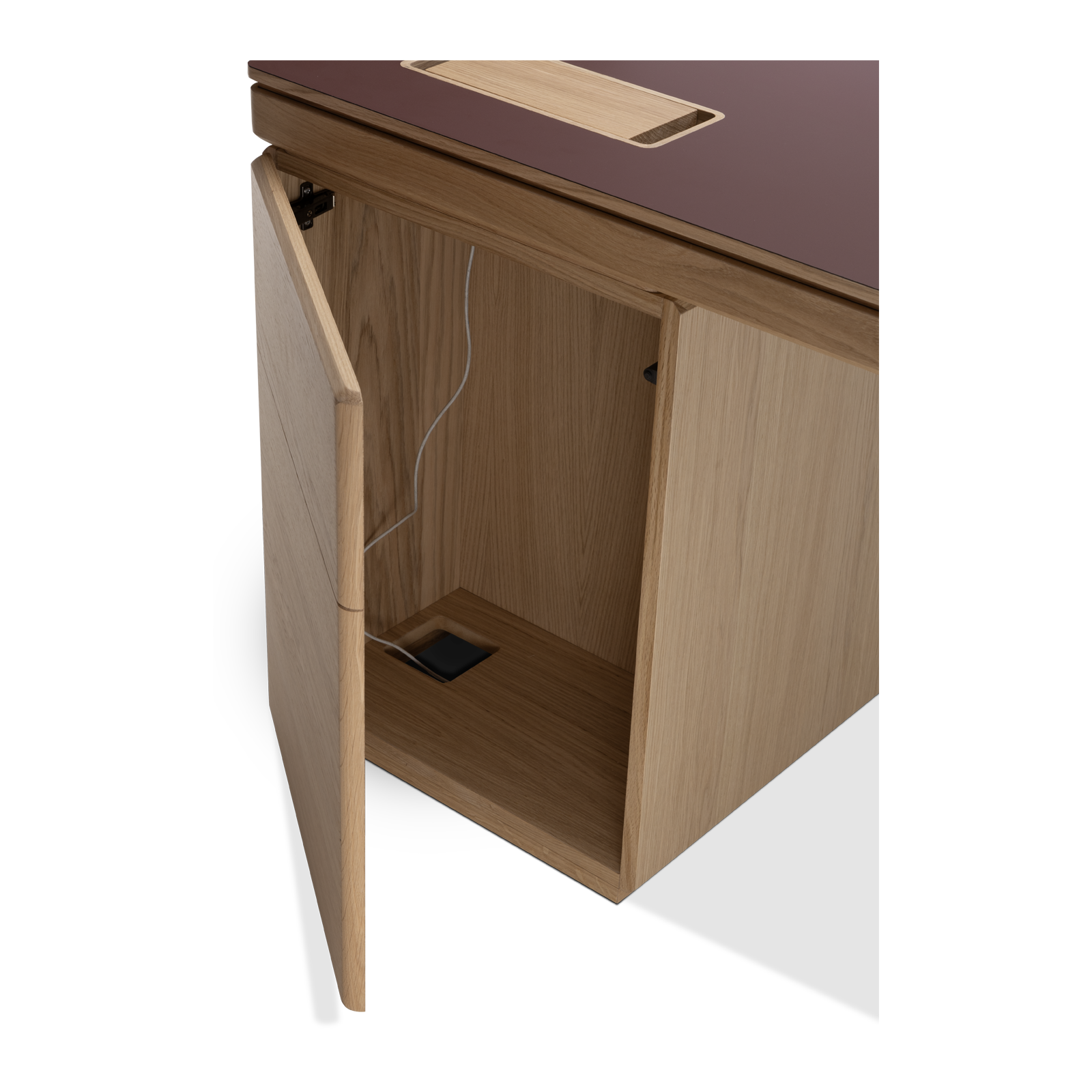 Available in oak and walnut us. Solid wood structure. Solid wood, laminate or Fenix tops Veneered pedestals and drawer fronts. Includes: 1 white lacquered metal trunking and 1 top access per station. Optionally available: additional LEGRAND top access and socket strips.