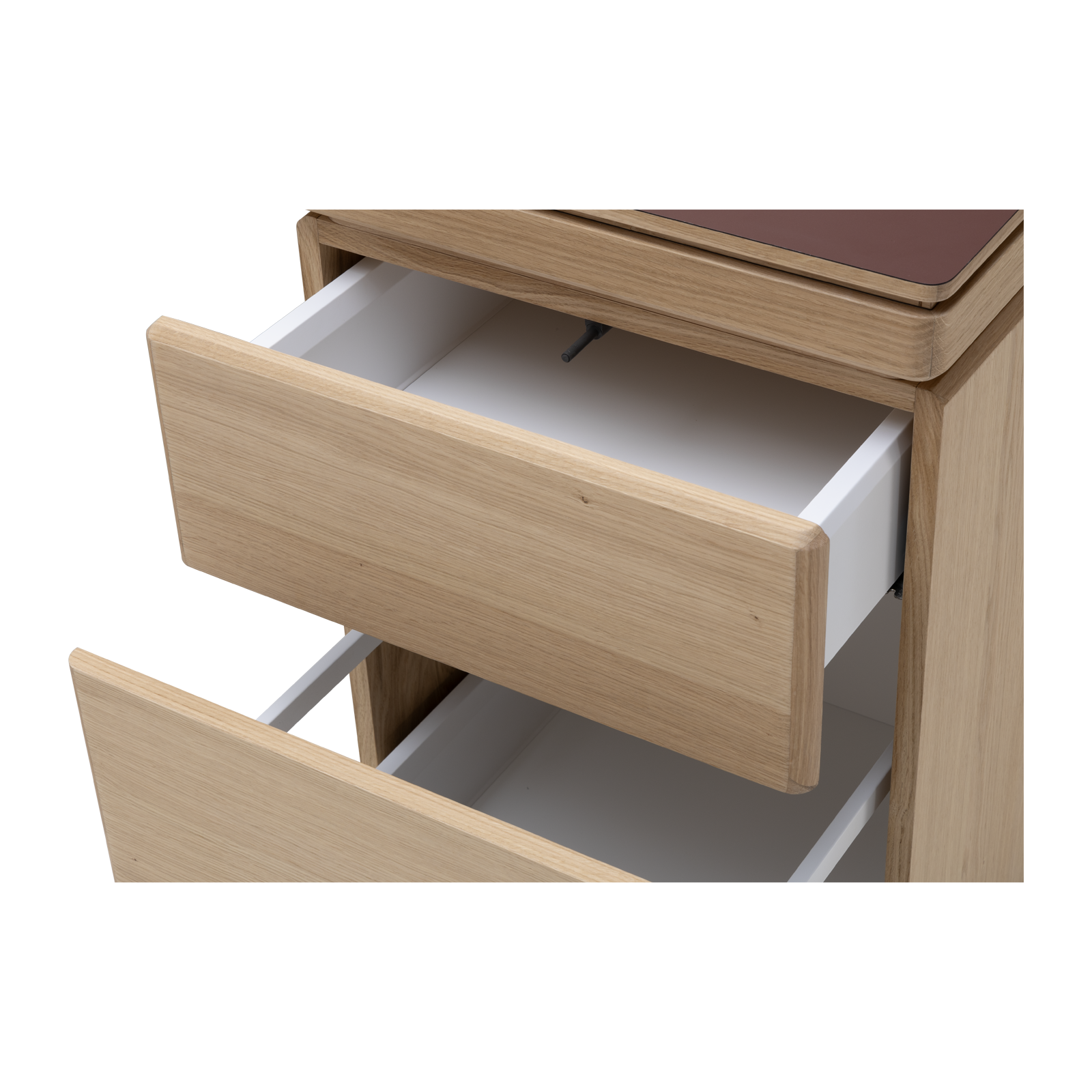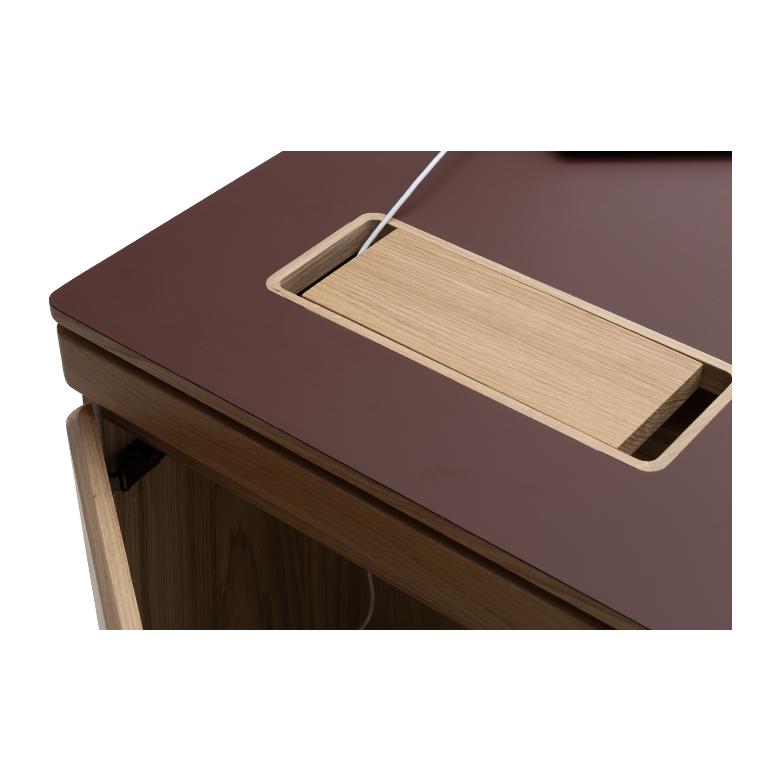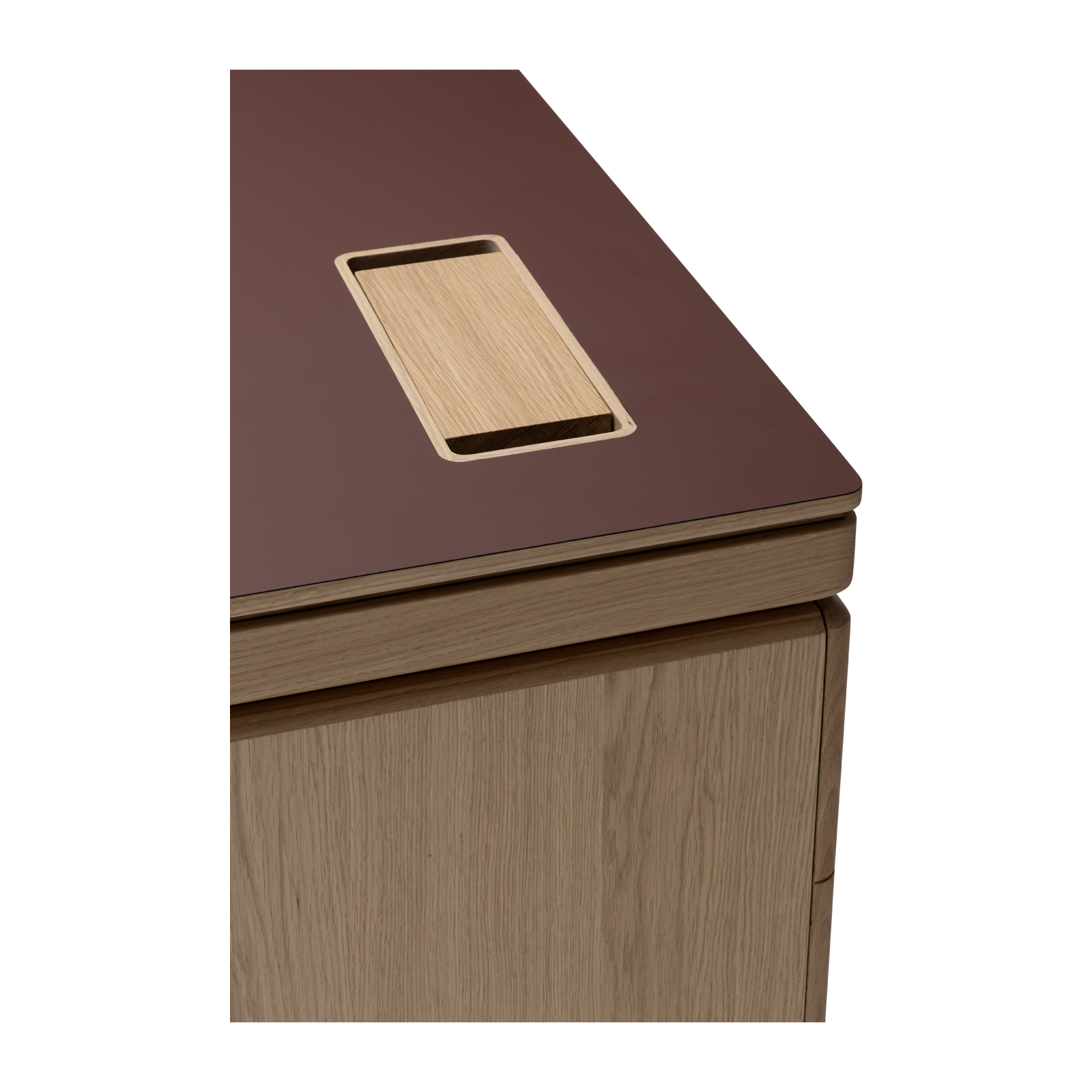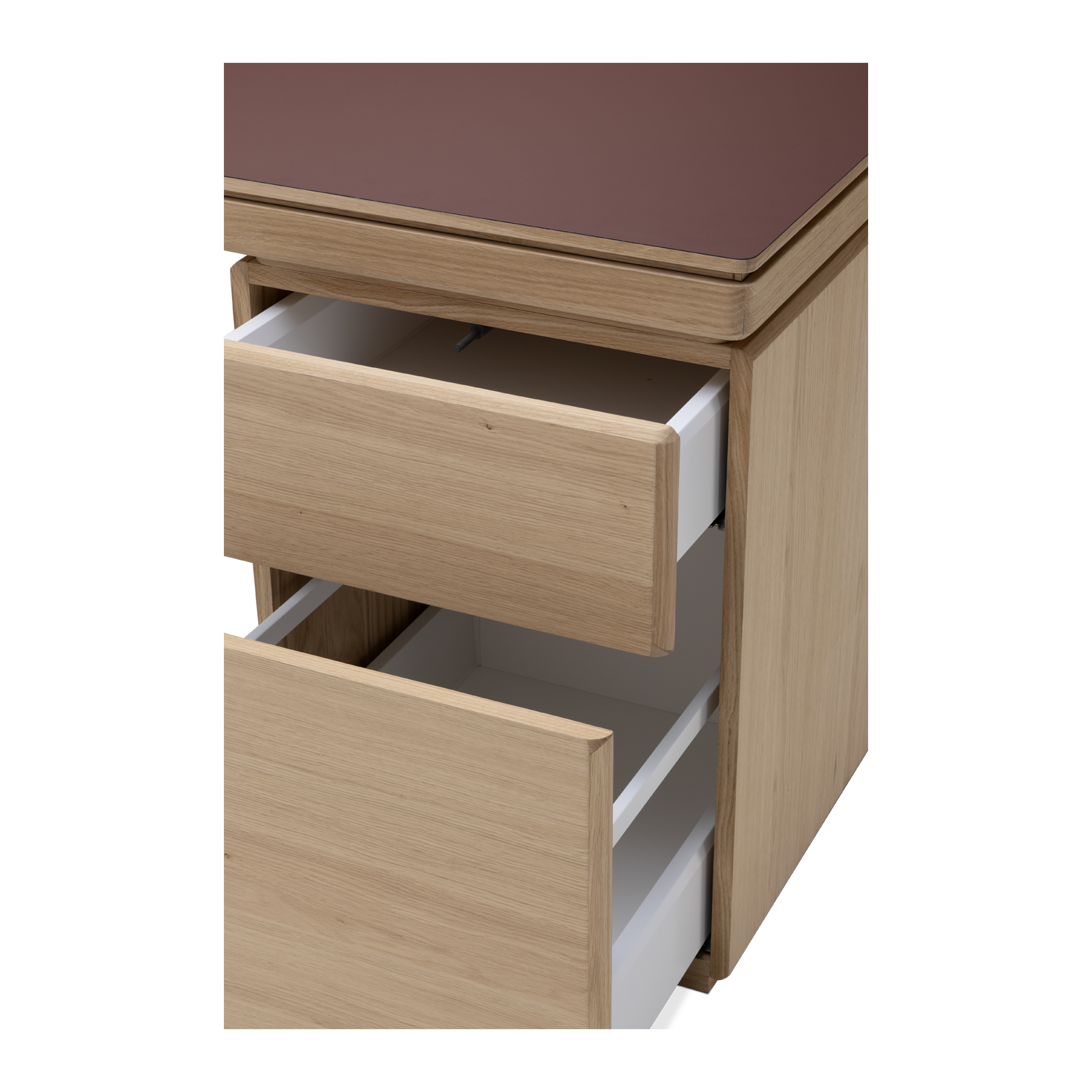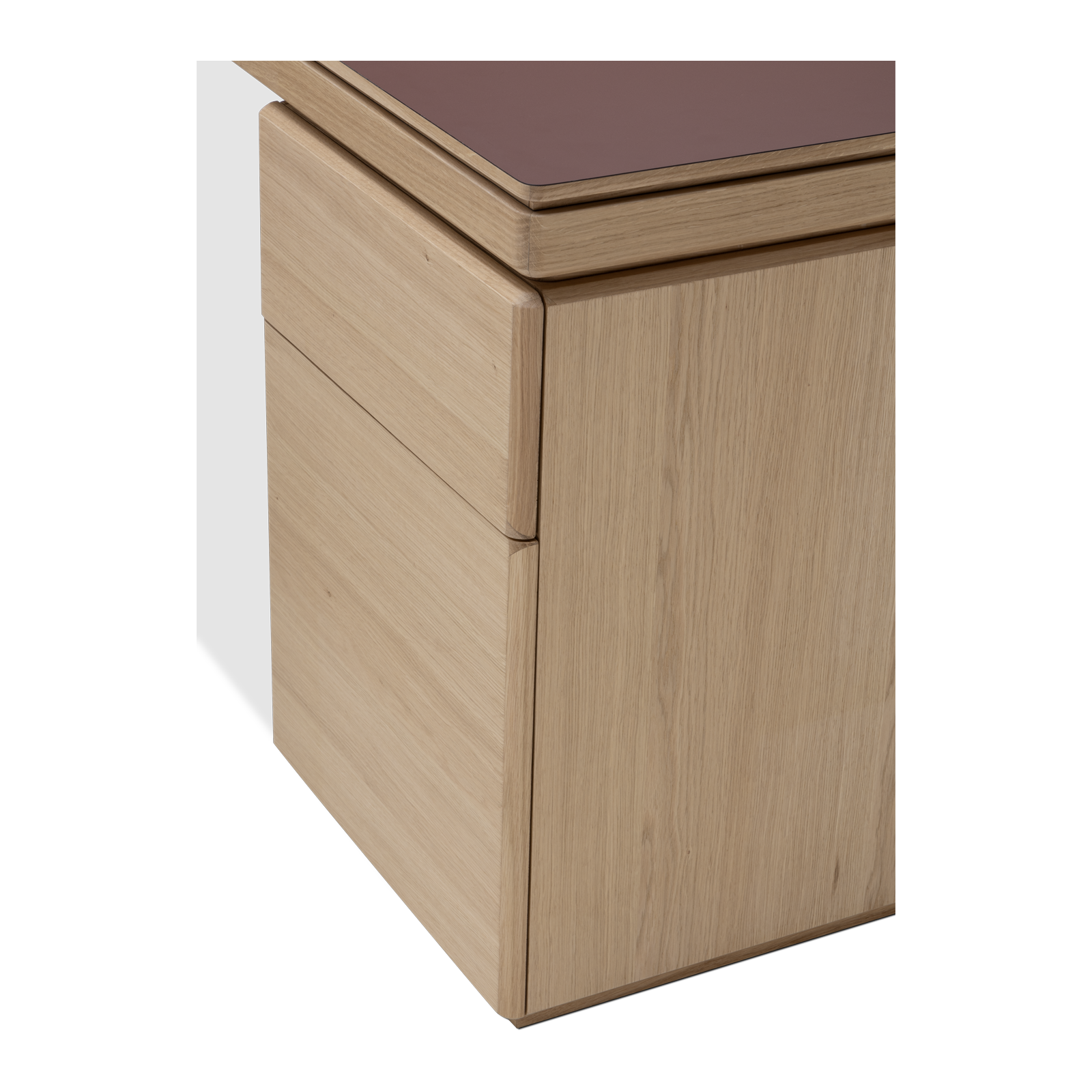 Available in oak and walnut us. Solid wood structure. Solid wood, laminate or Fenix tops Veneered pedestals and drawer fronts. Includes: 1 white lacquered metal trunking and 1 top access per station. Optionally available: additional LEGRAND top access and socket strips.