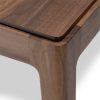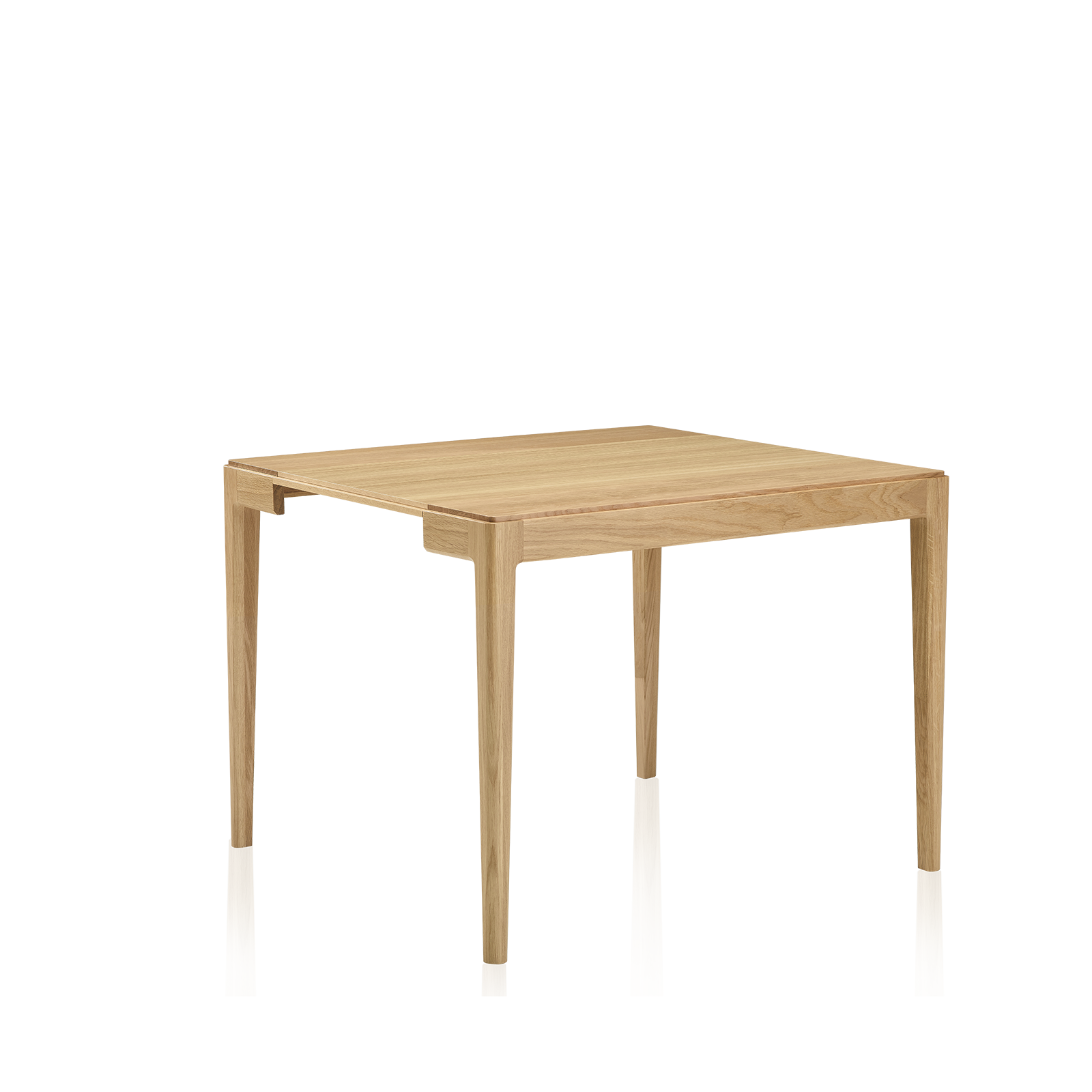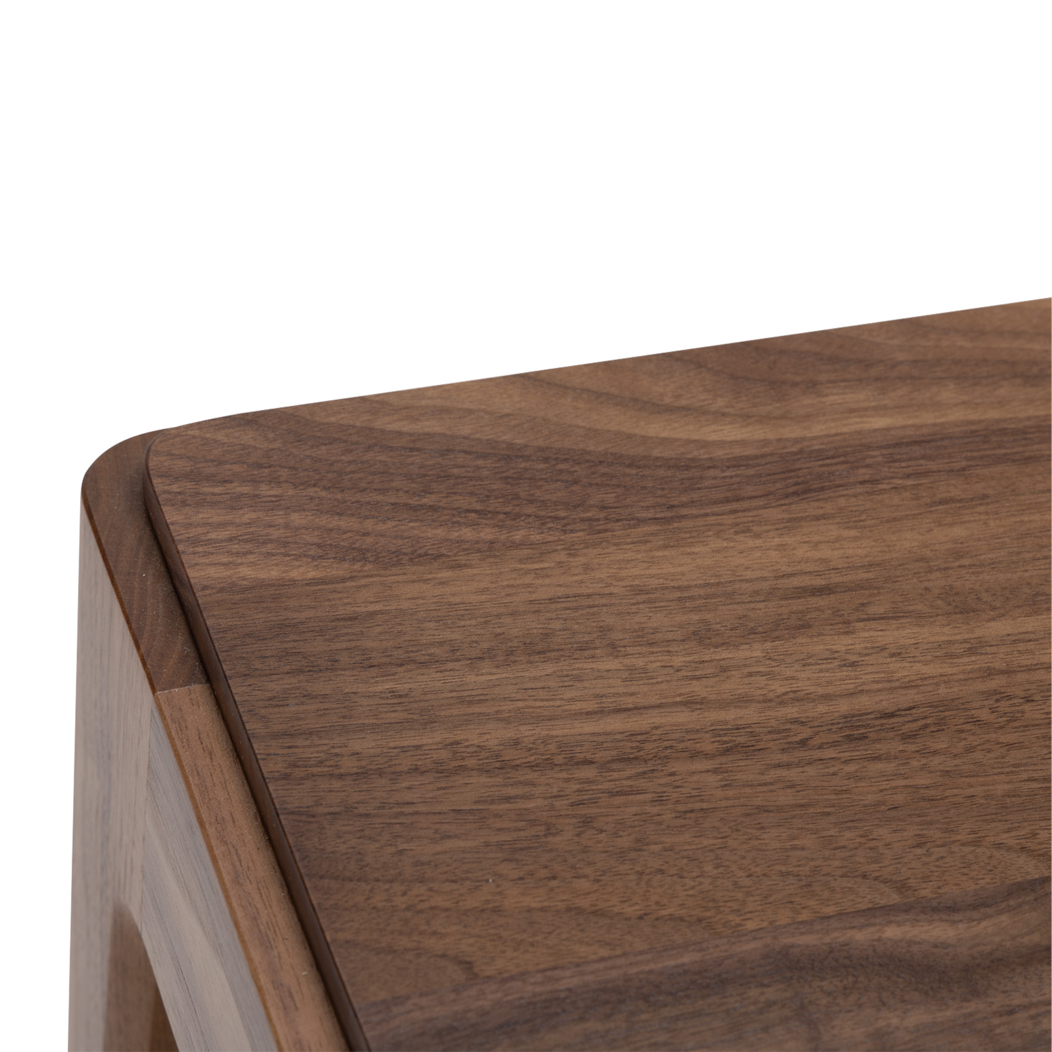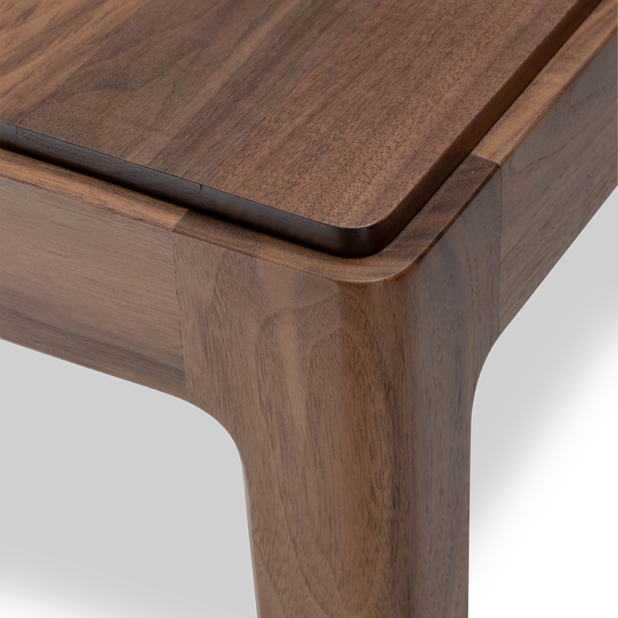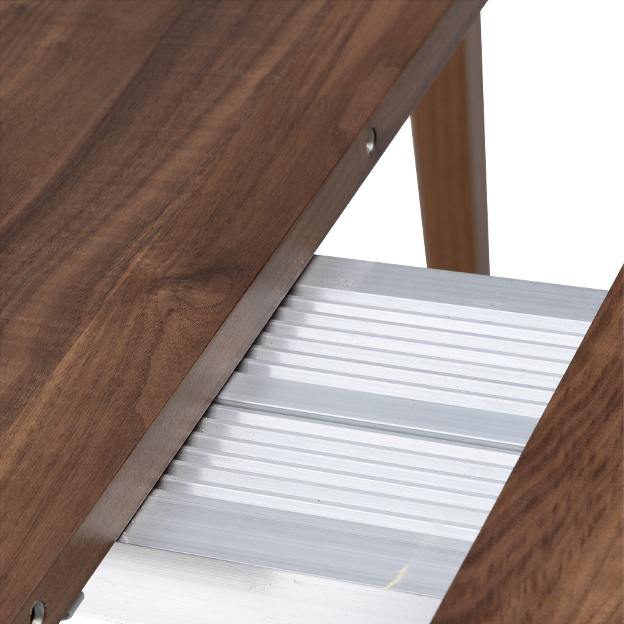 Top in 9/10ths veneer with solid underlays or top in 6 mm ceramic glued to 19 mm MDF with solid underlays. Aluminum runners. Solid wood lever handle.