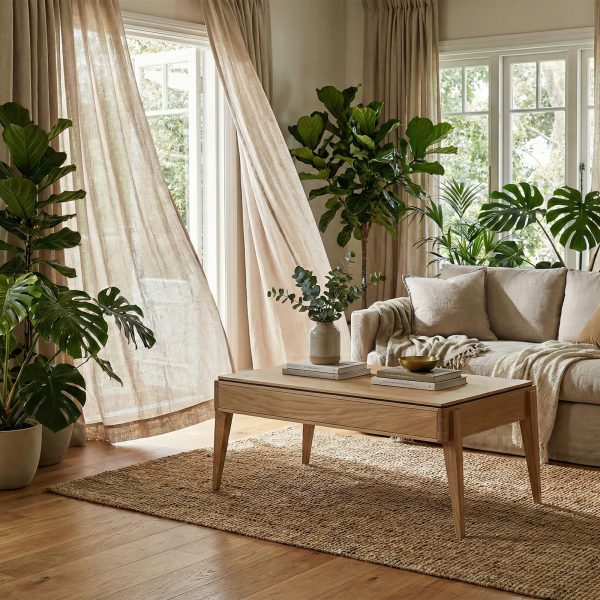 The Liseré coffee table is a creation by Julie Gaillard. This coffee table is available in two wood species and two distinct dimensions to suit any space. Four outwardly sloping legs give it an elegant, stable look. A fine decorative line under the tabletop adds a subtle touch of originality.
