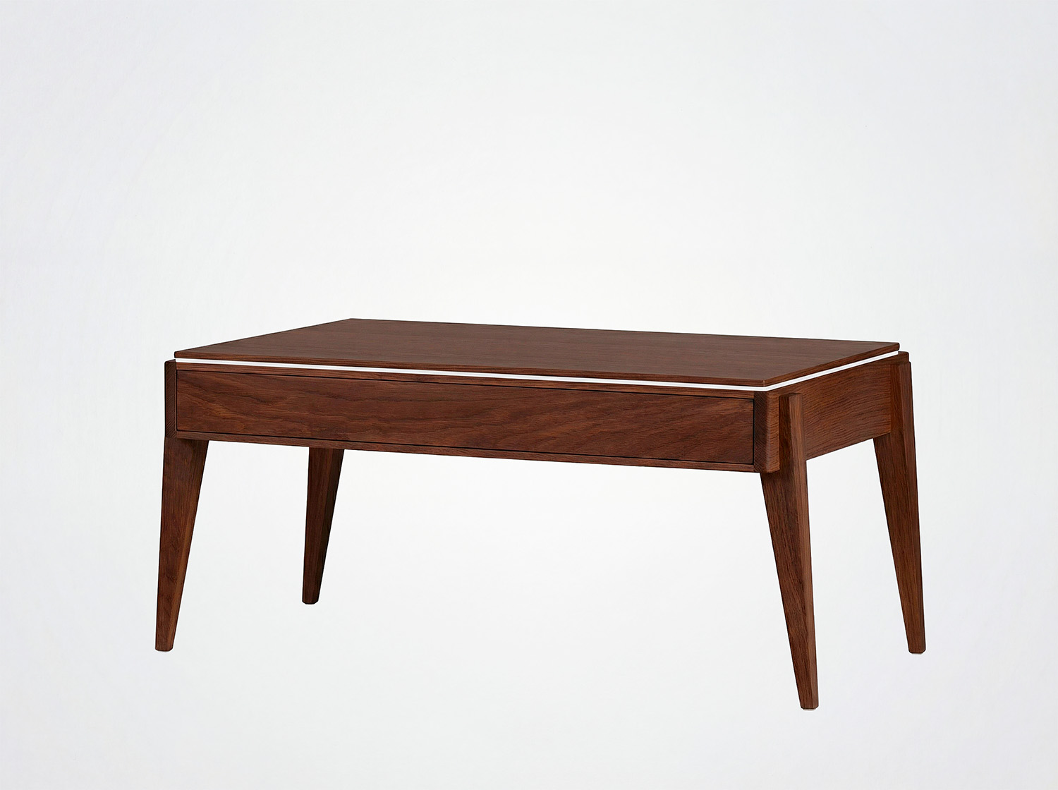 The Liseré coffee table is a creation by Julie Gaillard. This coffee table is available in two wood species and two distinct dimensions to suit any space. Four outwardly sloping legs give it an elegant, stable look. A fine decorative line under the tabletop adds a subtle touch of originality.
