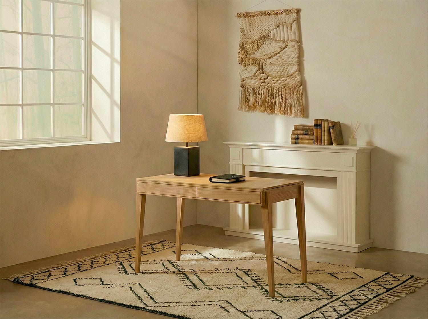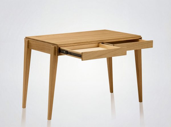 The Liseré desk is a creation by Julie Gaillard. Available in oak and walnut, in several sizes, this elegant and functional desk inspired by Scandinavian design is equipped with one or two drawers, depending on its length.