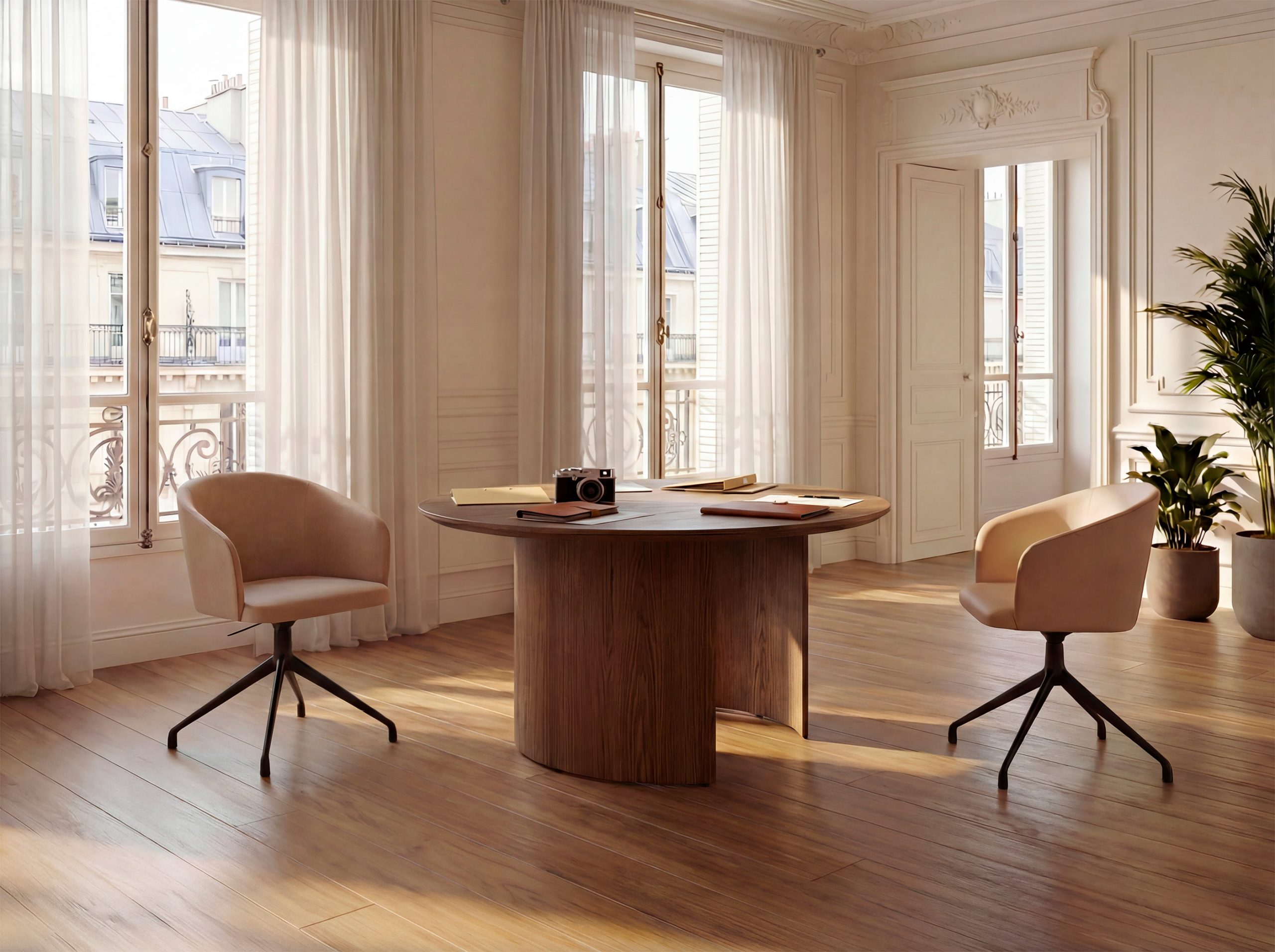 The combination of design style and vintage influence for the Oscar office chair. The wrap-around back and soft, clean lines of the Eora chair, available as an office chair with or without castors.