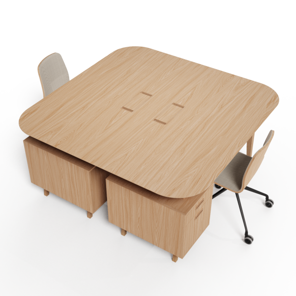 Wooden top (20 mm 3-ply solid wood), laminate (0.8 mm) or Fenix (1.2 mm): Leaf glued to