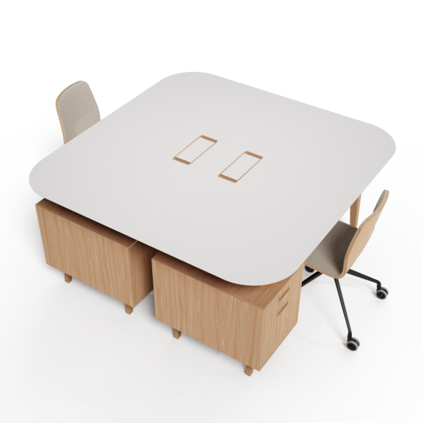 Includes: 1 white lacquered metal trunking and 1 access top per station.