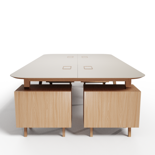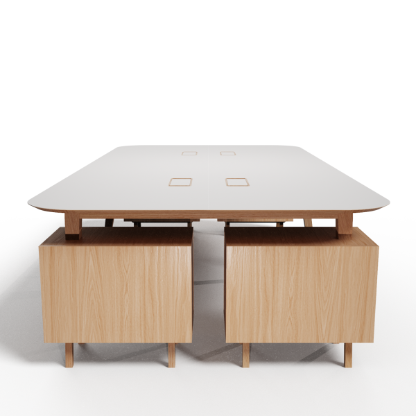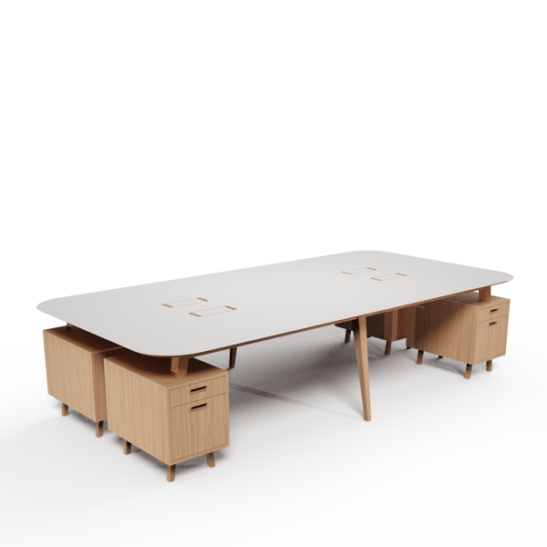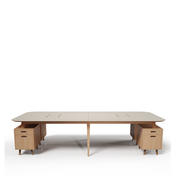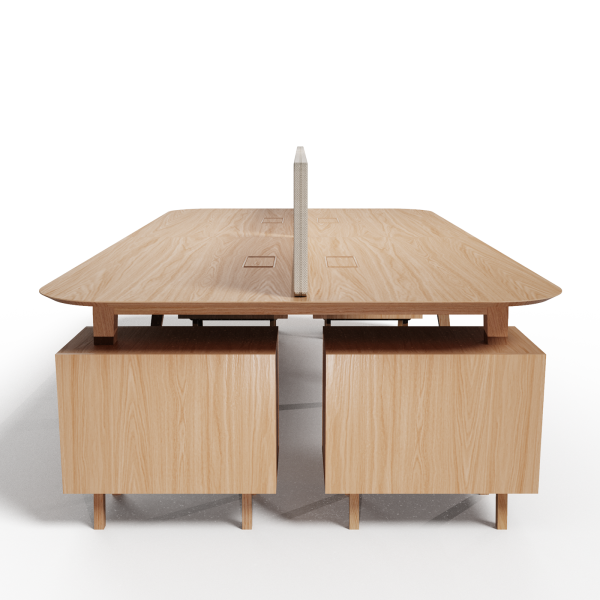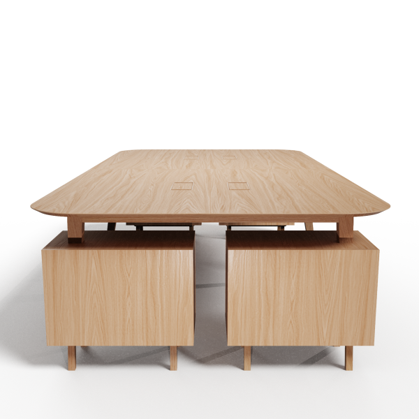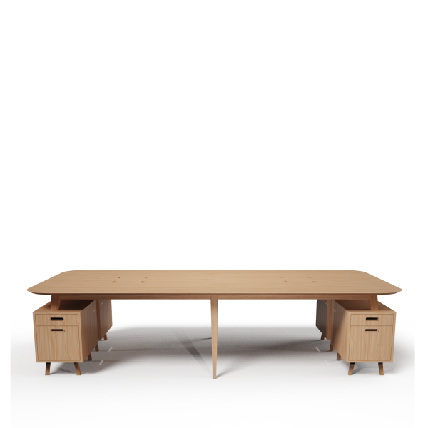The Prosper bench is a creation by Julie Gaillard. Available in oak and walnut in several sizes, this elegant and functional bench is inspired by Scandinavian design and features four pedestals with two drawers.