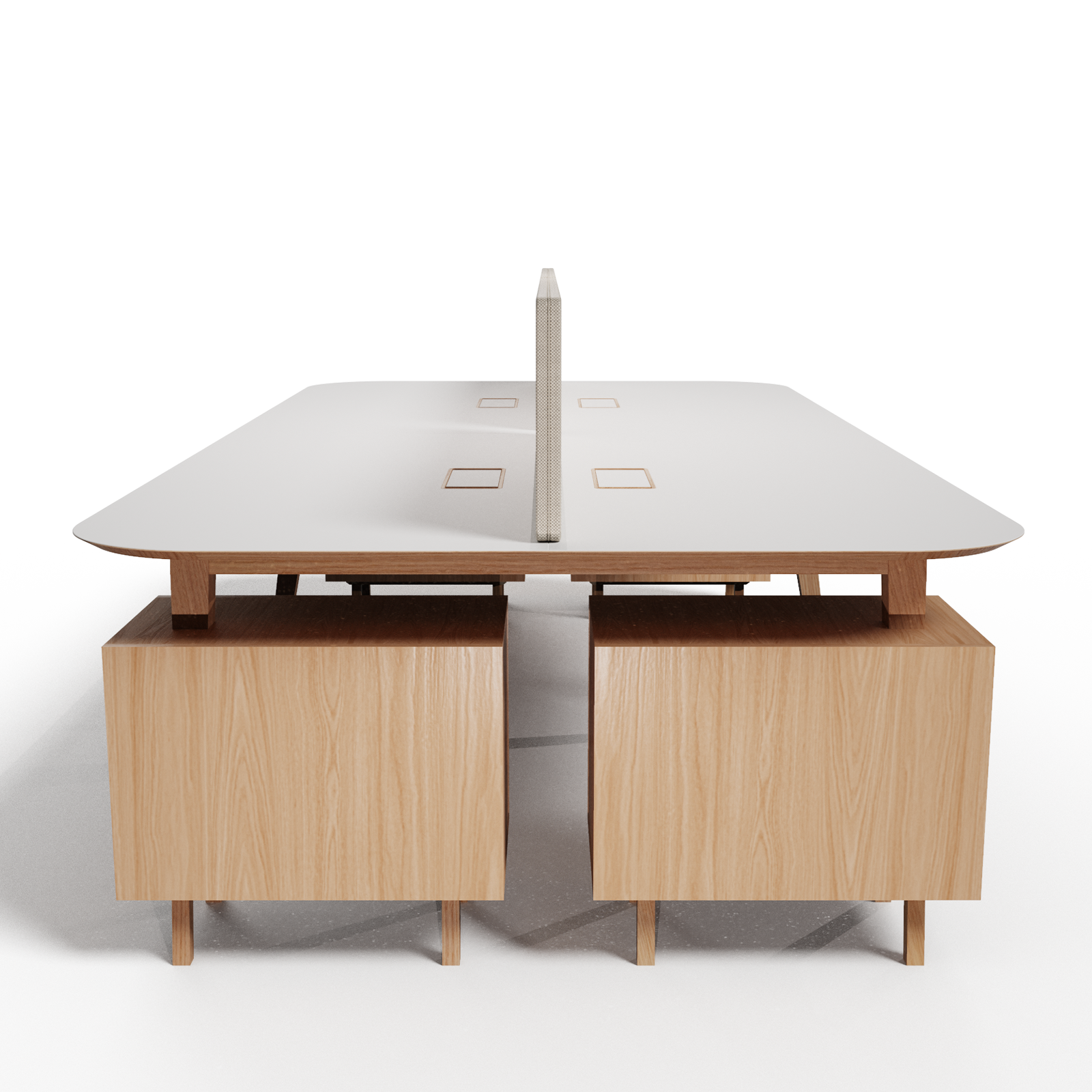 Includes: 1 white lacquered metal trunking and 1 access top per station.