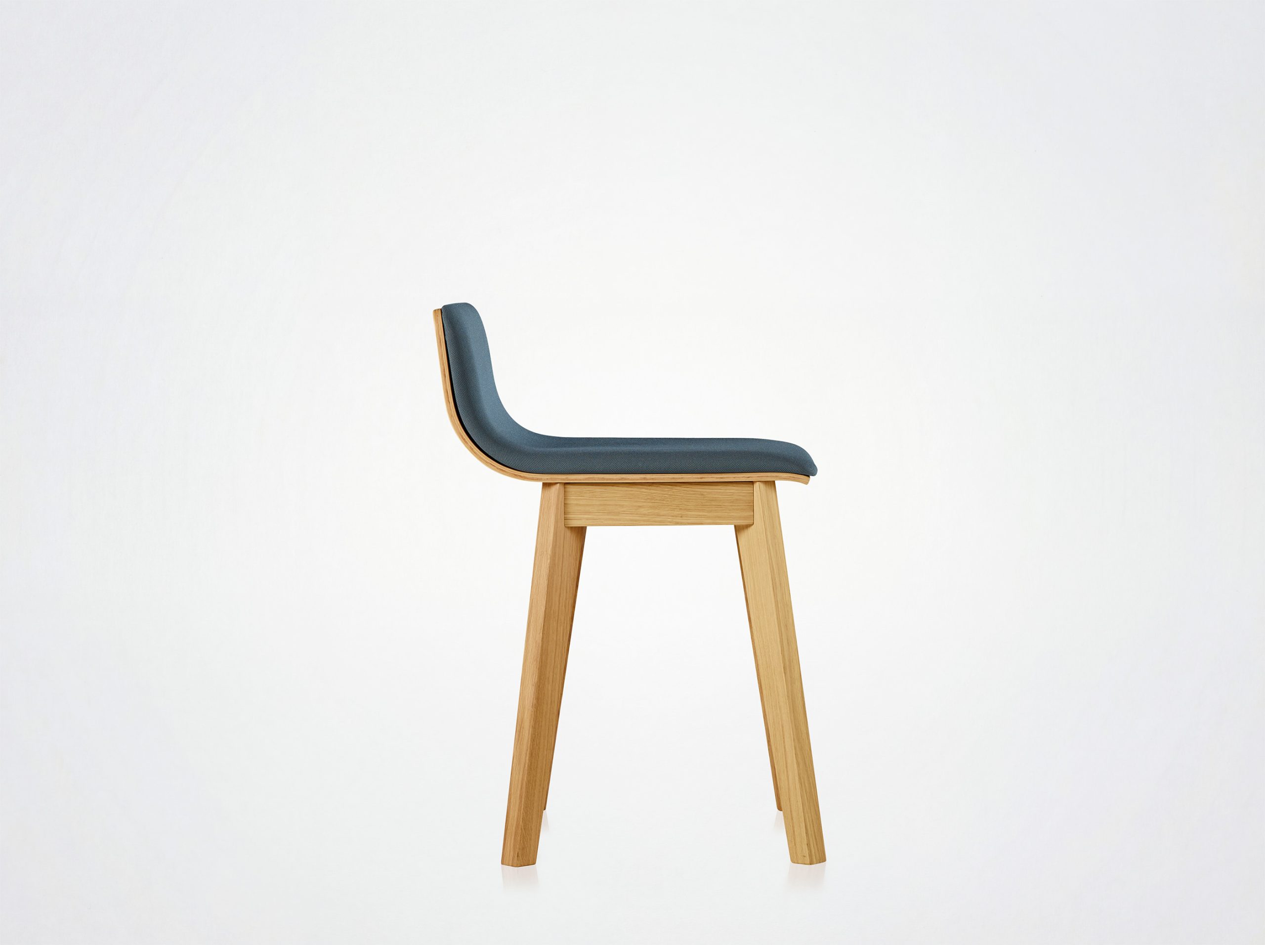 Fabric version: molded plywood shell with oak veneer on the back. Placet in 3 mm plywood covered with 20 mm MH40 foam upholstered with your choice of covering.