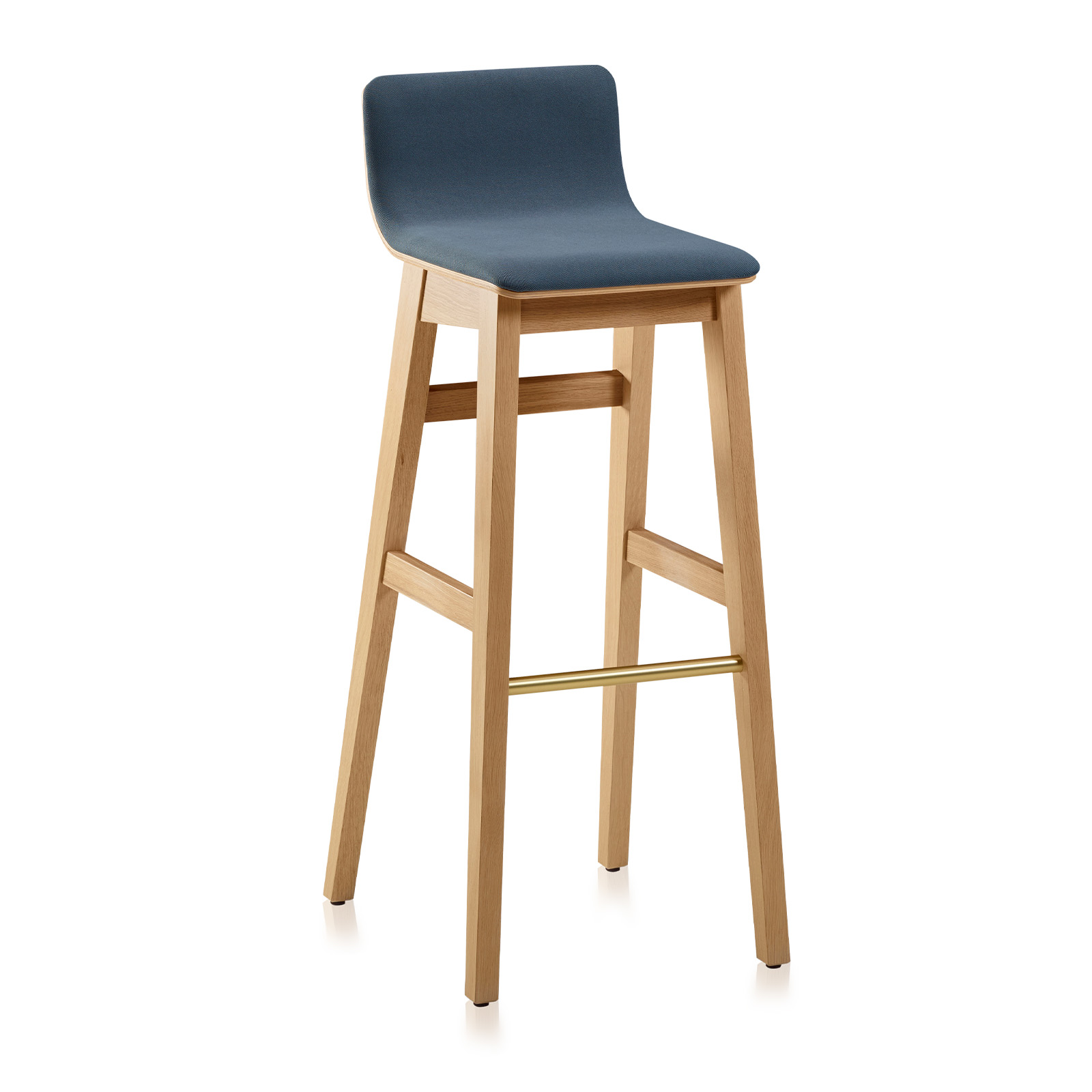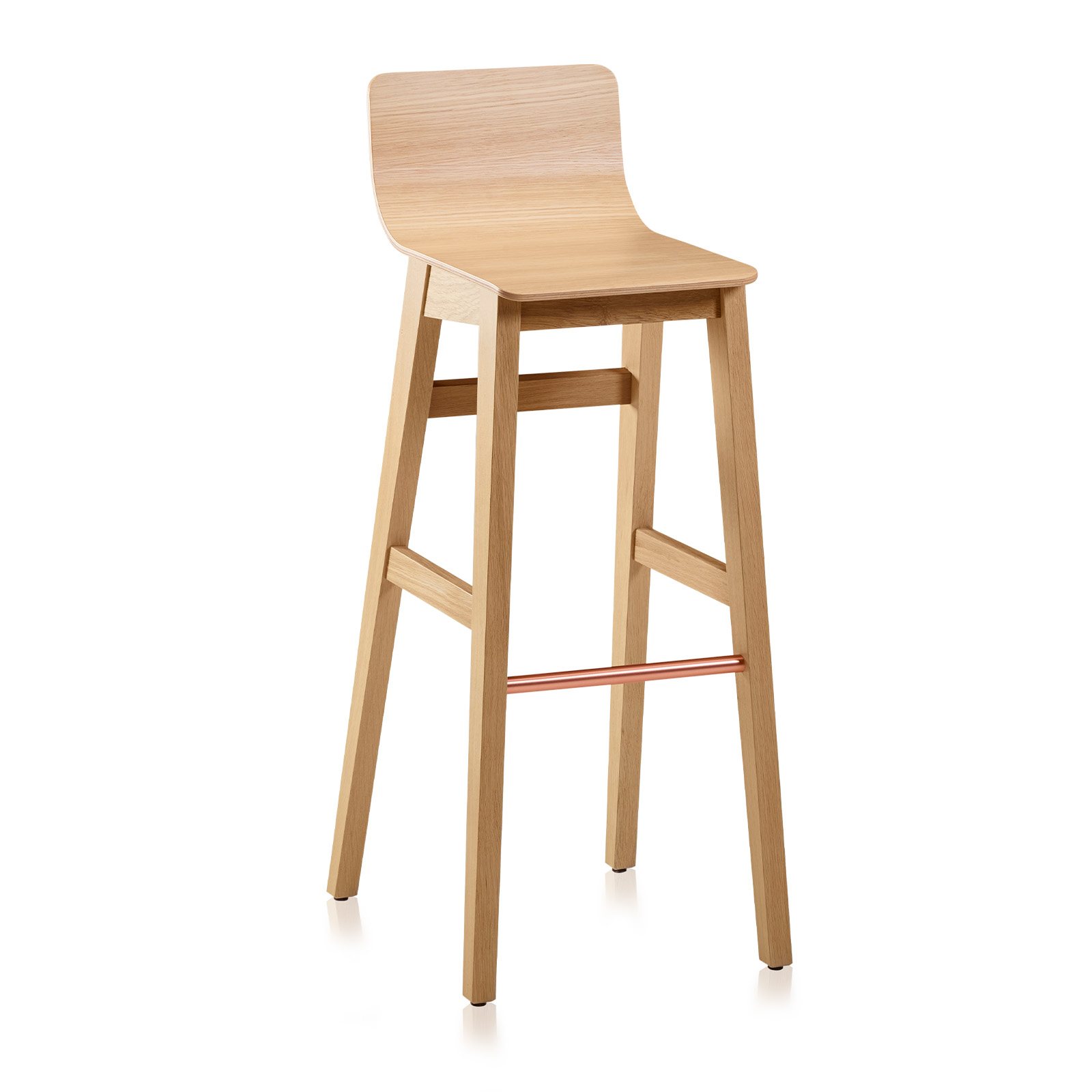 The Snack stool H80 cm features a light backrest and footrest, offering extra support without sacrificing freedom of movement. Perfect for kitchen counters, bars or catering areas.