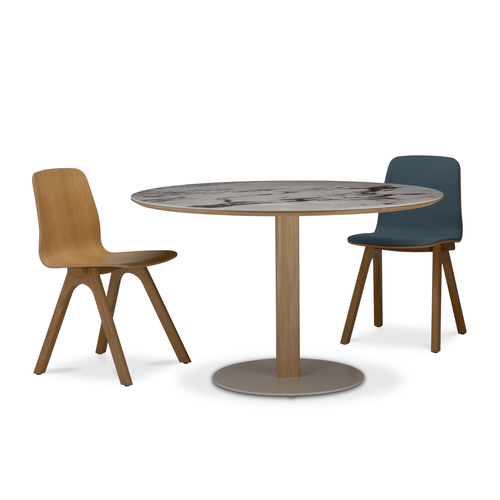 The Toupie table features a design inspired by bistro tables. Its simple design and square base make it a perfect example of the harmony between traditional craftsmanship and modern design. Toupie offers the possibility of personalizing its top by choosing from a variety of shapes, materials, moldings and shades to meet different needs and fit perfectly into its future space.
