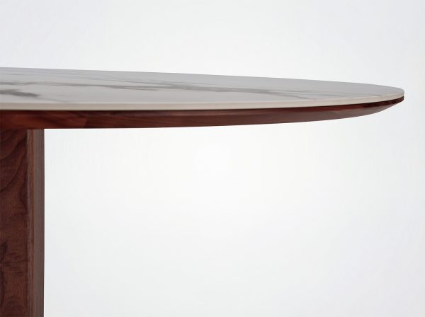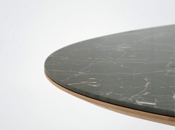 Ceramic top: 6 mm ceramic slab glued to 19 mm mdf with solid wood underlays.