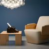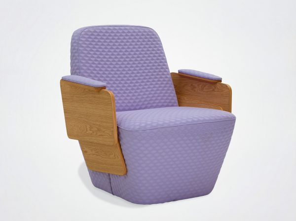 The constructive and graphic system of the Volute collection has been adapted for tables, coffee tables and an armchair oriented towards the Contract universe. The Volute armchair combines the elegance of wood with the comfort of a fabric seat. It features two wooden slats integrated into the armrests, offering a warm, modern aesthetic. Perfect for welcoming visitors in waiting, reception or relaxation areas, this armchair lets you create a welcoming and elegant space.