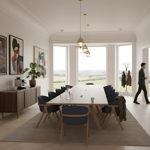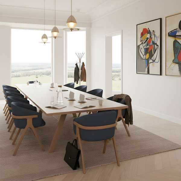 The Chevron table is a remarkable creation by designer Guillaume Delvigne, inspired by the elements of carpentry. Available in several sizes and finishes, this table embodies aesthetics and functionality, whether as a dining room table, kitchen table or meeting/work table.